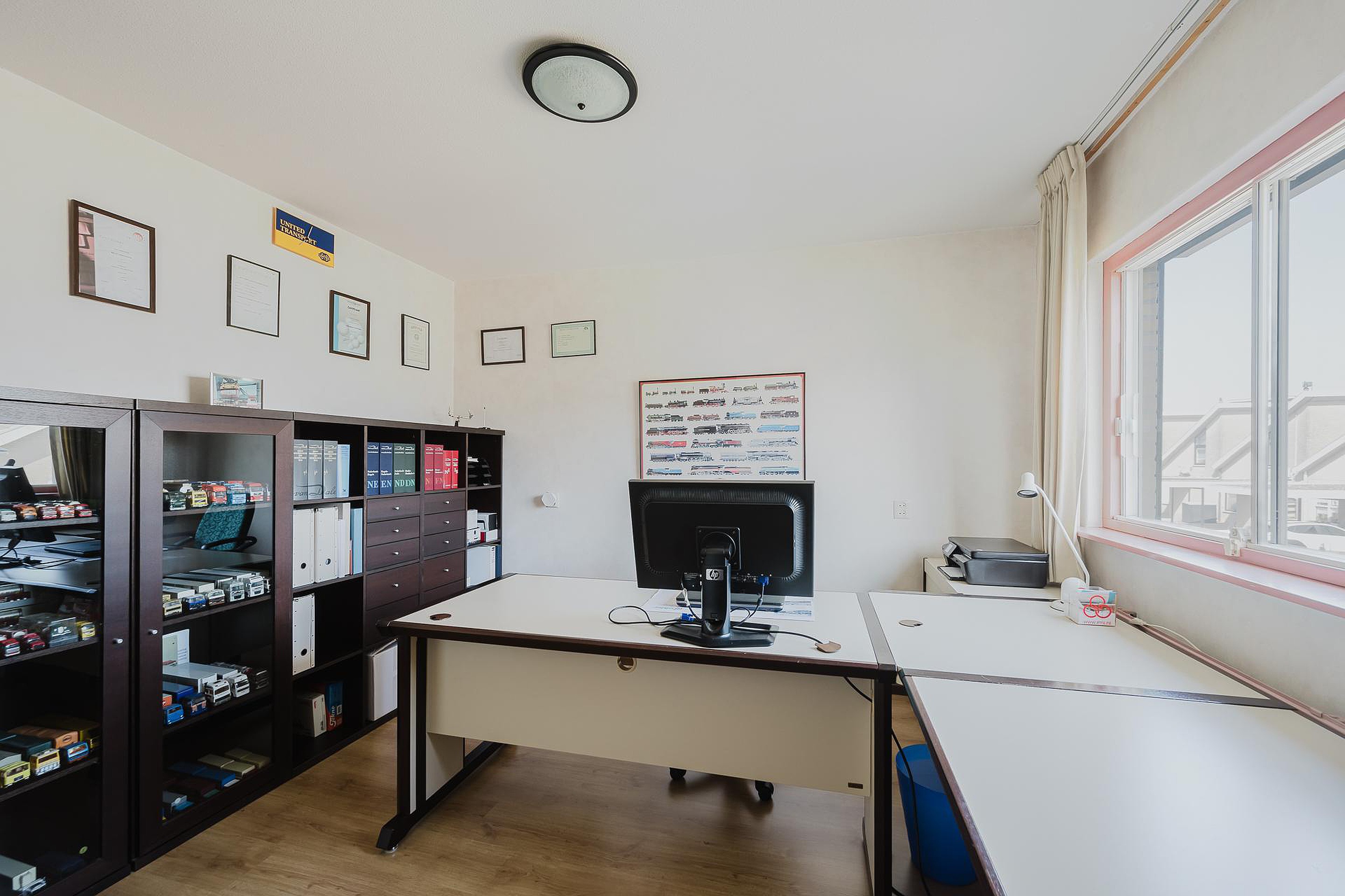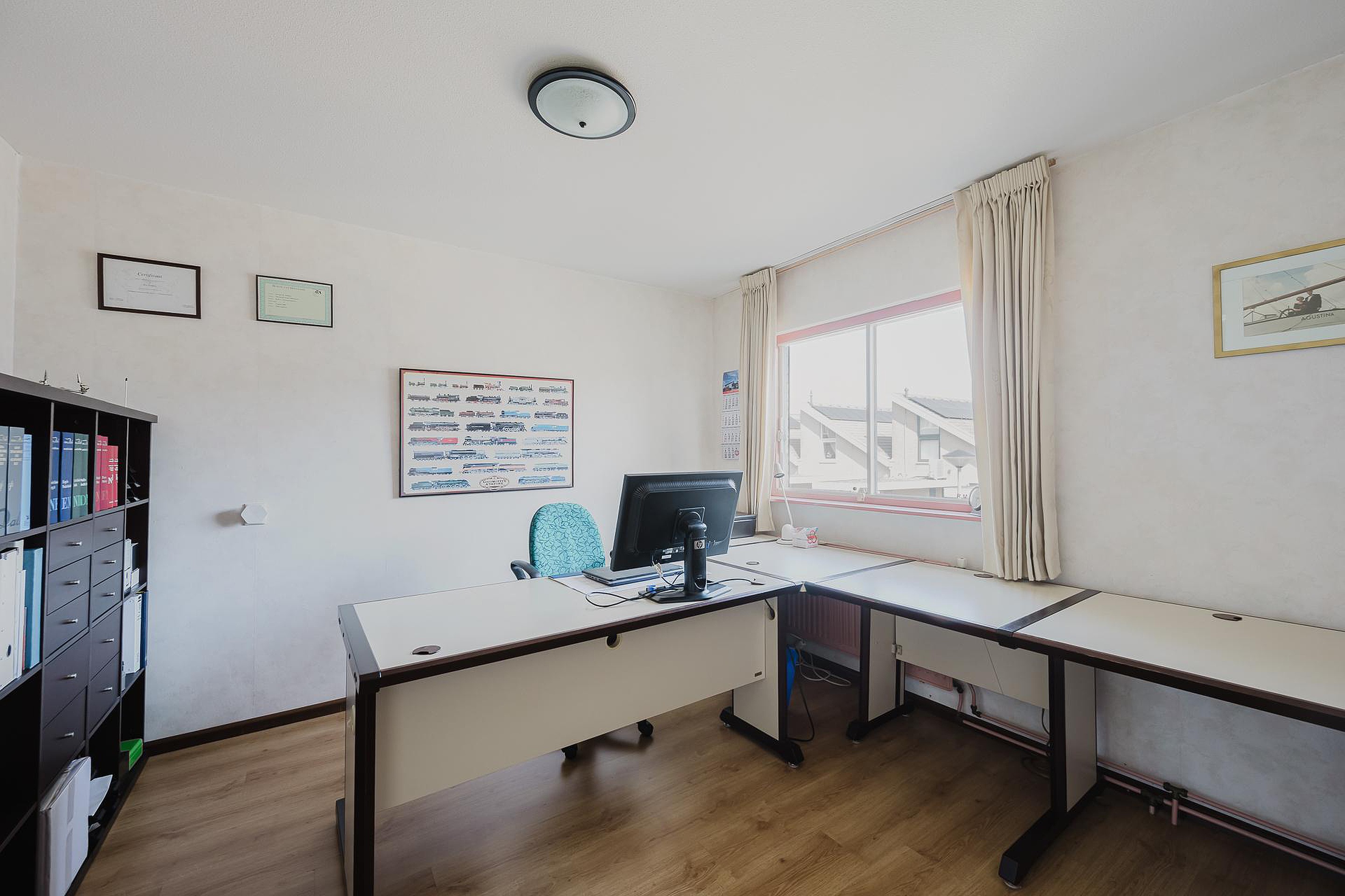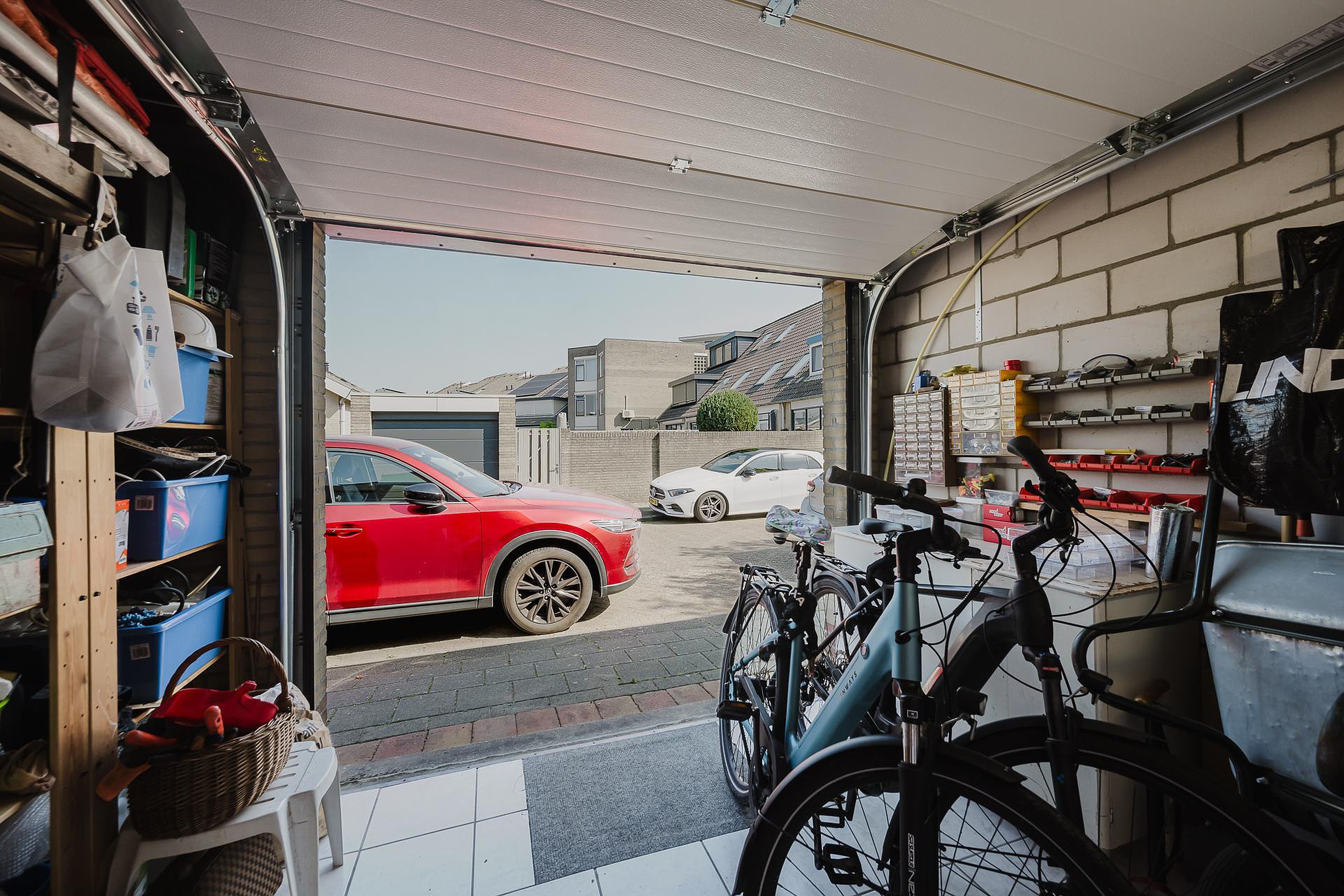 Vanuit de hal heb je toegang tot de bijkeuken. De bijkeuken geeft toegang tot de berging met elektrische roldeur.