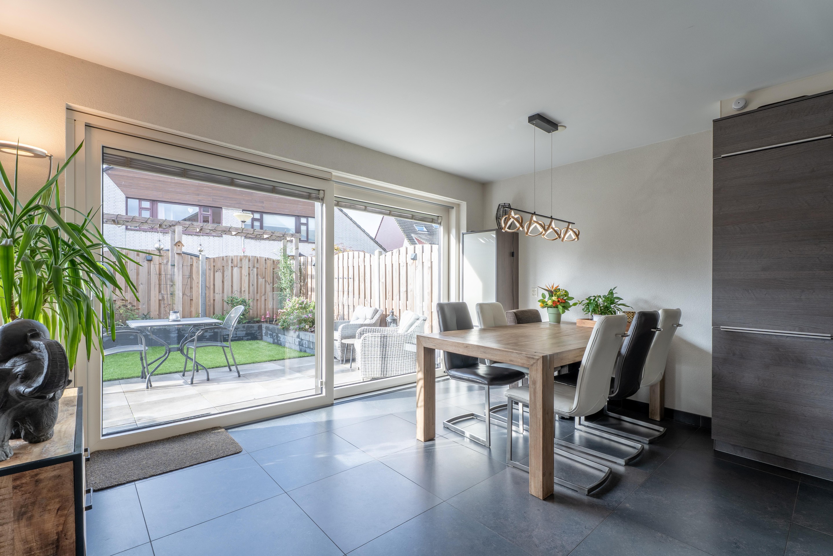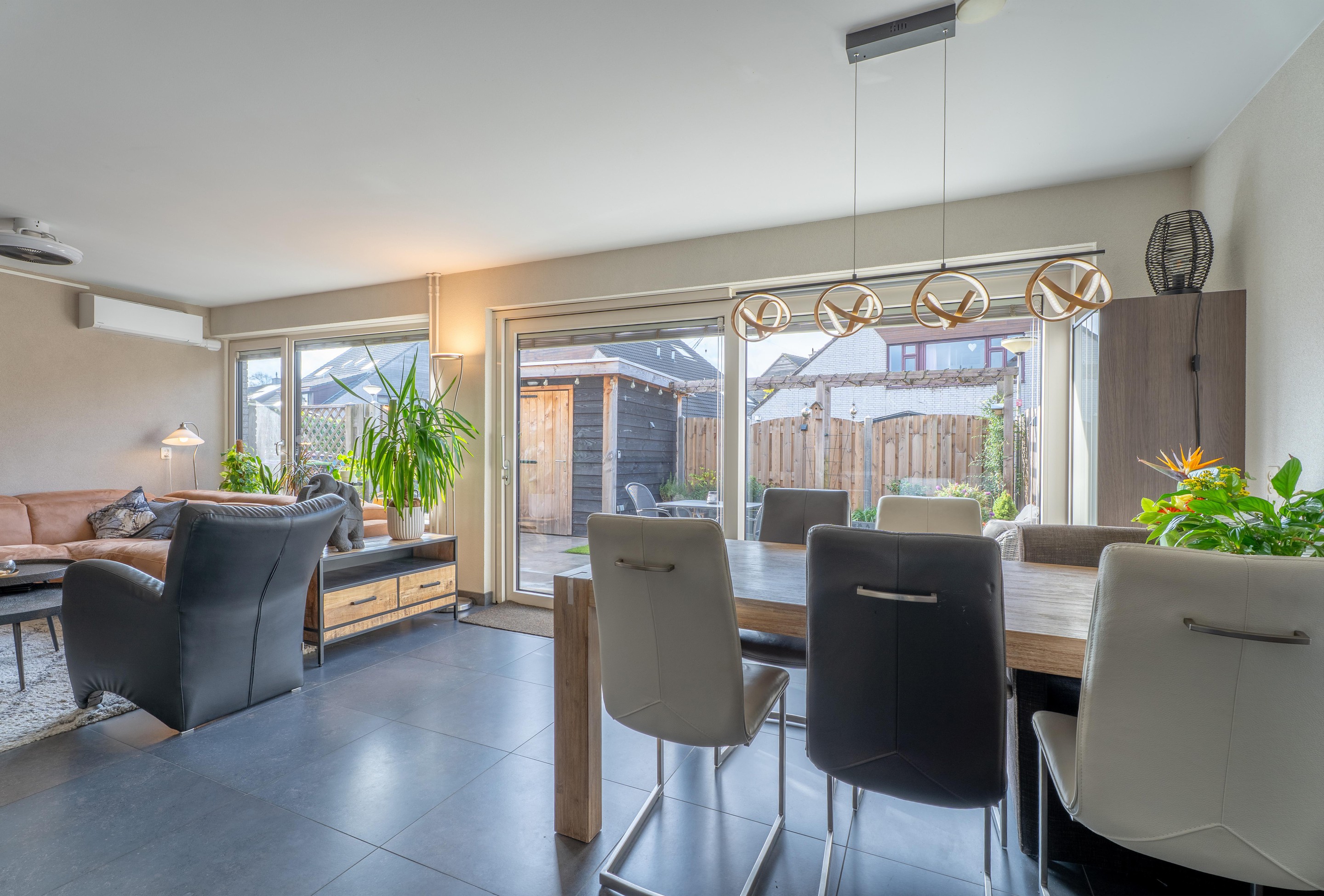 De lichte woonkamer is voorzien van vloerverwarming, airco (2024, verwarmt én koelt), een gashaard en een nette afwerking. De open keuken bevindt is uitgerust met een vaatwasser (2024), koel-vriescombinatie (2022), kookplaat en voldoende kastruimte. Via de schuifpui stap je de heerlijke achtertuin in.