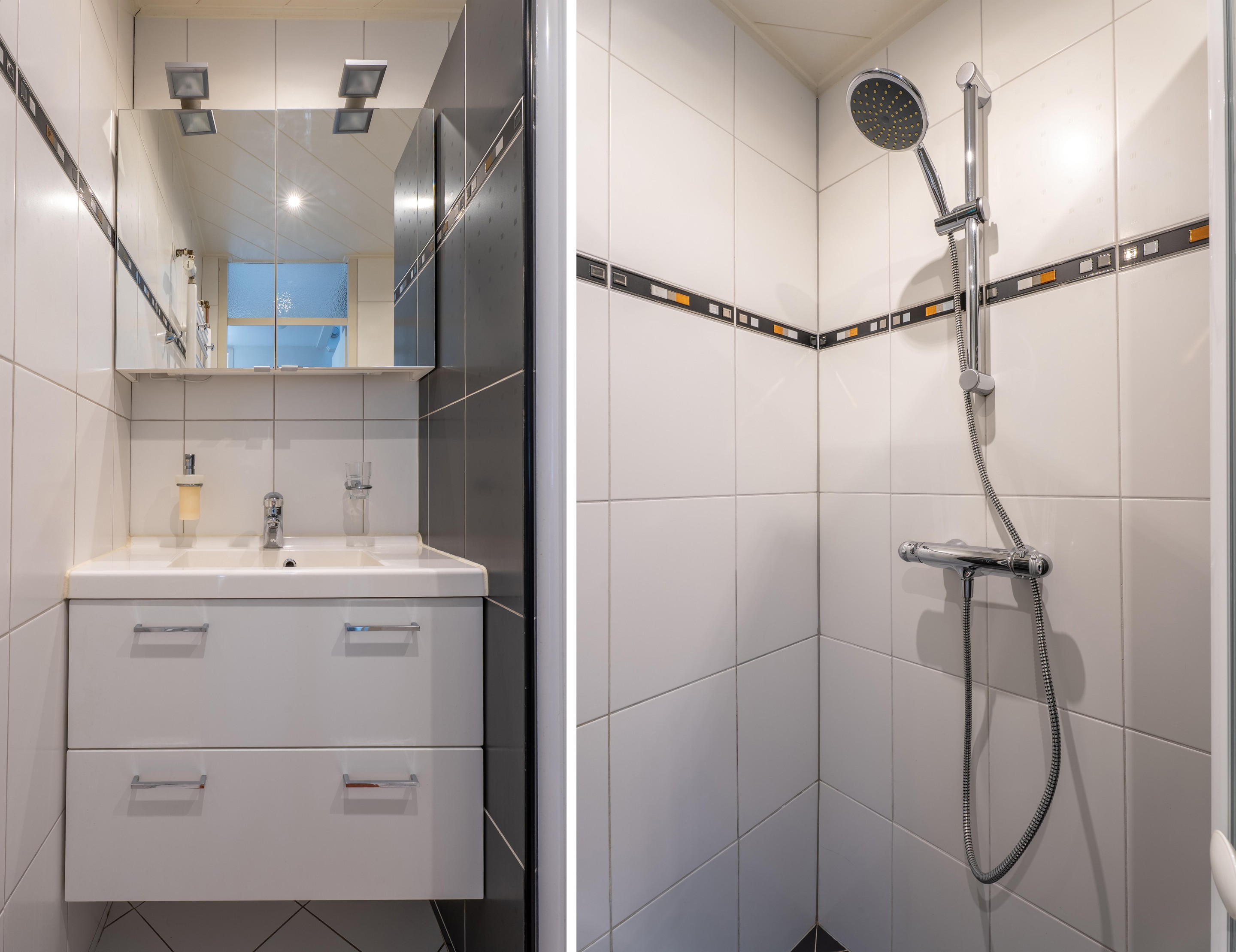 Via de trapopgang in de woonkamer bereik je de overloop. Hier bevinden zich drie slaapkamers, waarvan twee met dakraam. Alle ramen zijn voorzien van horren of screens. De badkamer is uitgerust met douche, wastafelmeubel en toilet.