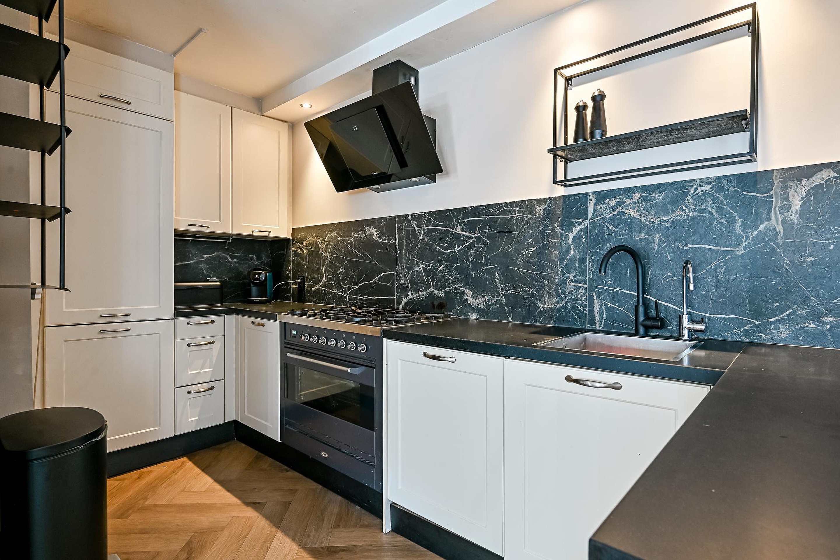 Aan de achterzijde van de woning bevindt zich de open keuken. Deze is uitgerust met diverse inbouwapparatuur, een Boretti oven, gasfornuis en een eetbar. Naast de keuken bevindt zich de eethoek en aansluitend een praktische bijkeuken.