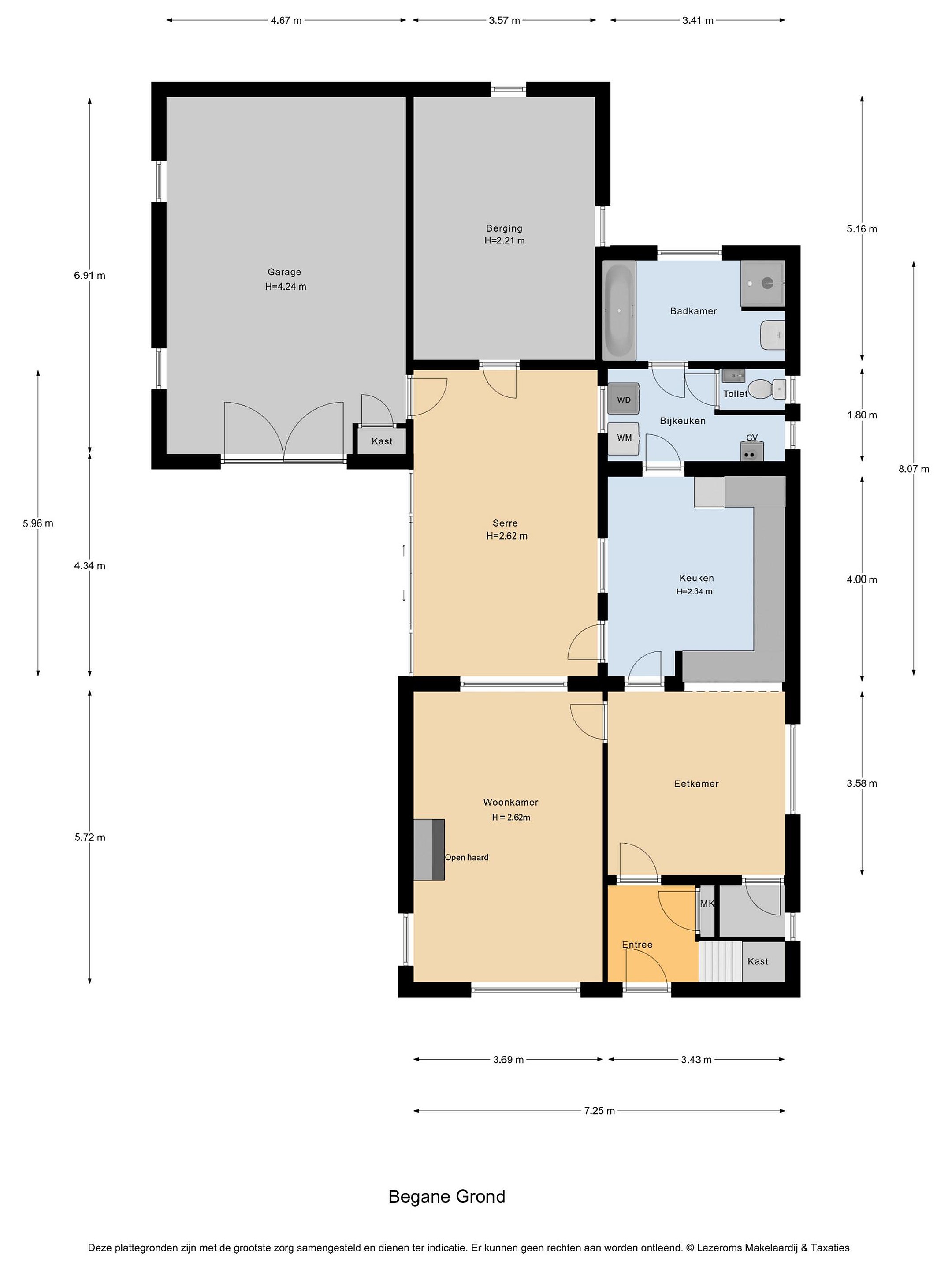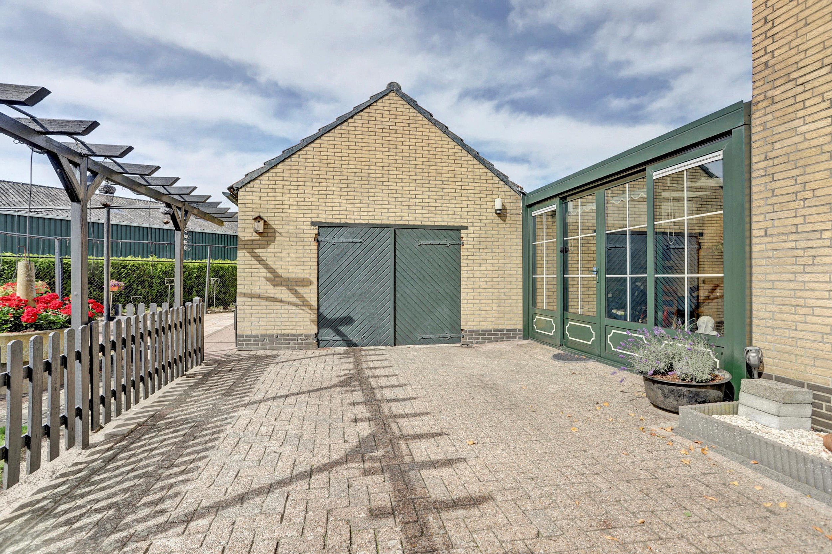 Vanuit de keuken loop je zo de serre in: een lichte ruimte met uitzicht op de tuin, ideaal als tweede zitkamer of speelruimte. Verder beschikt de woning over een aanpandige berging van ca. 18m2 en een royale garage van ca 32m2 met verdieping, zeer geschikt voor hobby’s of extra opslag.