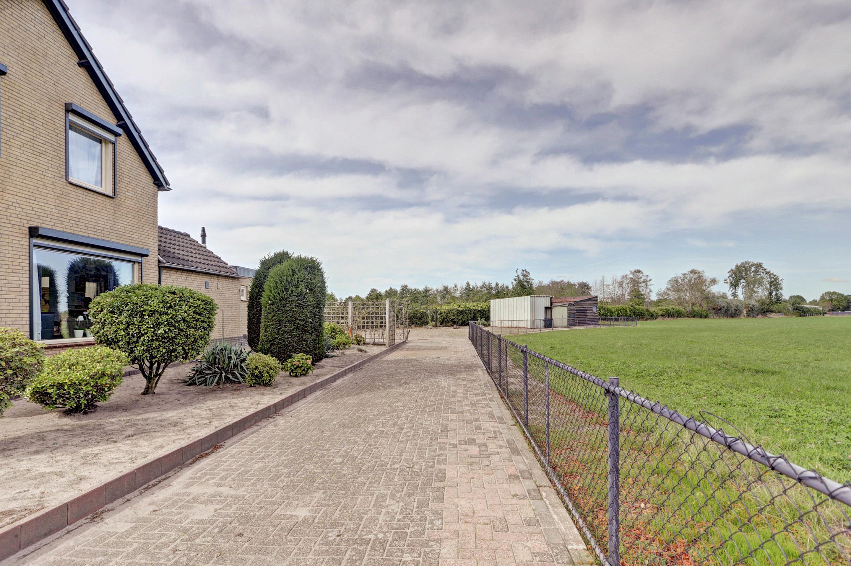 Rondom de woning ligt een ruime tuin. Aan de voorzijde is de tuin voorzien van sierbestrating en groen, terwijl de achterzijde nog volop mogelijkheden biedt. Het grote weiland maakt dit de perfecte plek voor tuinliefhebbers, het houden van kleinvee of om simpelweg te genieten van het weidse uitzicht over de omliggende landerijen. Op het weiland is nog een berging van damwandplaten in combinatie met 2 paardenstallen aanwezig. Hier dient wel rekening gehouden te worden met sloop/nieuwbouw.