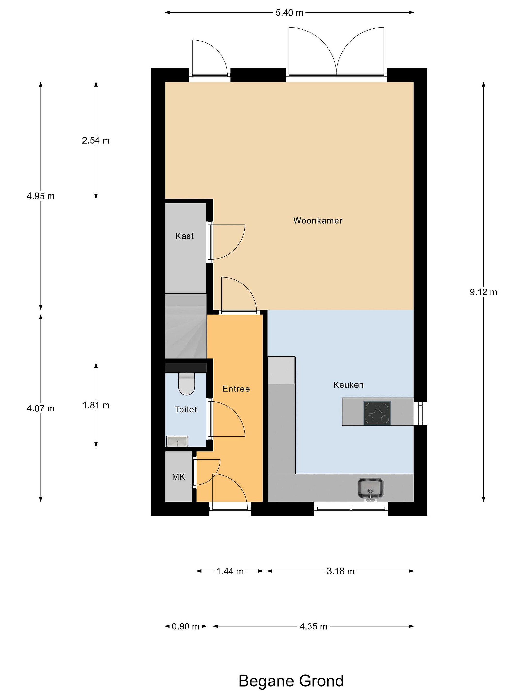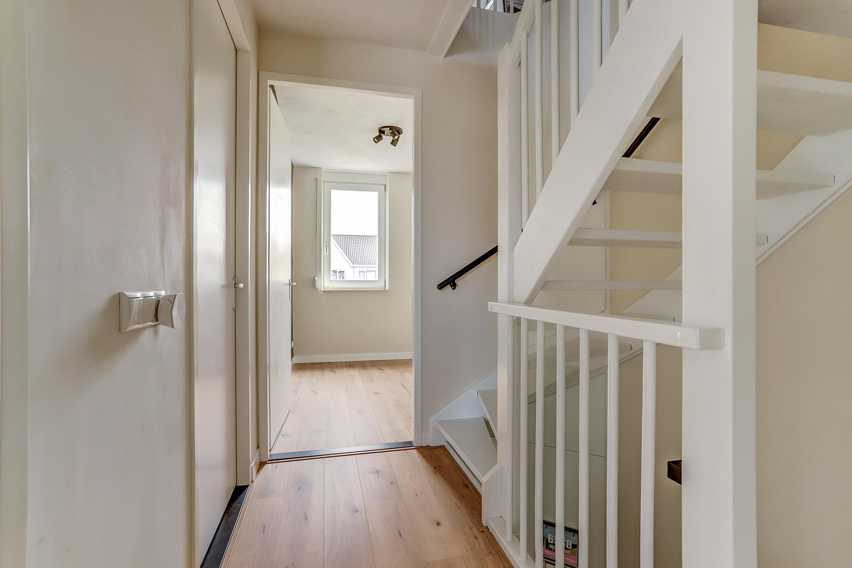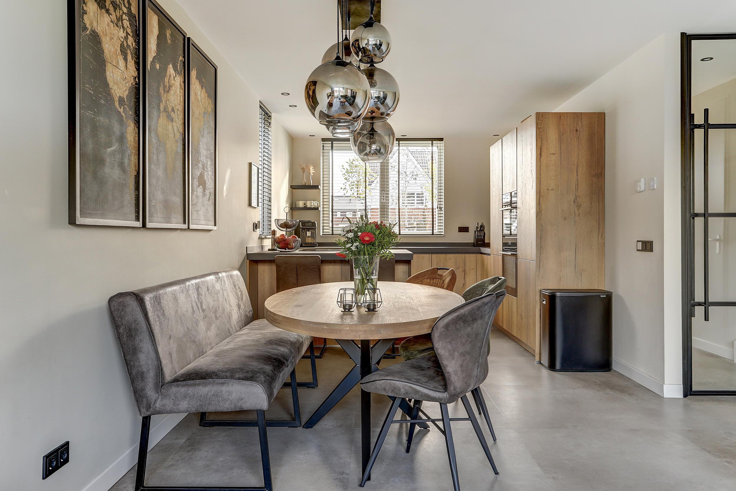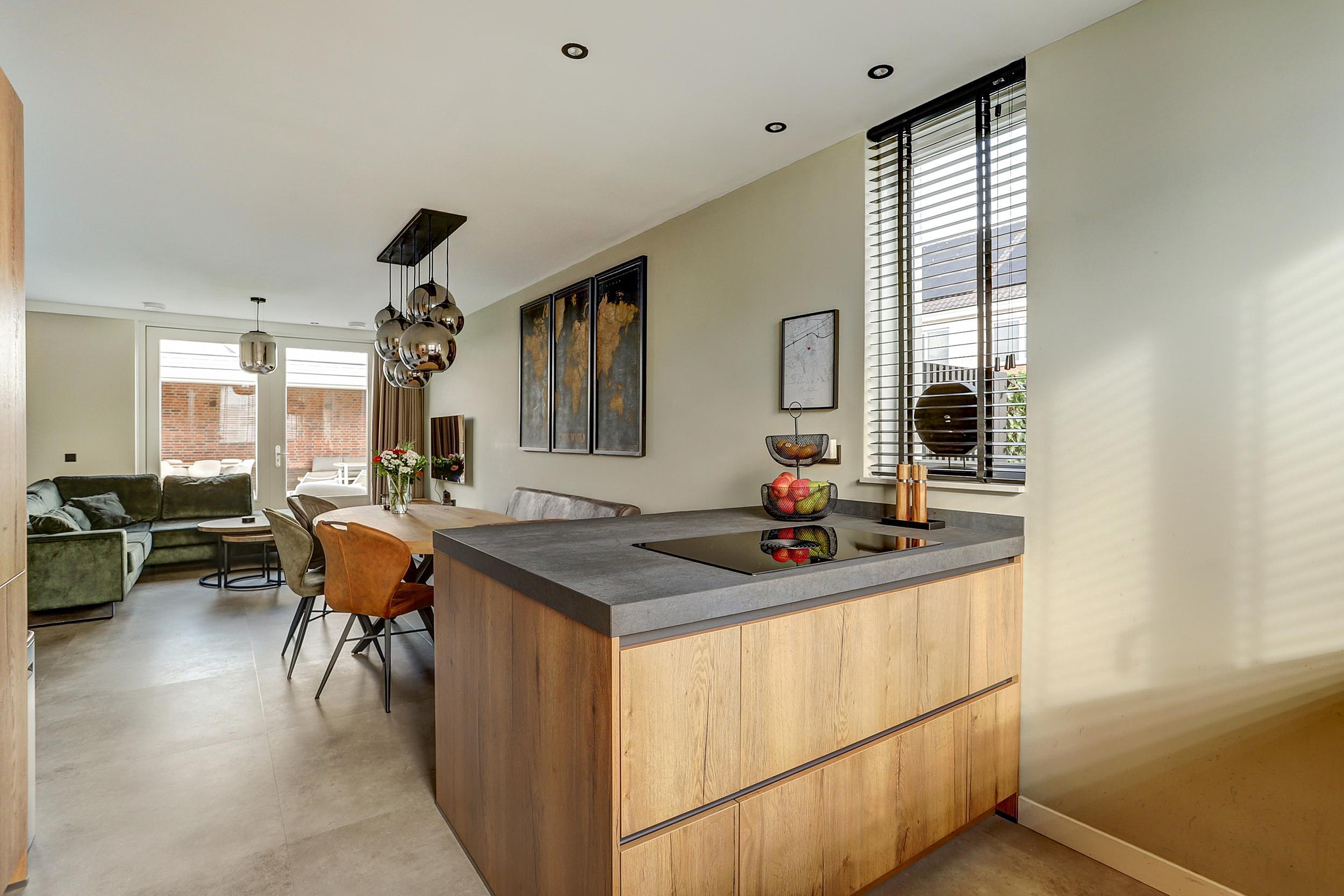 De woonkamer is zeer ruim van opzet en wordt prachtig belicht door meerdere raampartijen, met een gezellige zithoek. Er is voldoende ruimte voor een eethoek en een royale zithoek. De trapkast, waarin de warmtepomp is weggewerkt, draagt bij aan een efficiënte en duurzame verwarming van de woning. Dit zorgt voor een aangenaam binnenklimaat, zonder dat het ten koste gaat van de open uitstraling van de woonkamer.