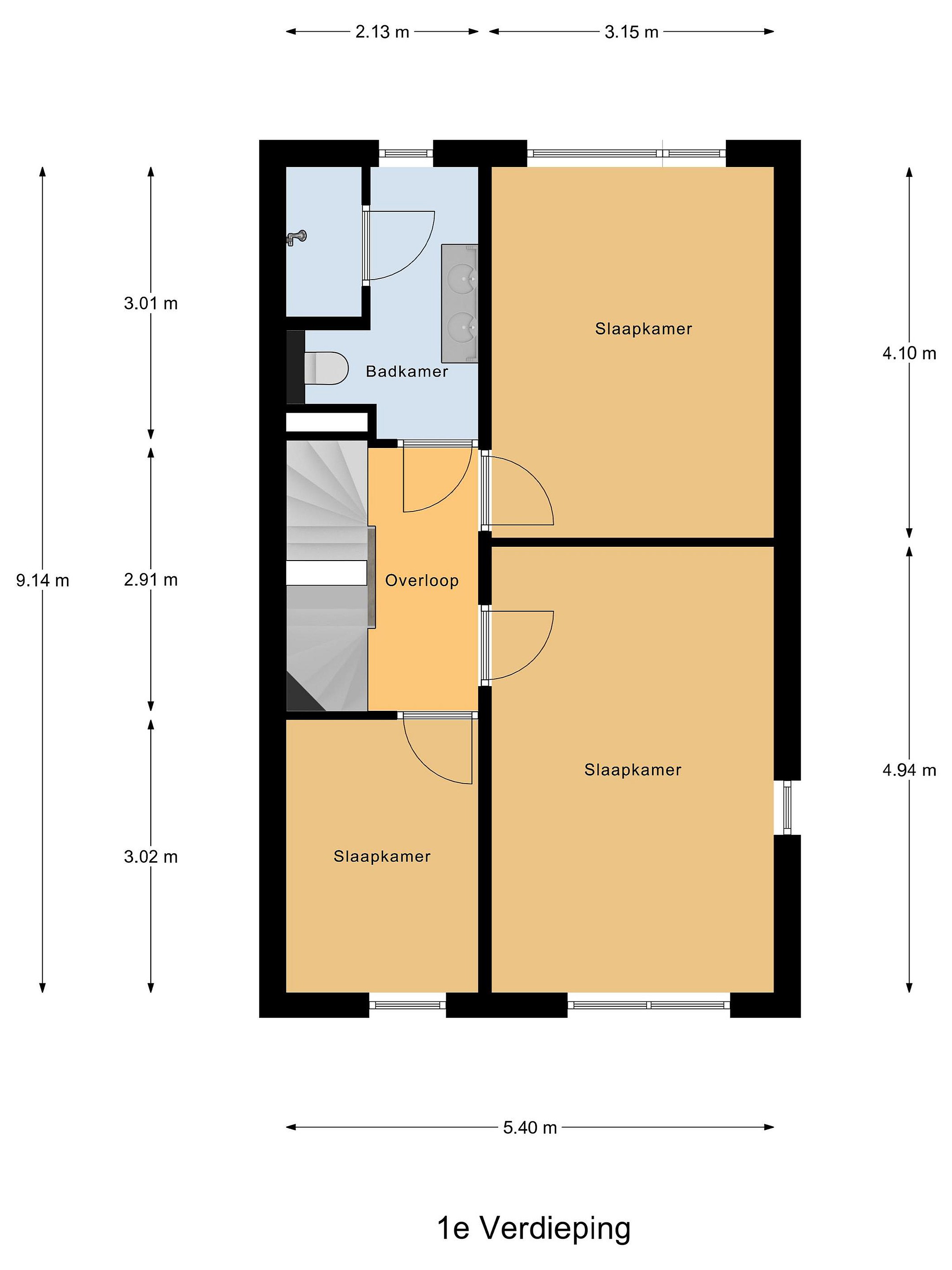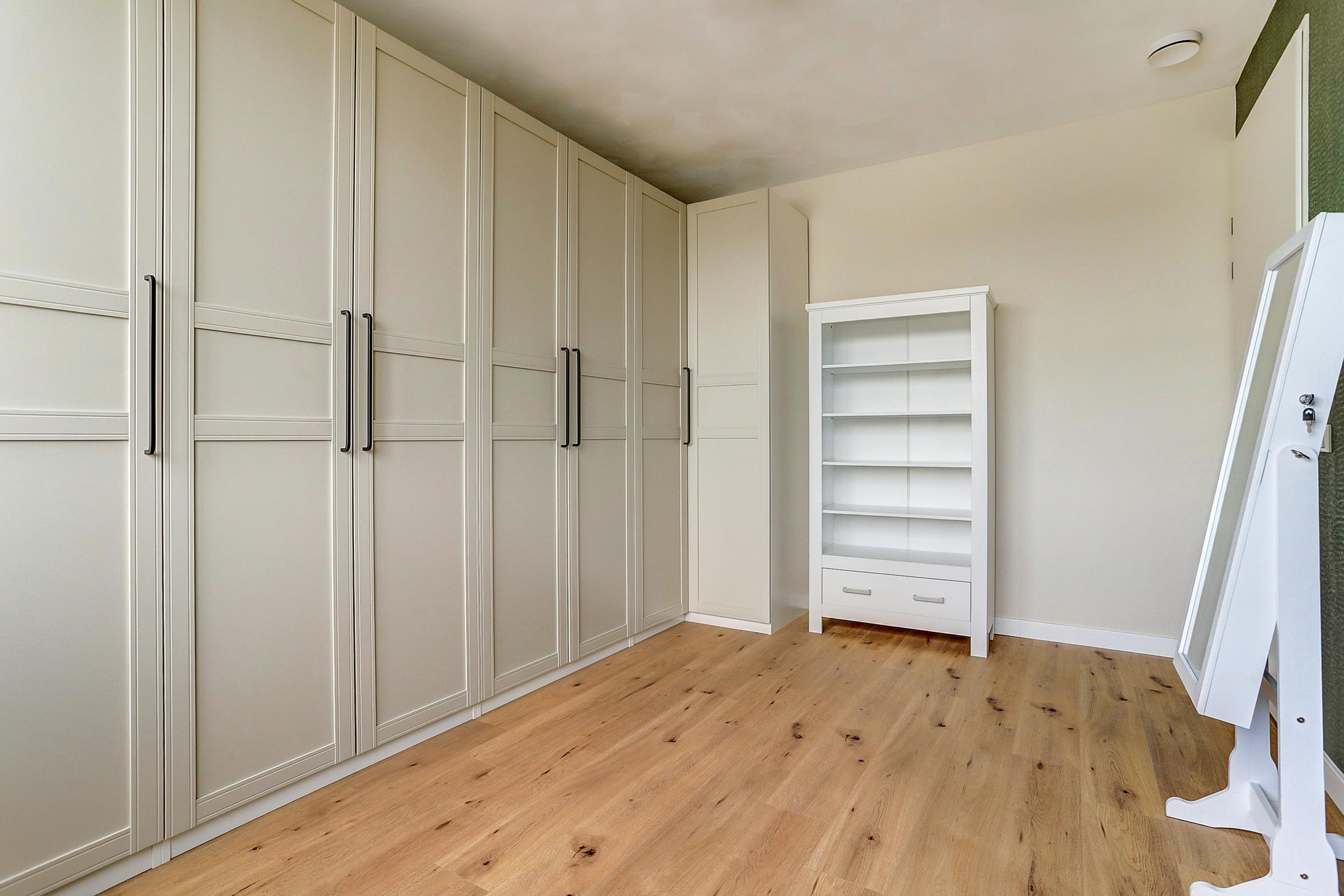 Op de eerste verdieping valt meteen op hoeveel ruimte deze woning biedt. De overloop geeft toegang tot drie bijzonder ruime slaapkamers, die elk voldoende plek bieden voor een groot bed, kasten en eventueel een bureau of zithoek. De grote ramen zorgen ook hier voor veel natuurlijk licht, wat de kamers een open en frisse uitstraling geeft.