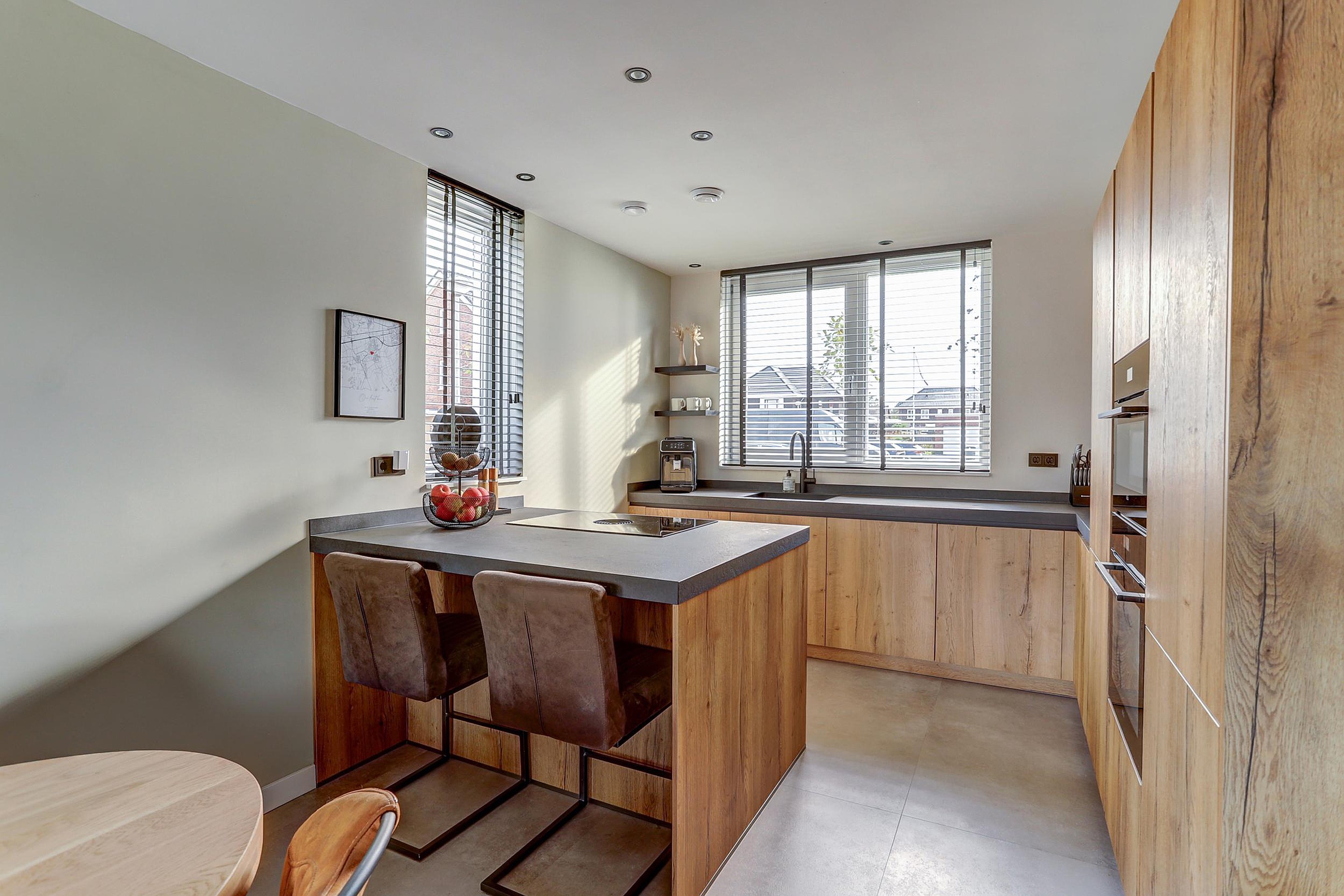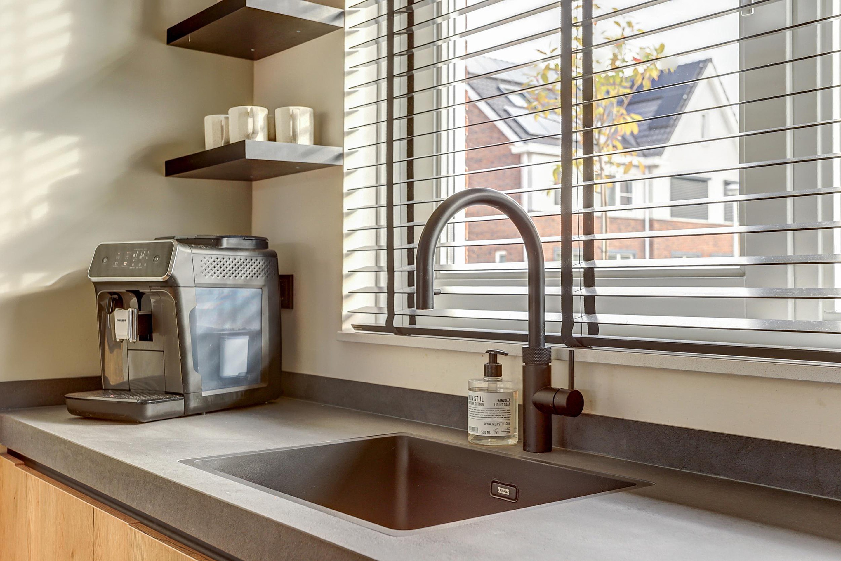 De keuken is het kloppend hart van deze woning, een stijlvolle en praktische leefruimte waar koken en samenzijn perfect samenkomen. De luxe open keuken is ontworpen met oog voor detail en comfort, en beschikt over een modern kookeiland dat niet alleen extra werk- en bergruimte biedt, maar ook een gezellige plek vormt om aan te schuiven voor een kop koffie of een goed gesprek tijdens het koken.