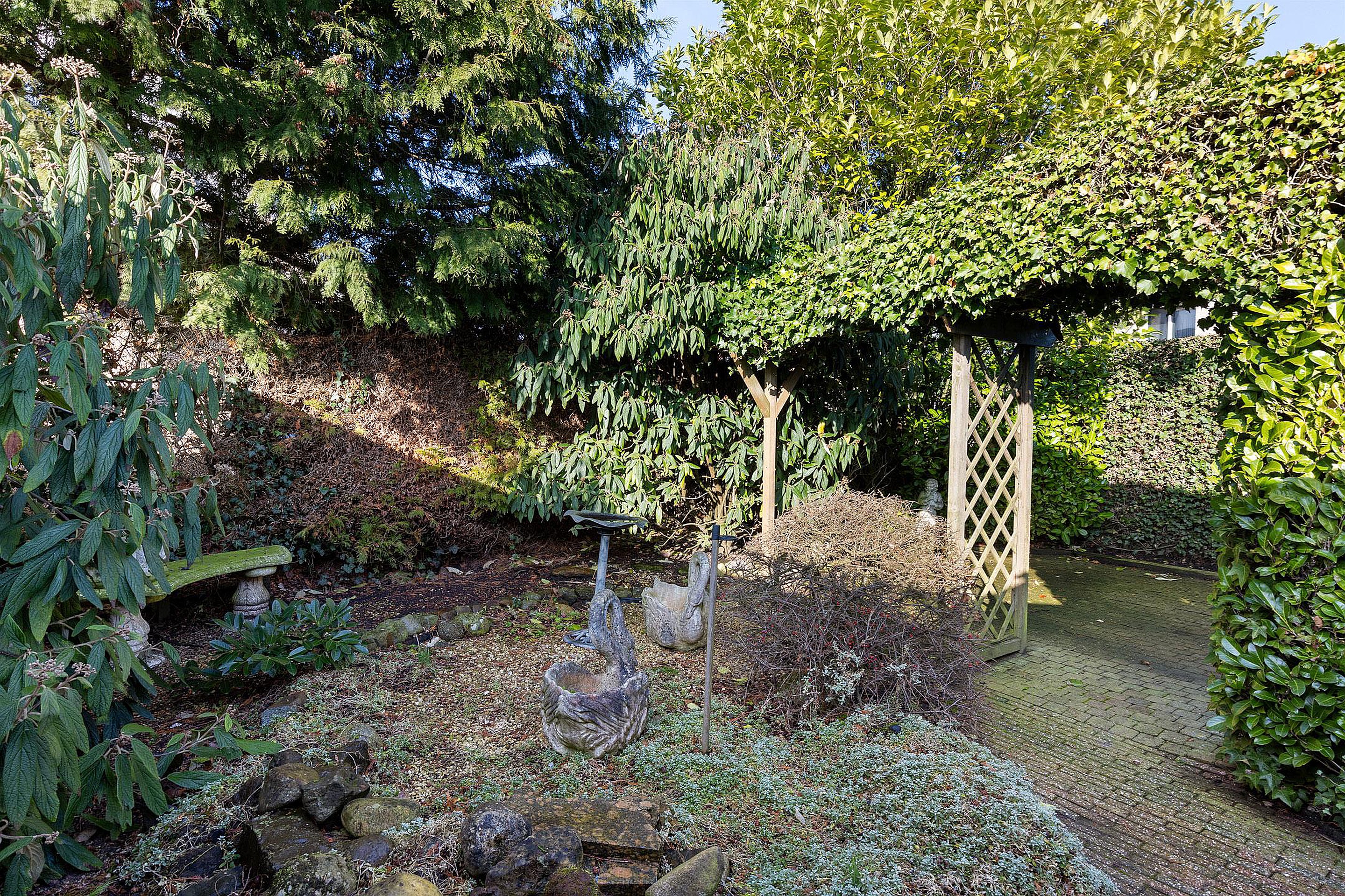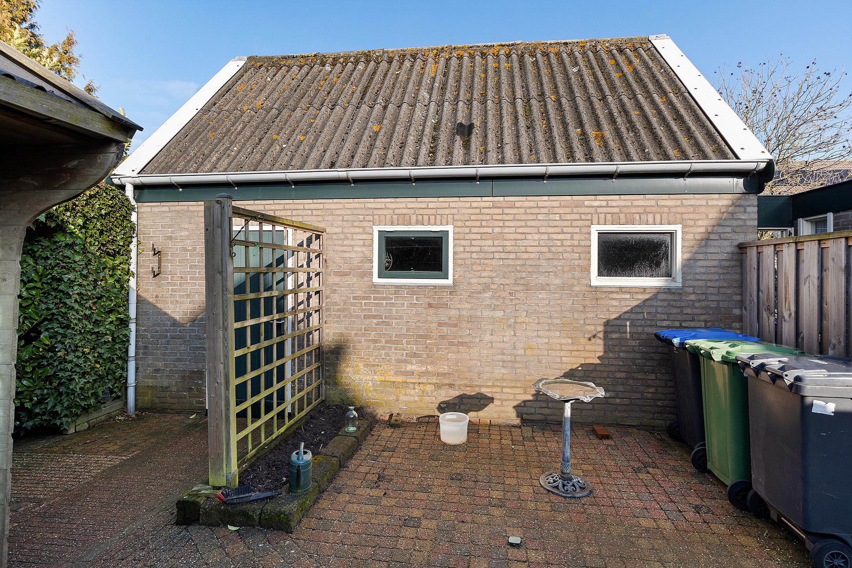 De tuin is erg ruim en biedt veel privacy. Daarnaast is er een vrijstaande garage met elektrische deur en verdieping voor extra opslag. In de tuin bevindt zich tevens een berging met overkapping.
