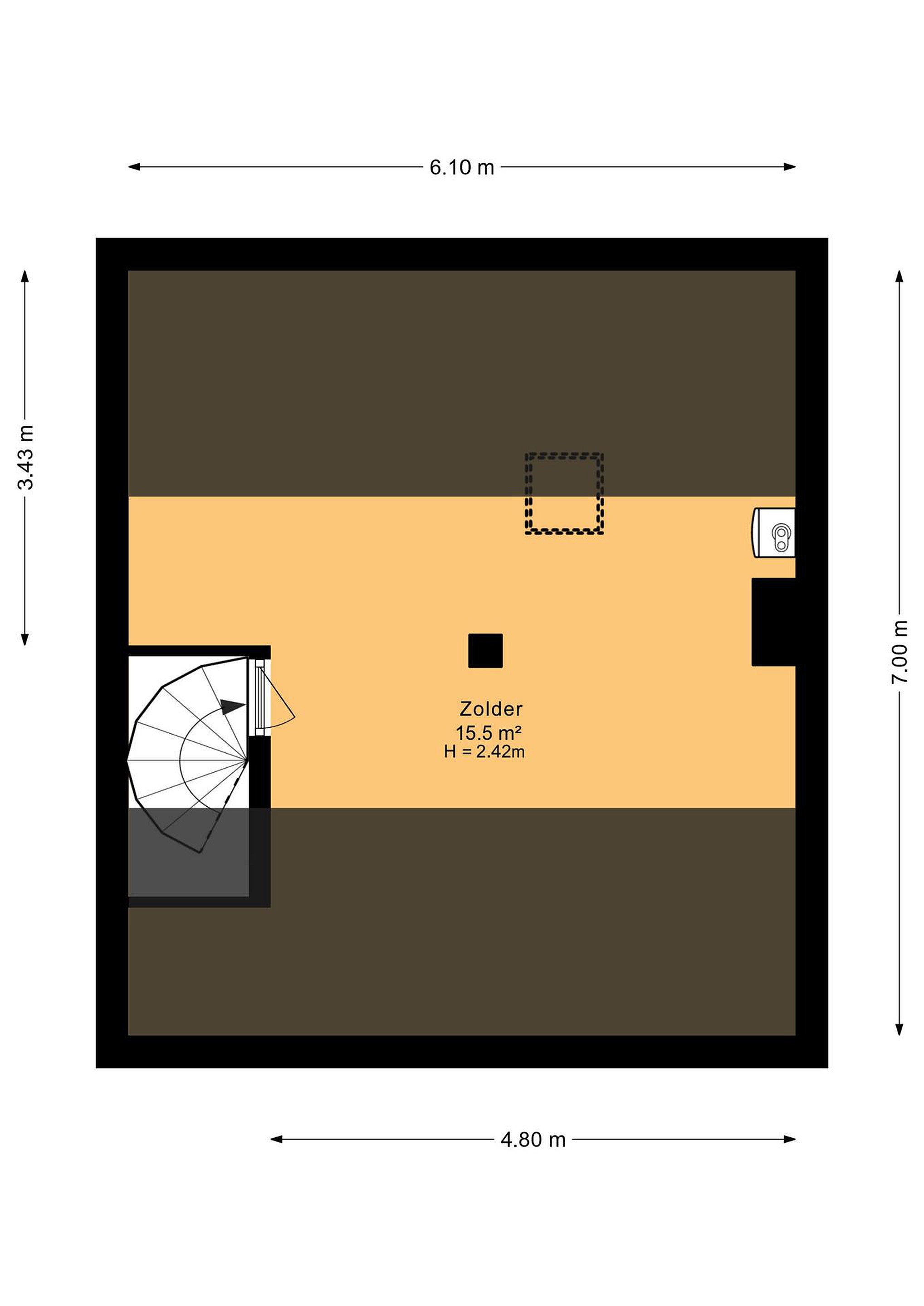 Via een vaste trap bereik je de ruime zolderverdieping van ongeveer 15,5 m2 met een goede stahoogte en een dakraam. Ideaal als bergzolder, maar ook een uitstekende basis voor een extra slaapkamer, werkruimte of hobbykamer.