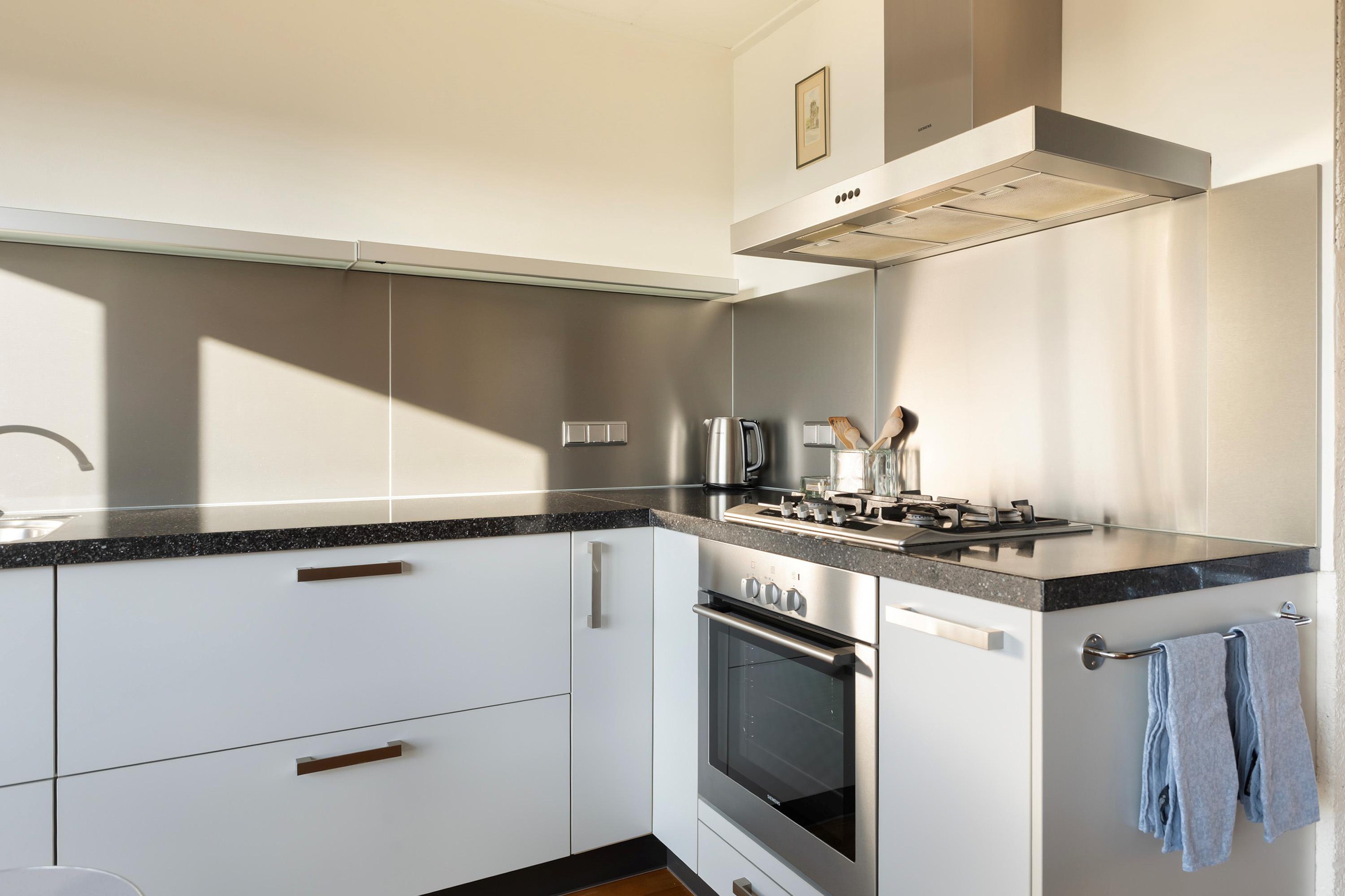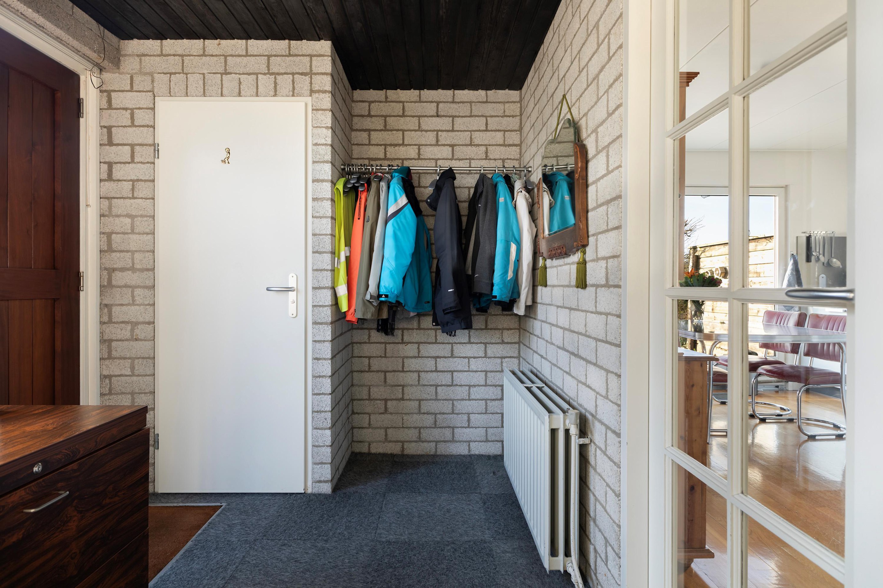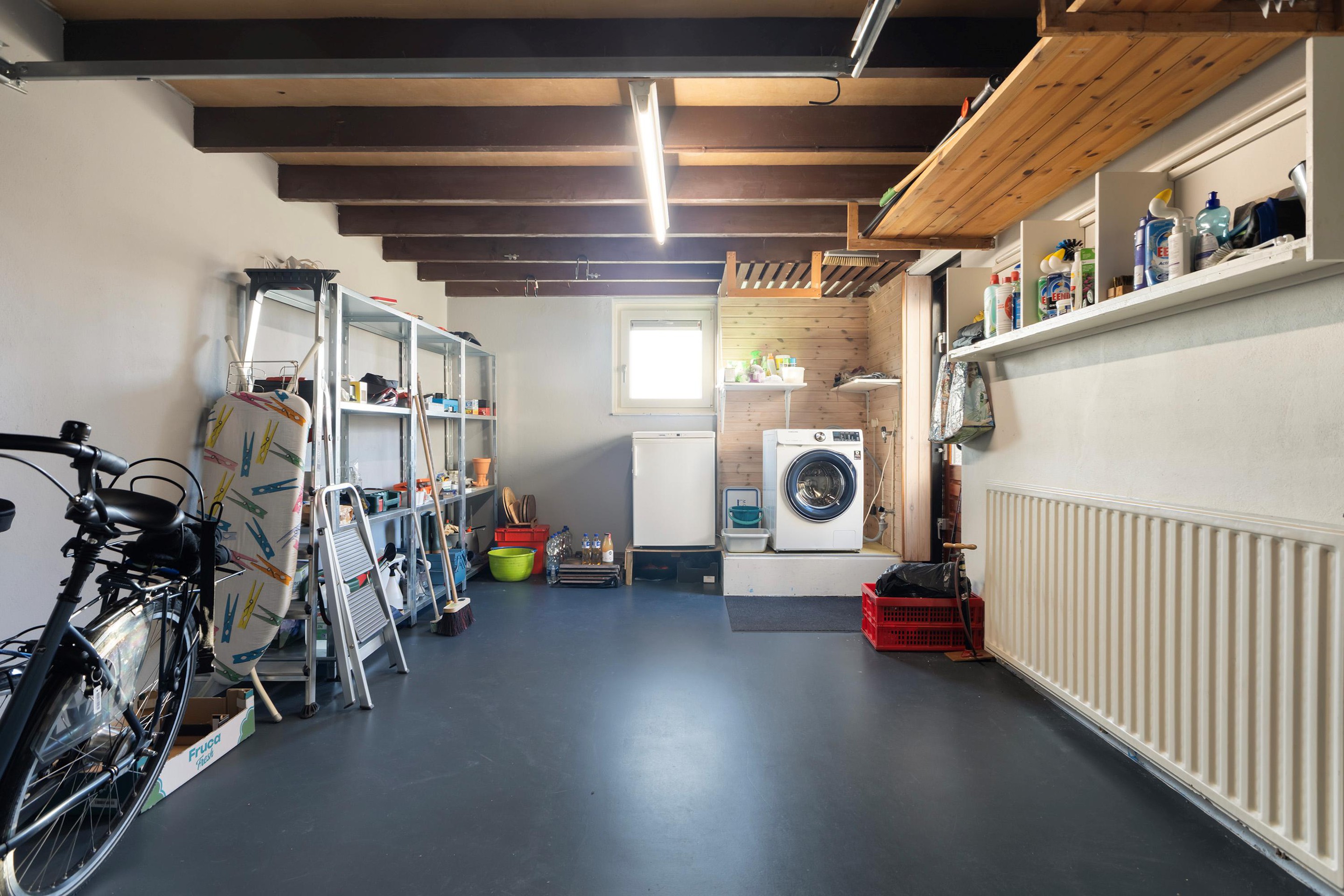 De halfopen keuken is praktisch ingericht en biedt voldoende ruimte voor een grote eettafel – ideaal voor lange avonden tafelen of gezellige familiemomenten. De directe verbinding met de tuin maakt het extra prettig tijdens zomerse dagen. Aangrenzend vind je een kleine hal met toegang tot de garage, perfect voor het stallen van fietsen, het creëren van een hobbyruimte of extra bergruimte. Hier bevindt zich tevens de witgoedopstelling. De garage beschikt over een sectionaaldeur en een loopdeur naar de oprit en achtertuin.