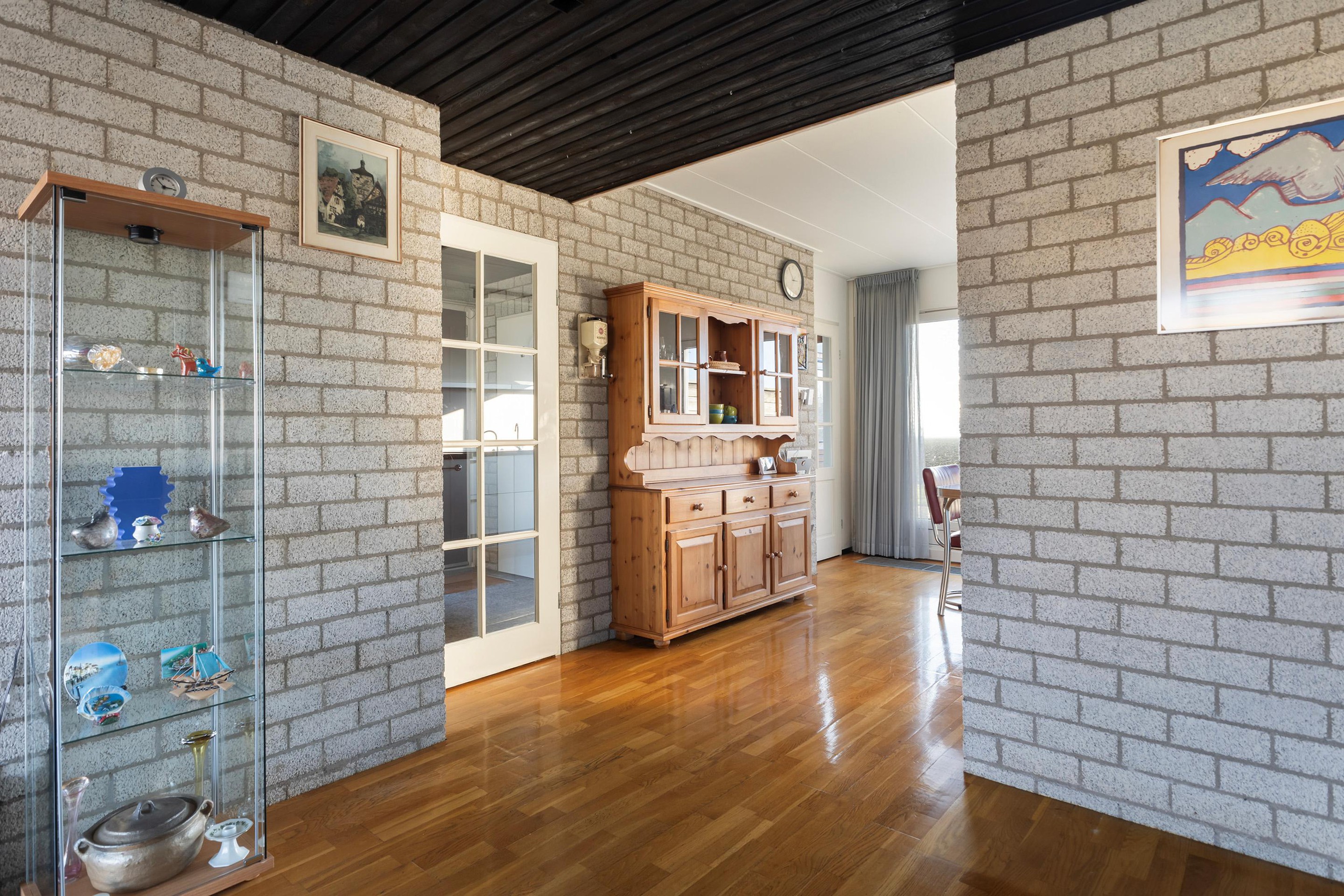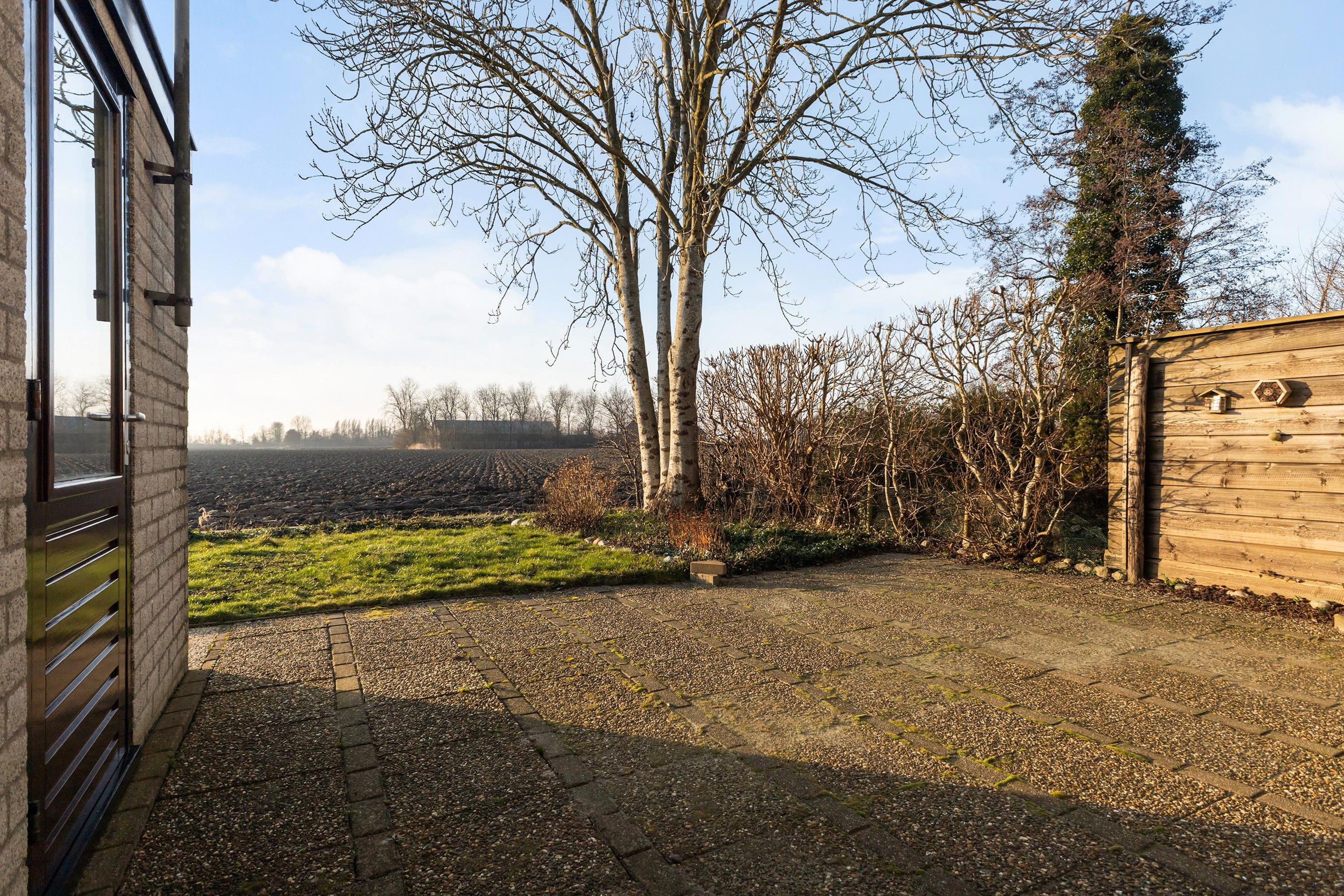 De woning staat op een mooi perceel met een eigen oprit en een vrijstaande garage. De achtertuin biedt volop privacy en vooral een uitzicht dat je niet snel ergens anders vindt. Vanuit de tuin kijk je zó de uitgestrekte Waadhoekster akkers in. Elk seizoen een ander schilderij: kale kleigrond in de winter, wuivend graan in de zomer en altijd die enorme lucht erboven. Een betere plek om tot rust te komen is bijna niet denkbaar.