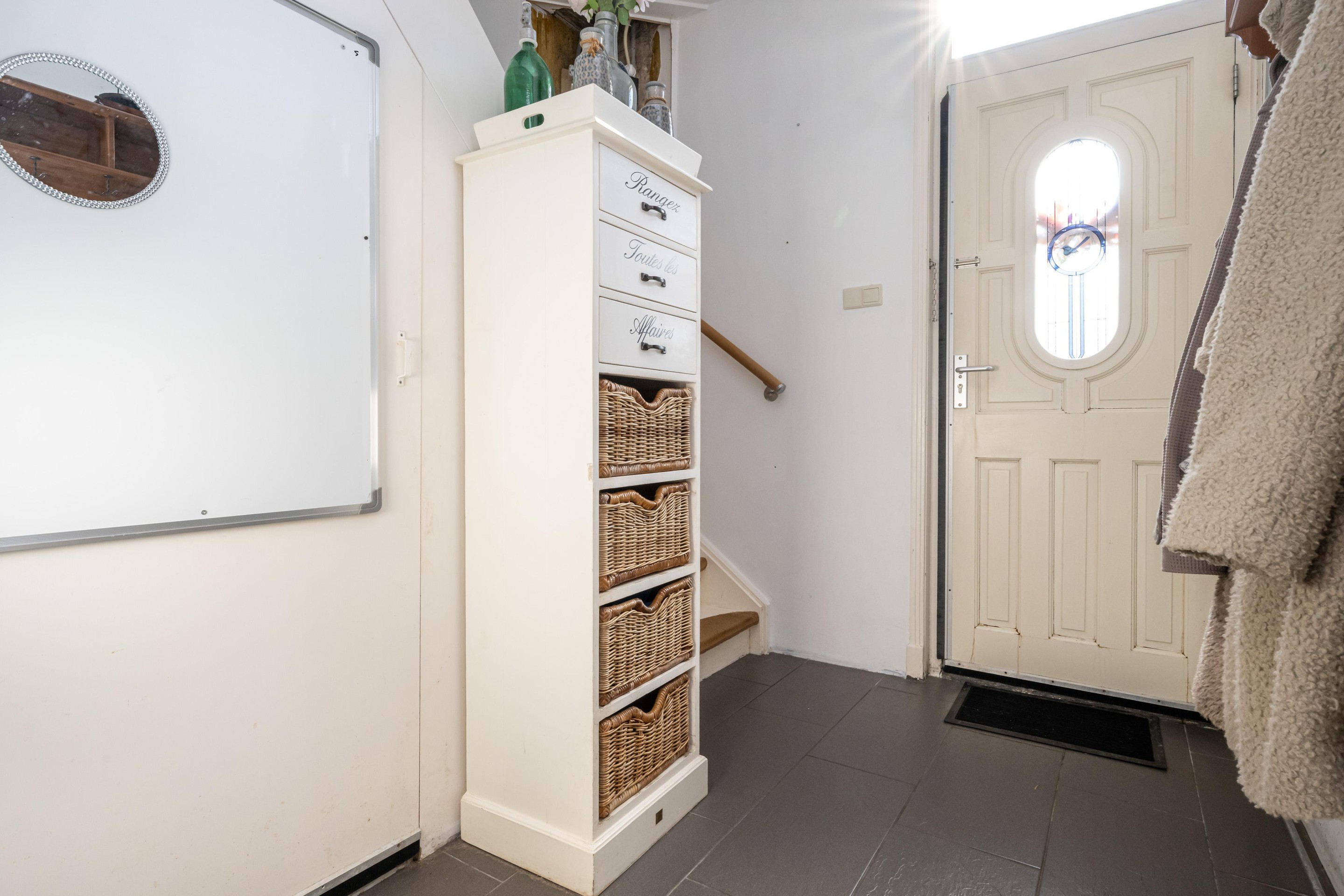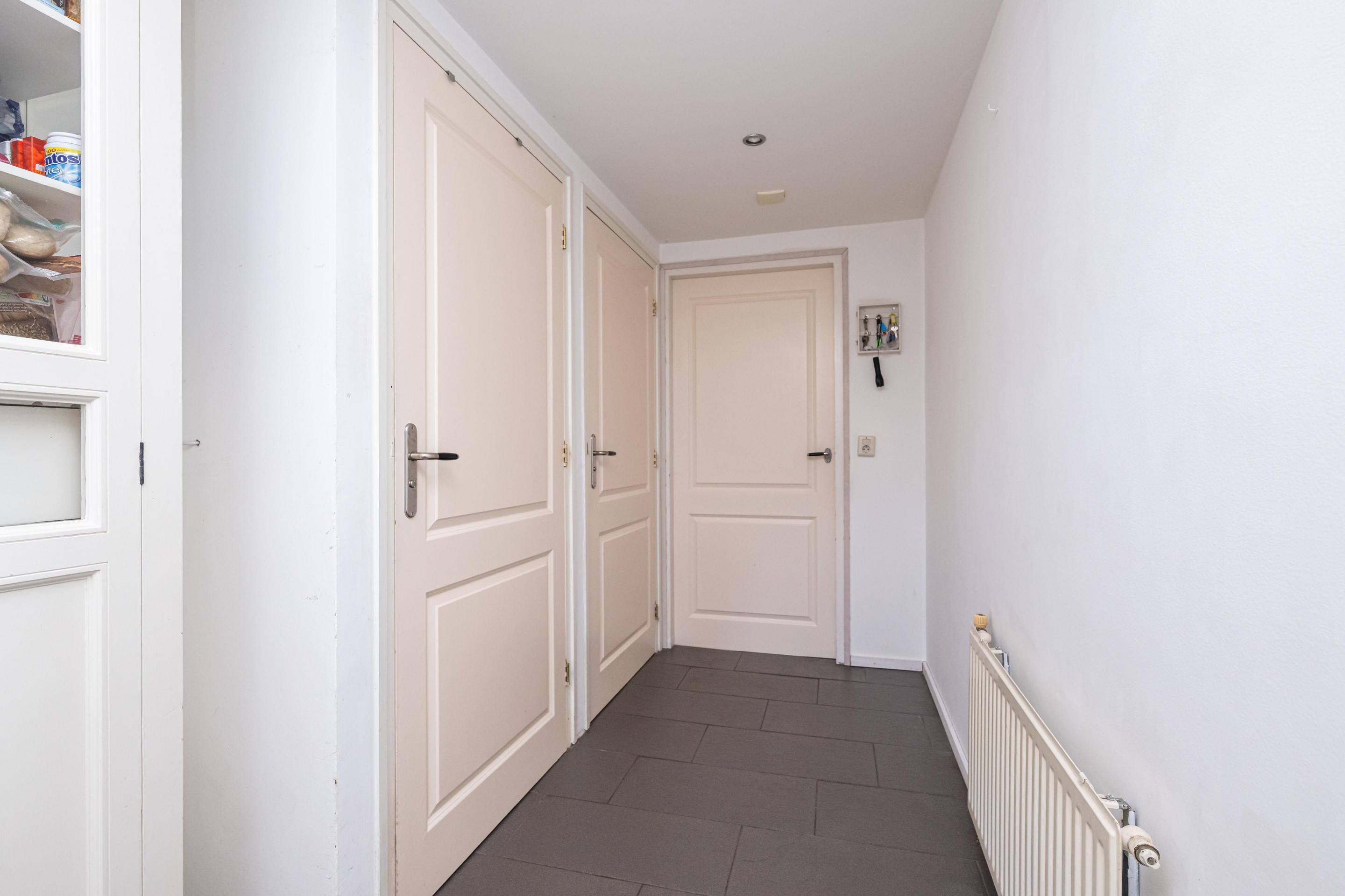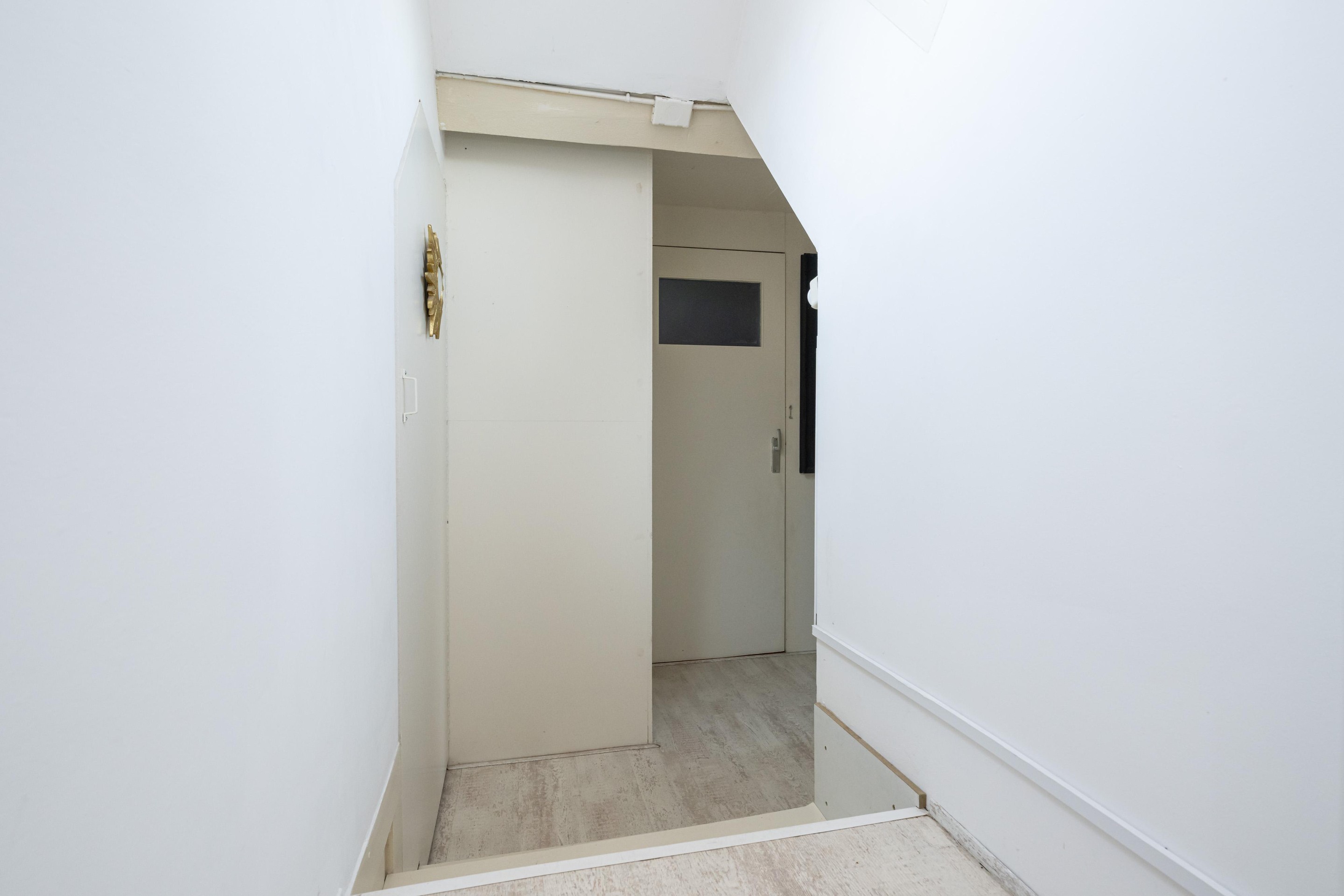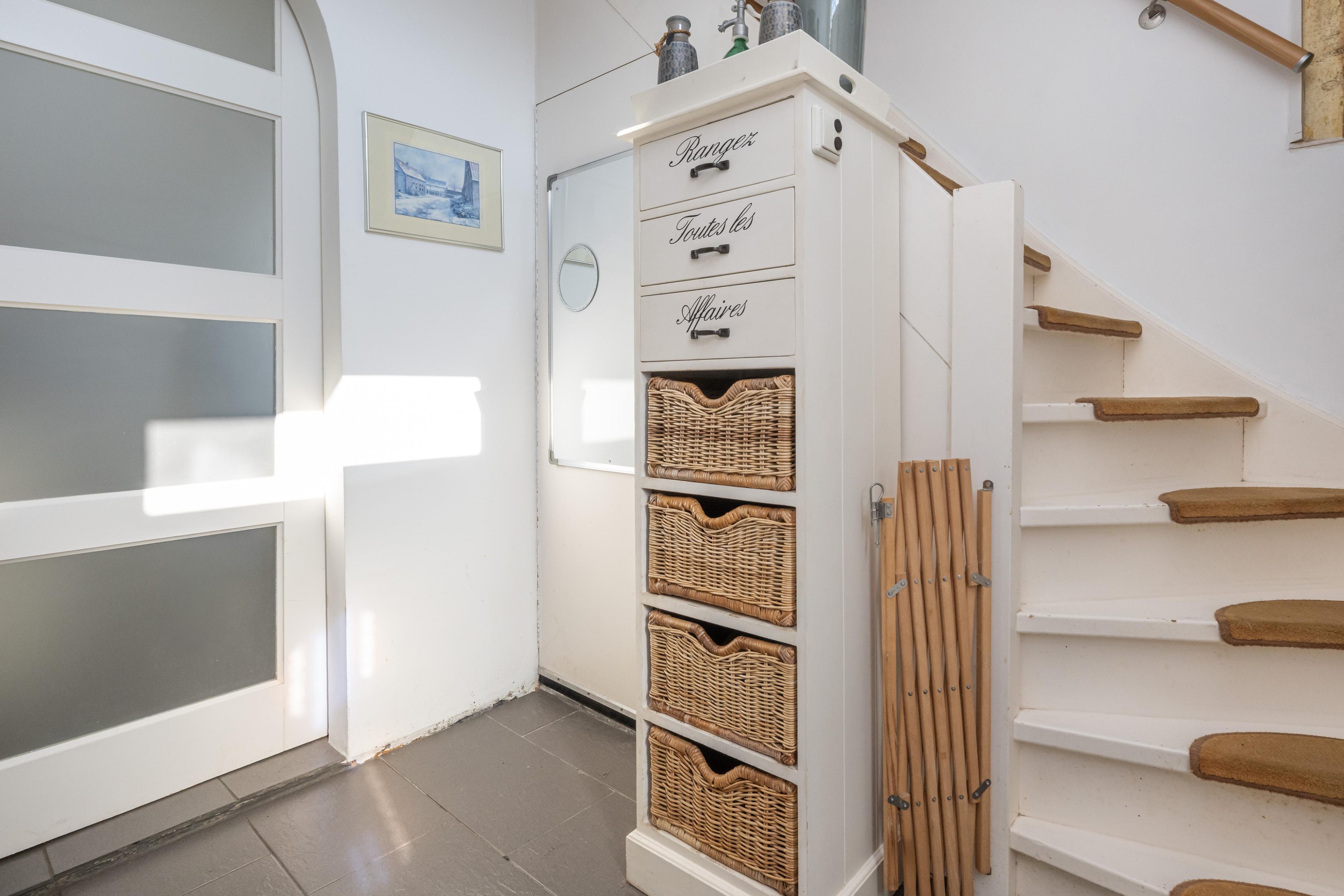 Plavuizen vloer, meterkast, trapopgang, kelderkast en rolluik.