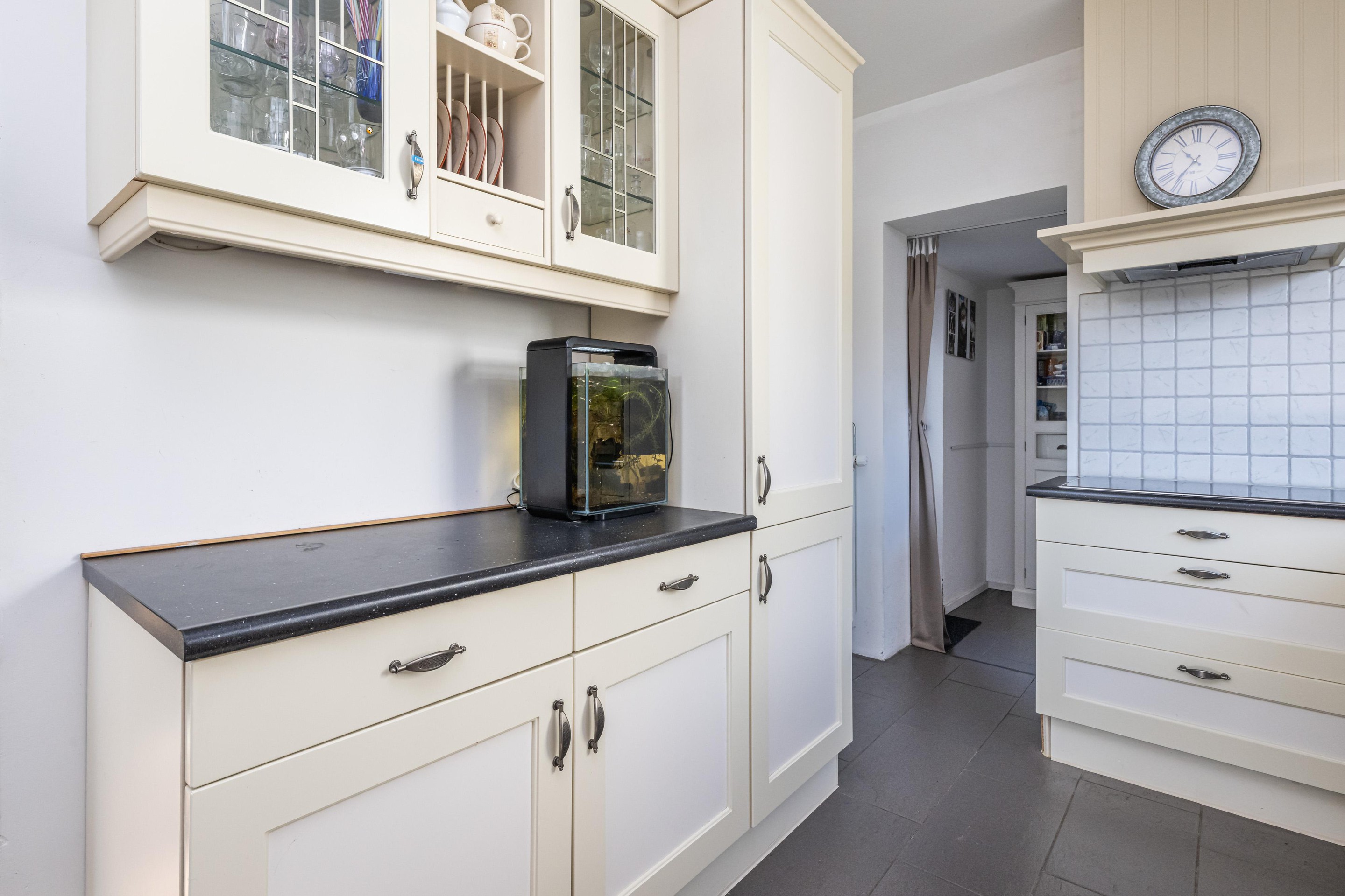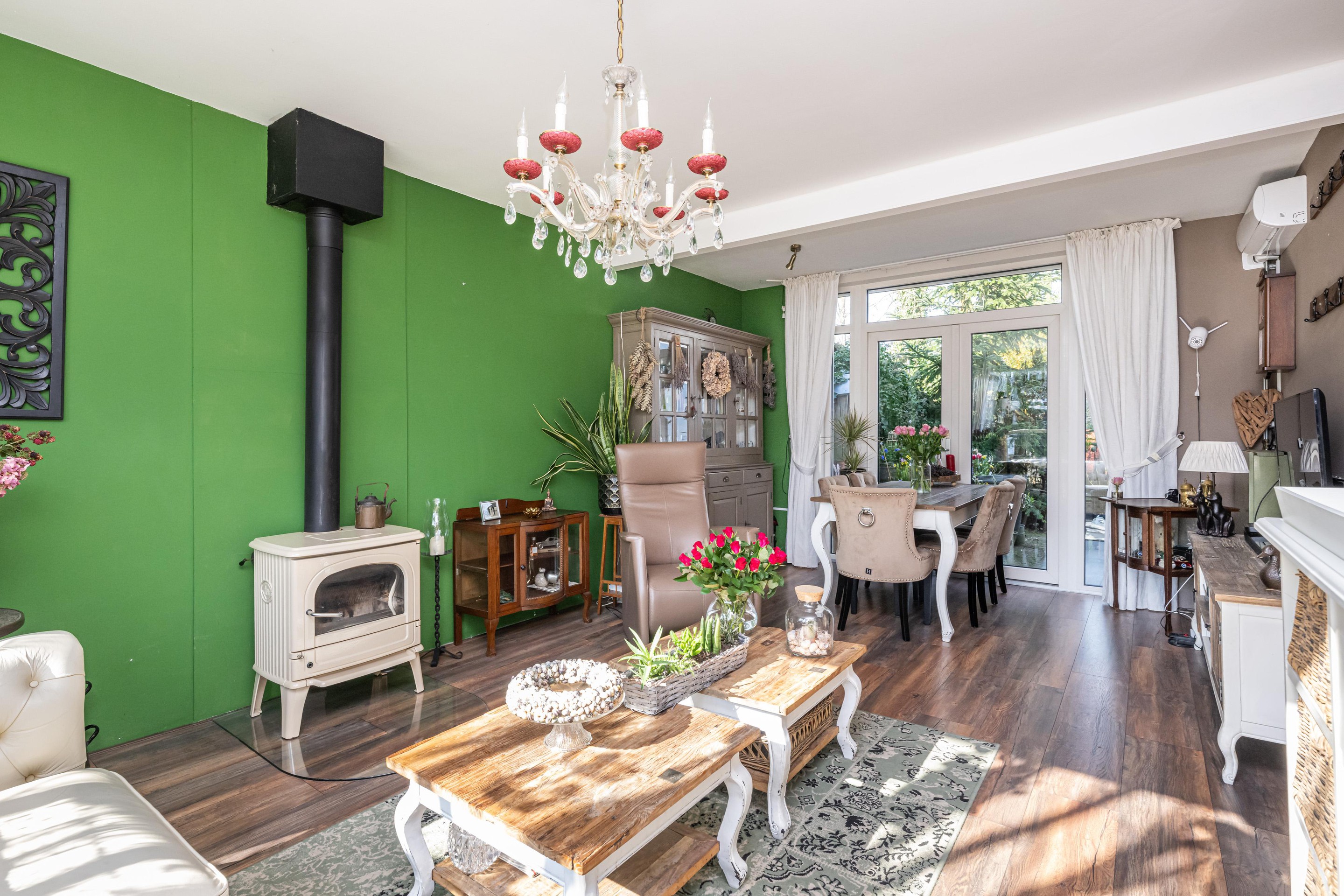 De woonkamer is een fijne, lichte leefruimte waar sfeer en functionaliteit mooi samenkomen. De houtkachel, geplaatst in 2022, zorgt voor een warme en gezellige ambiance en maakt deze ruimte extra aantrekkelijk tijdens de koudere maanden. Dankzij de dubbel openslaande deuren naar de tuin staat binnen naadloos in verbinding met buiten. Op mooie dagen zet u de deuren heerlijk open en betrekt u de tuin eenvoudig bij het wooncomfort. Dat maakt deze woning aantrekkelijk voor gezinnen, stellen en iedereen die houdt van licht, ruimte en een prettige woonbeleving.