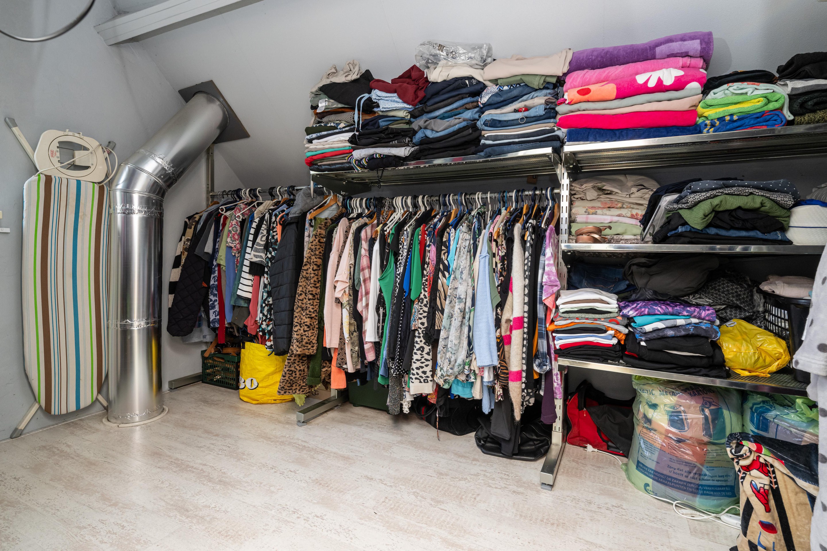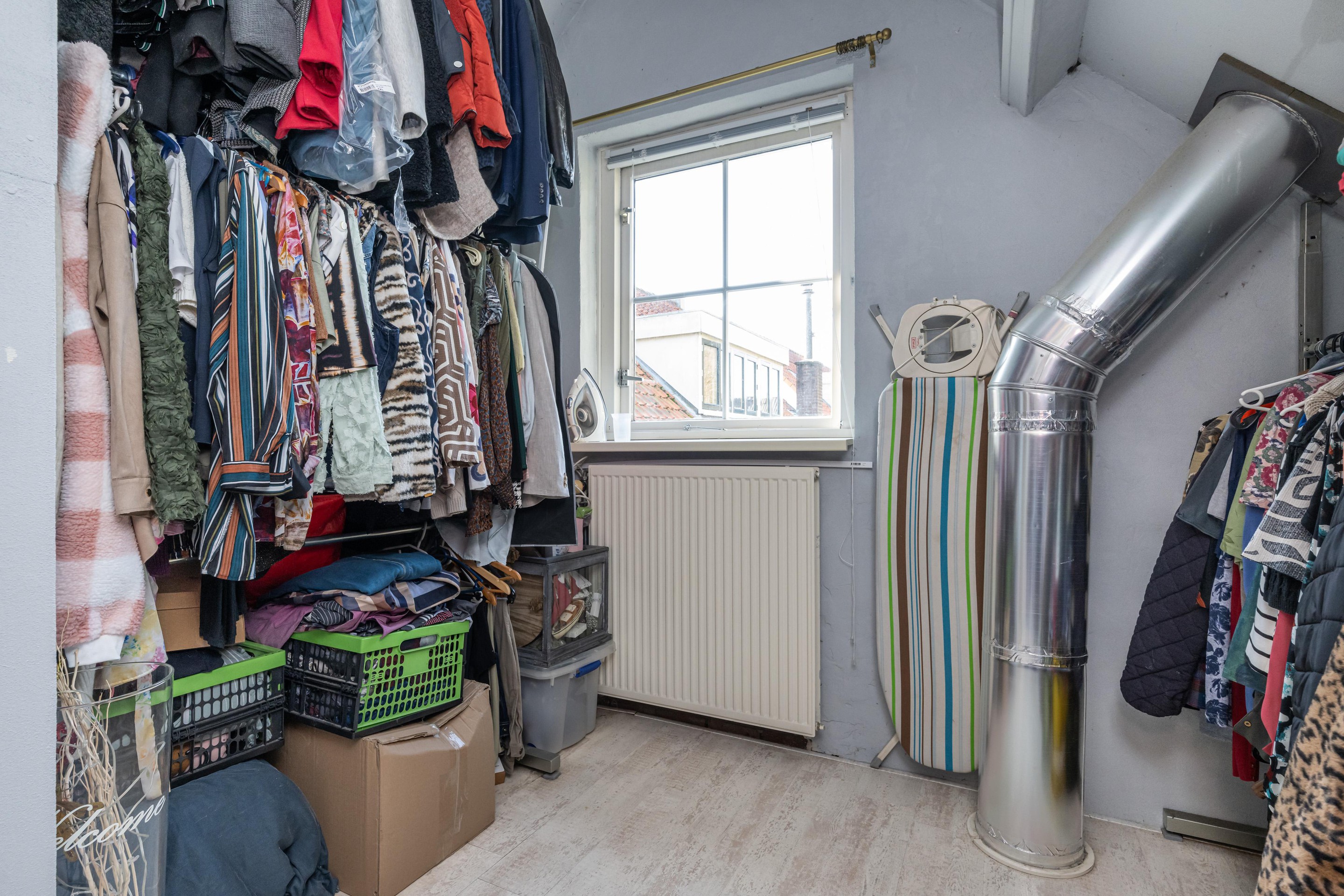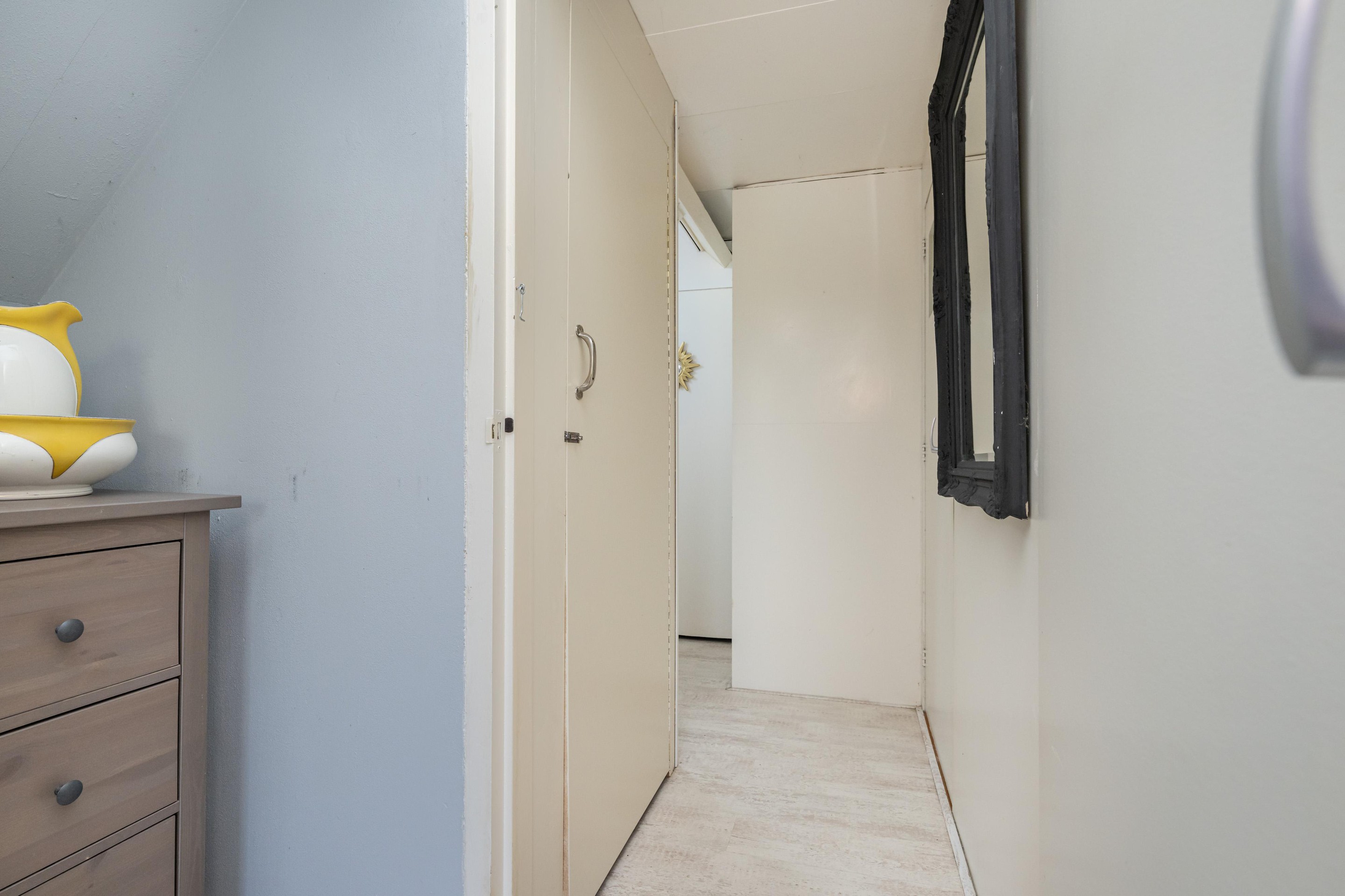 Laminaatvloer, bergruimte, dakkapel, wastafel en Velux dakvenster.
