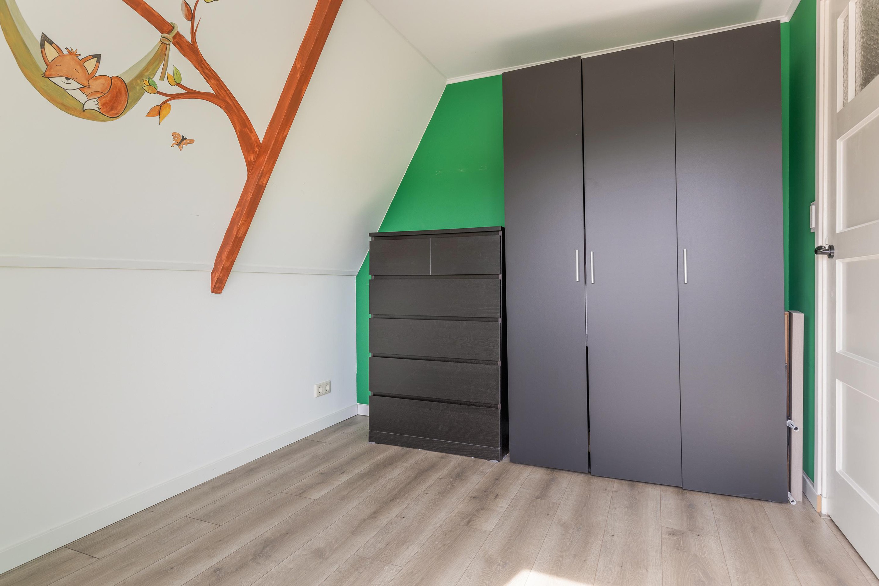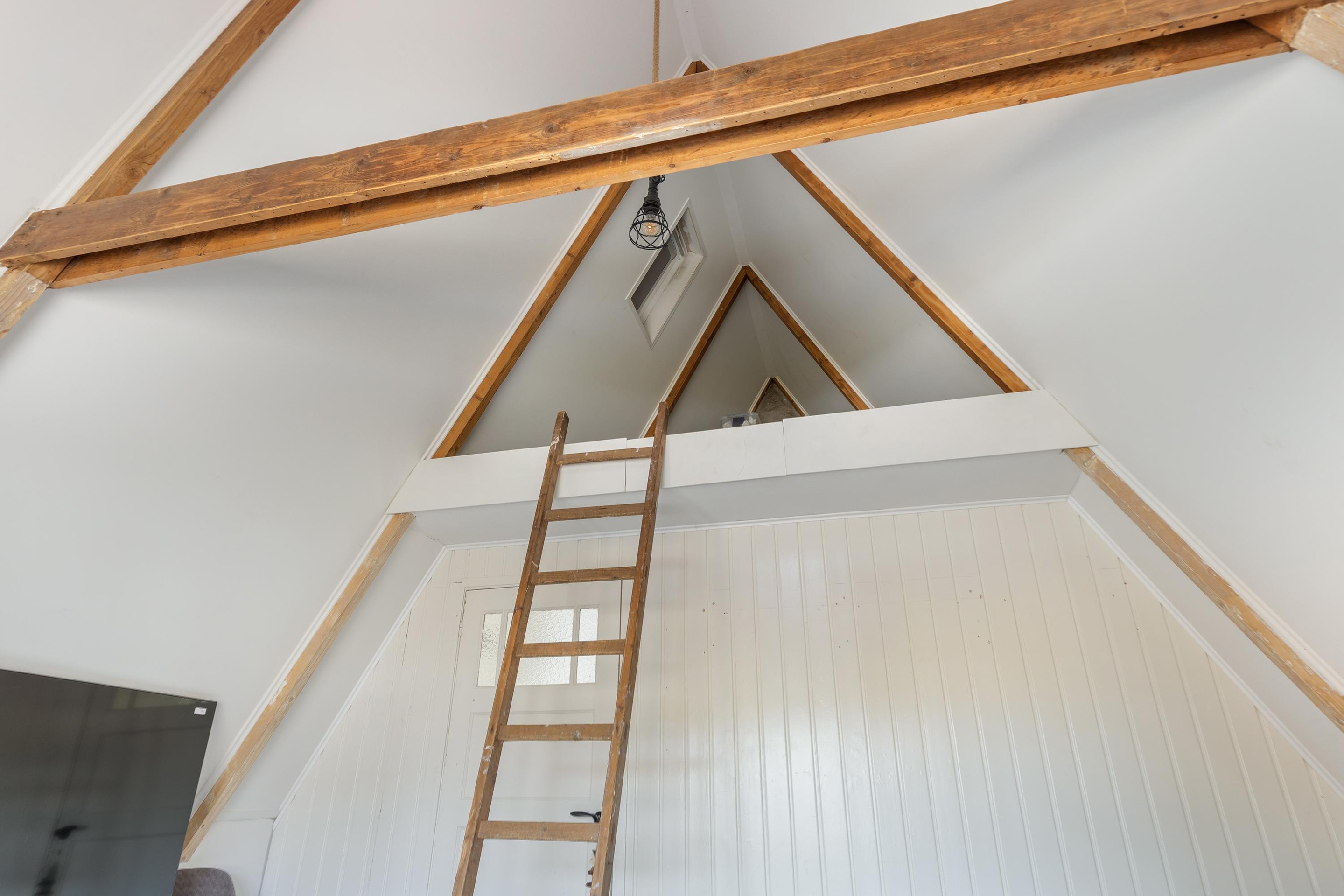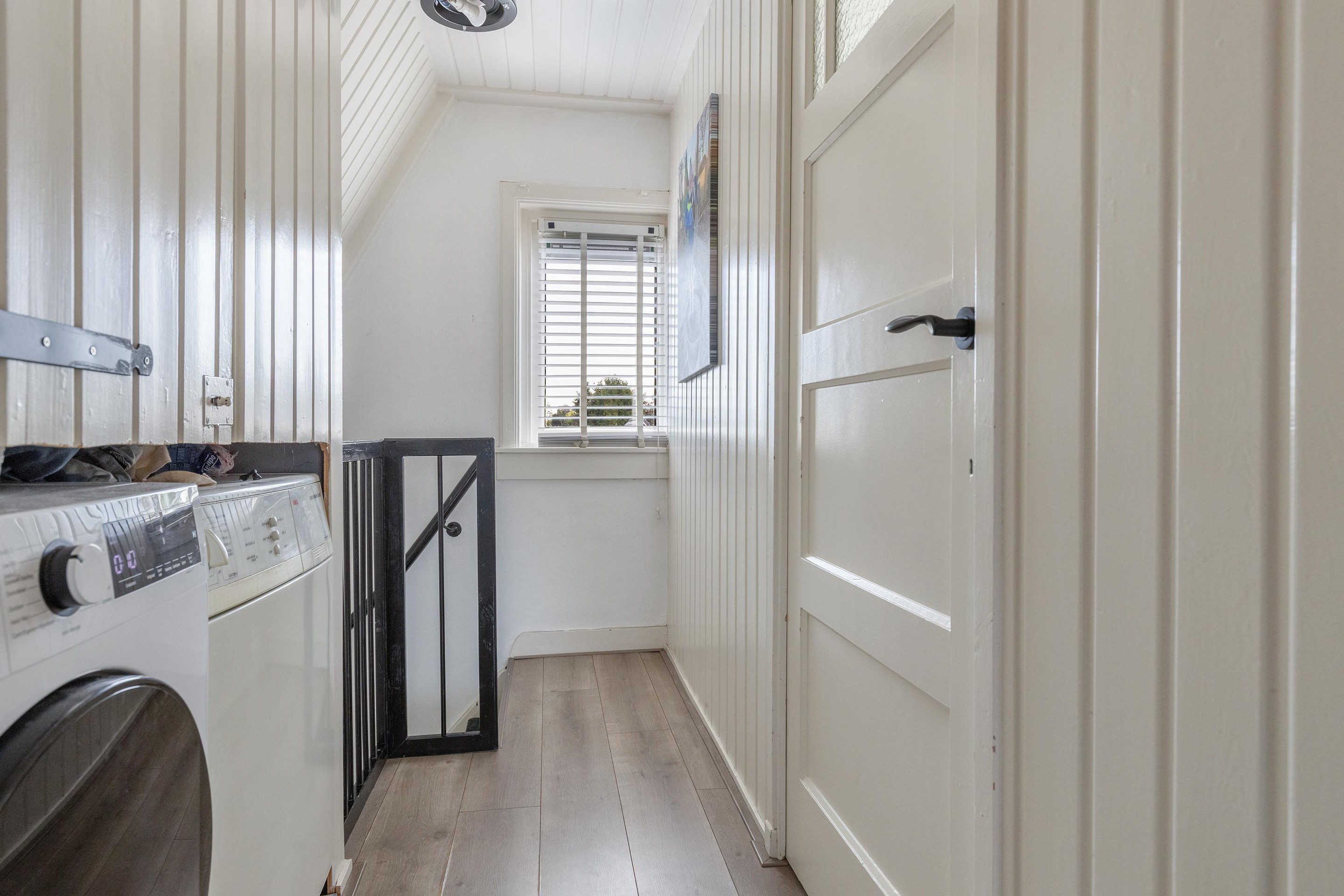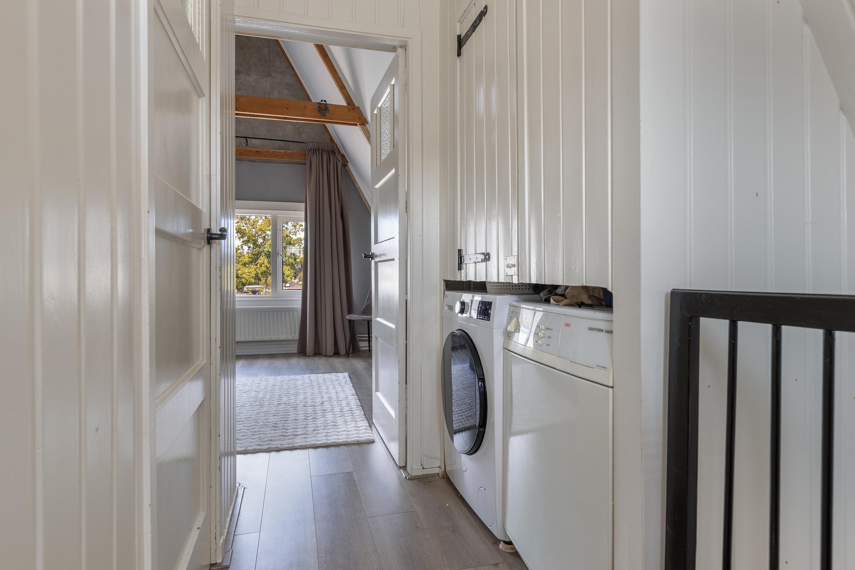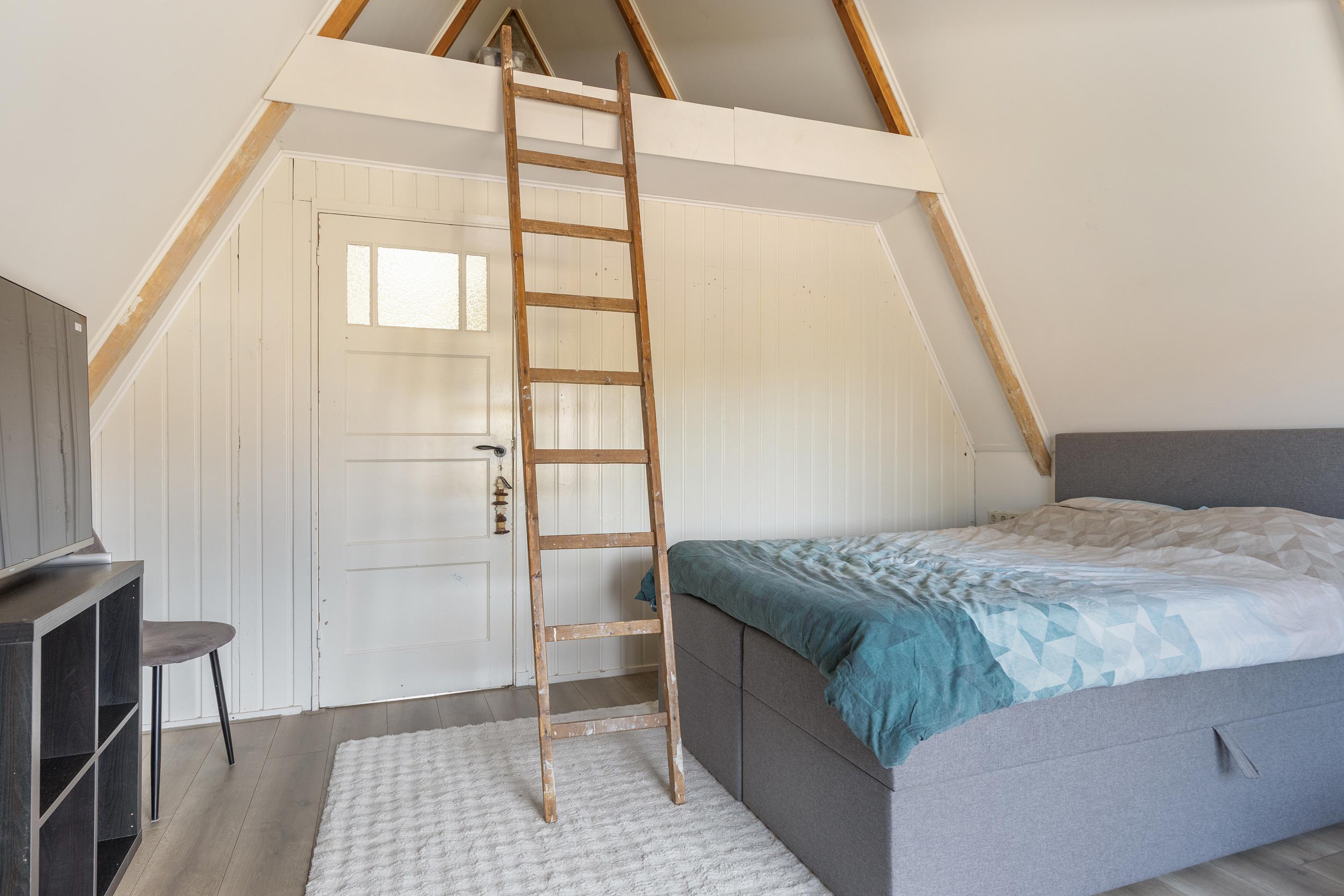 Eerste verdieping Overloop met vaste kastruimte en witgoedaansluiting, slaapkamer aan de achterzijde, ouderslaapkamer voorzijde met entresol