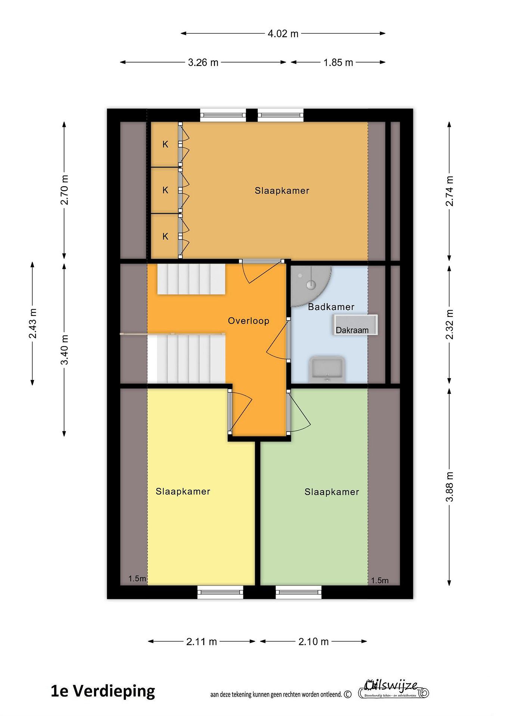 De woning beschikt over 3 comfortabele slaapkamers en een badkamer op de 1e verdieping. Via een vaste trap bereik je de 2e verdieping, waar een royale 4e slaapkamer gerealiseerd kan worden.