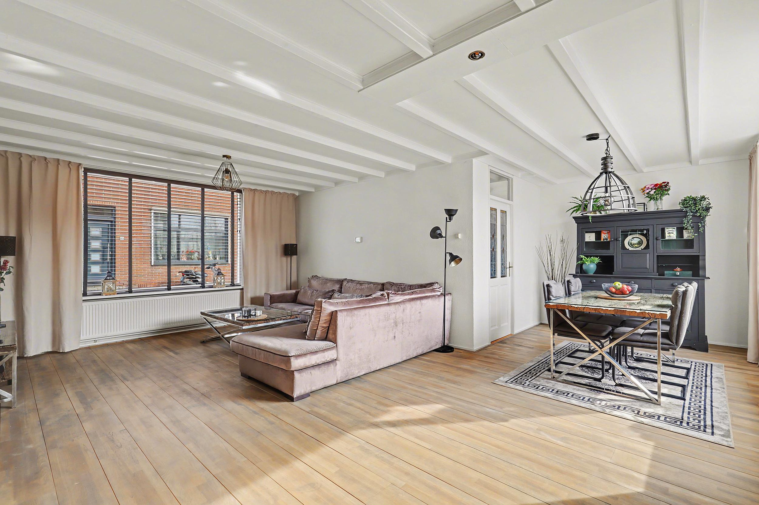 Bij binnenkomst komt u in de hal met meterkast en trapopgang naar de eerste verdieping. Vanuit de hal bereikt u de sfeervolle en lichte woonkamer. Grote raampartijen zorgen voor veel natuurlijk licht en geven de ruimte een open en warme uitstraling. De gezellige sfeerhaard vormt het hart van de woonkamer. De houten vloer en strakke wandafwerking versterken het karakter en de sfeer van de woning. De gezellige zithoek bij de grote ramen biedt een prachtige verbinding met buiten en is perfect om optimaal van de tuin te genieten.