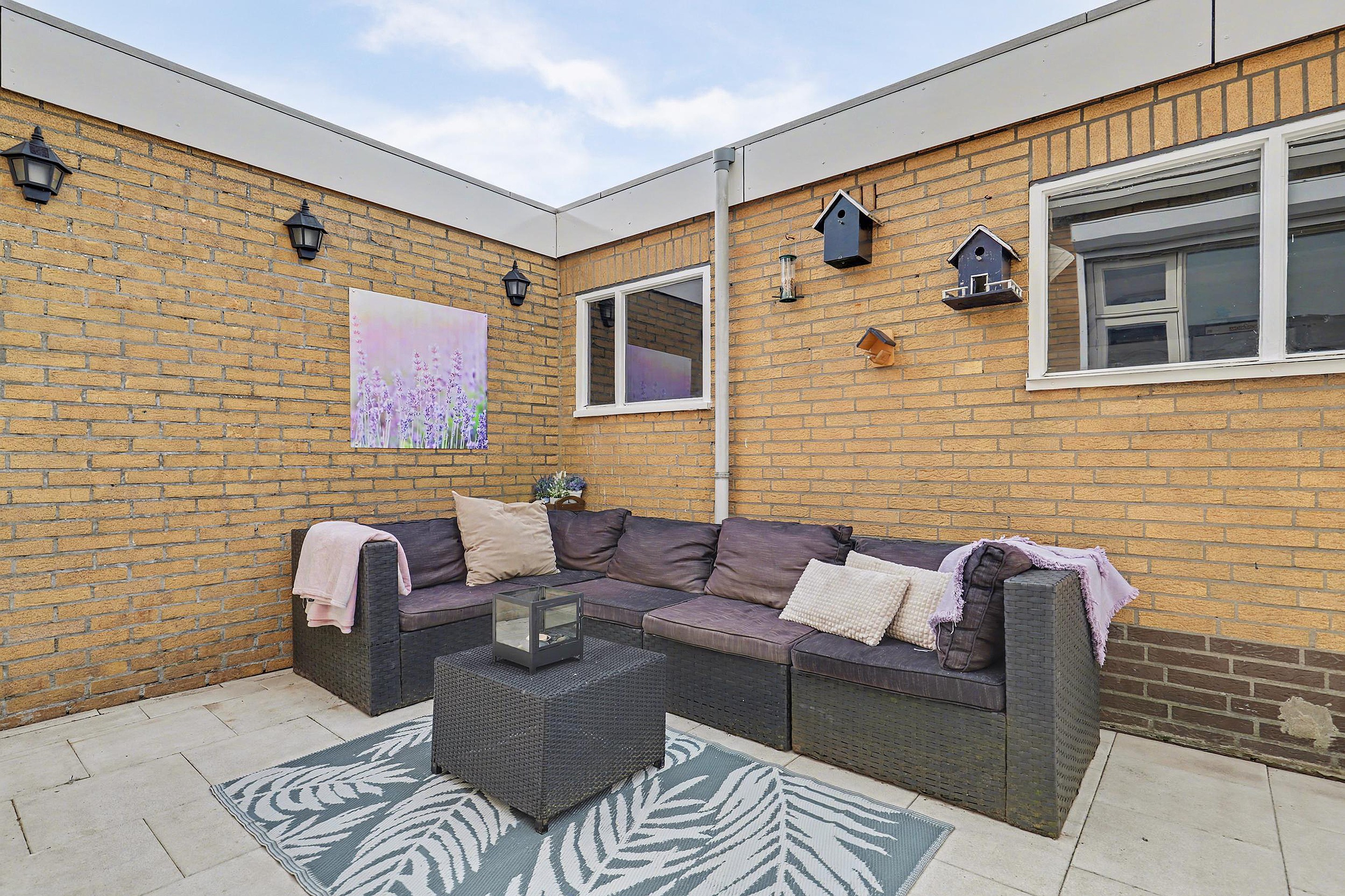 De onderhoudsvriendelijke achtertuin ligt gunstig op het zuiden en is grotendeels bestraat. Hier geniet u van veel privacy en een fijn terras waar u heerlijk kunt ontspannen.