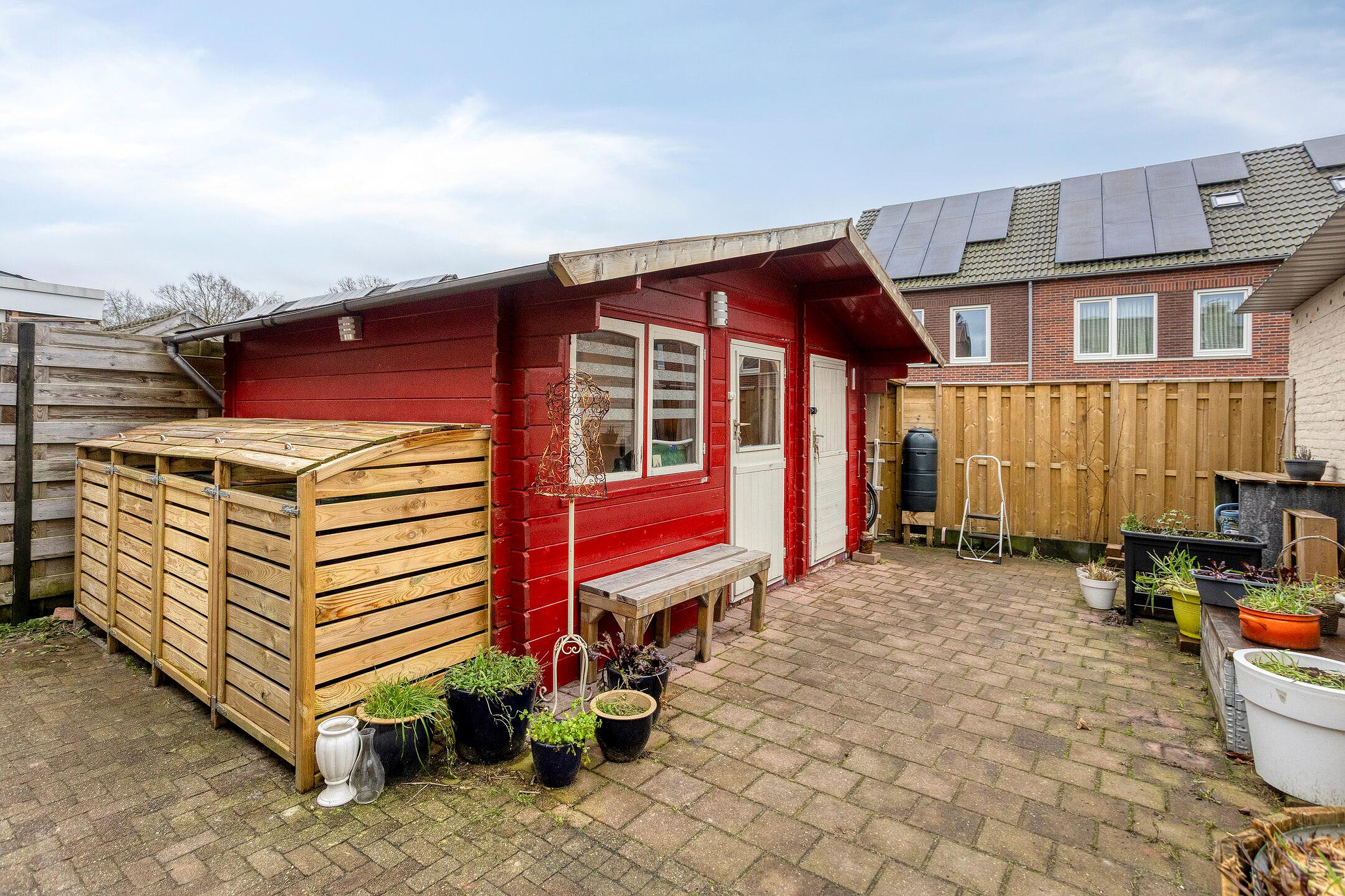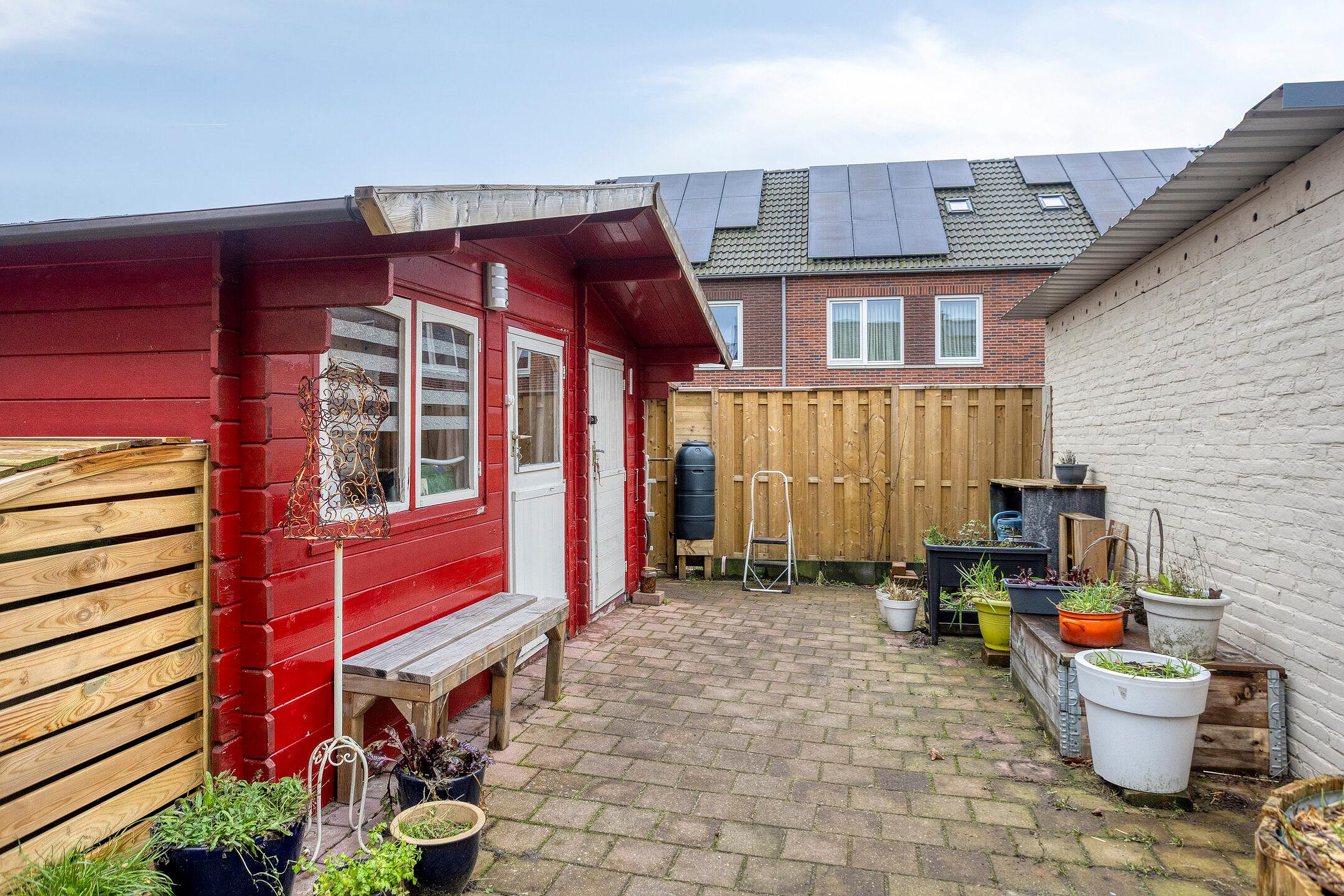 De achtertuin is gelegen op het zuiden en beschikt over een terras, een achterom en dubbele berging met een overkapping.