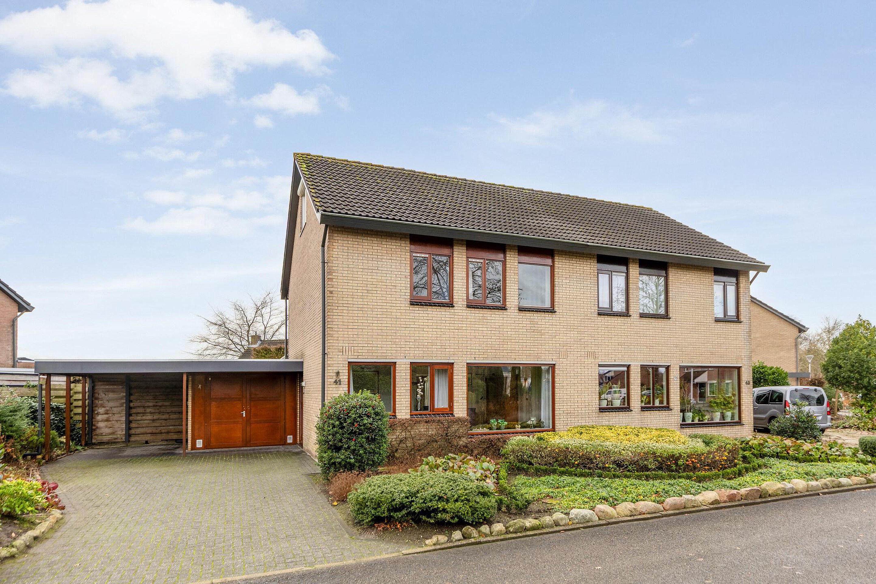 Op een groot perceel gelegen ruime 2-onder-1-kapwoning met garage en een carport. De woning beschikt over een woonkamer, keuken, 4 slaapkamers en een badkamer. De achtertuin, gelegen op het zuidwesten, is voorzien van een terras, een achterom, veel groen en een houten berging. De woning staat op een perceel van 435m2 en heeft een woonoppervlakte van ca.140m2.