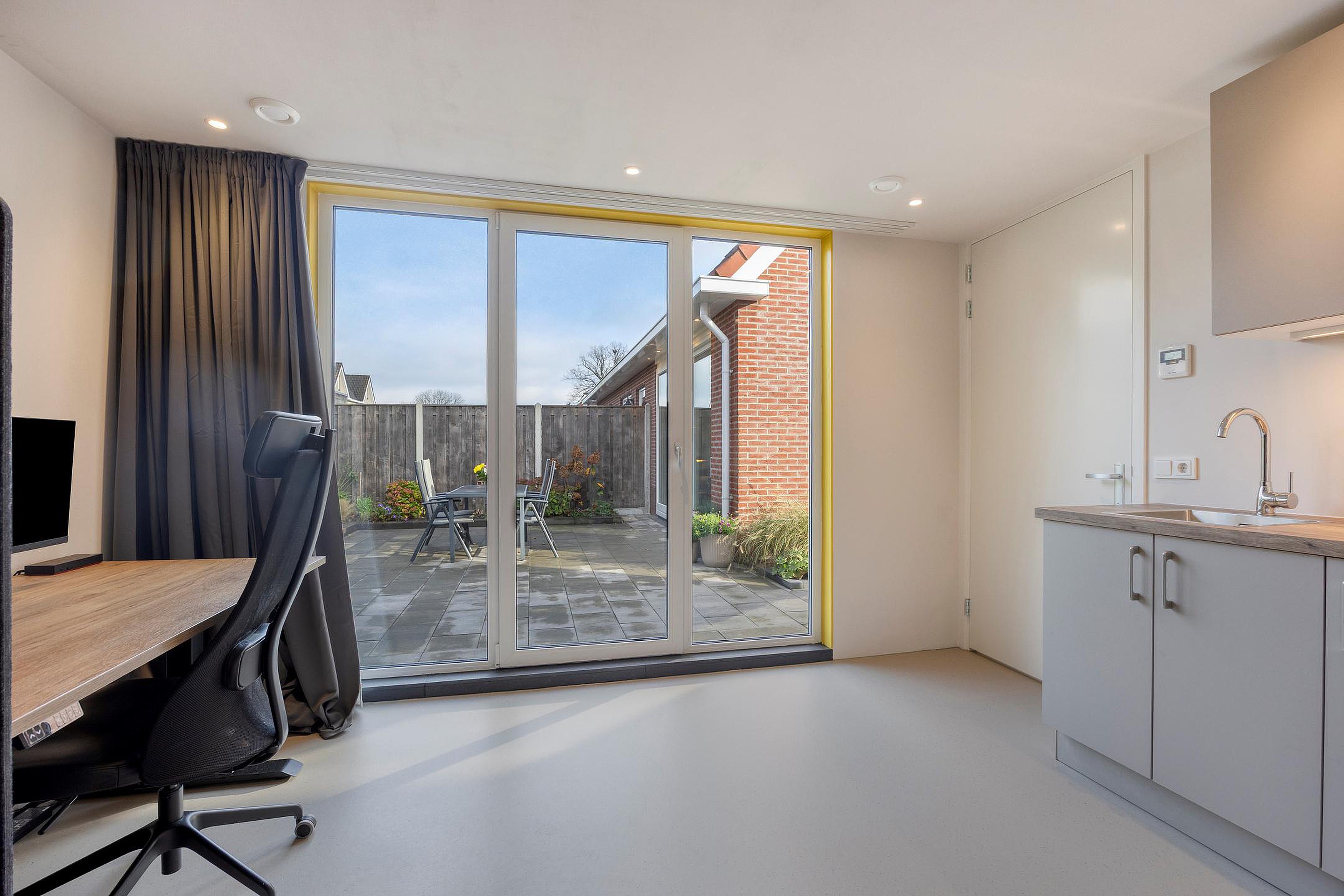 - De woning beschikt over een geïsoleerd tuinhuis met eigen badkamer.