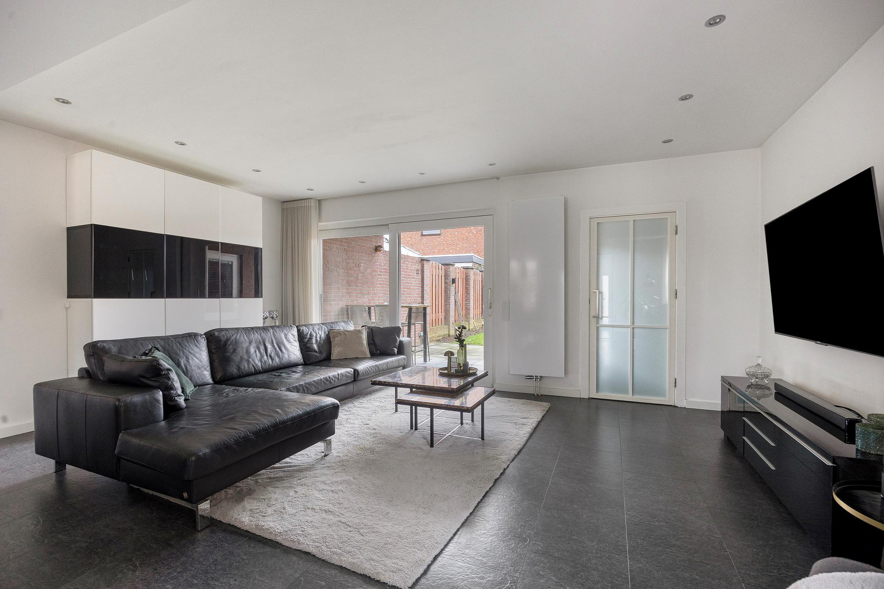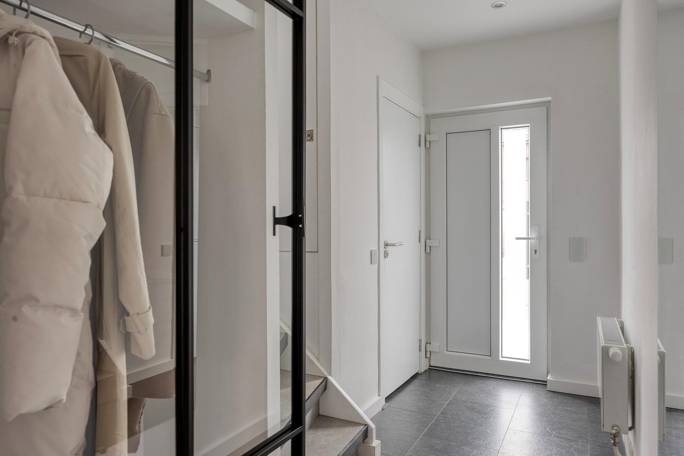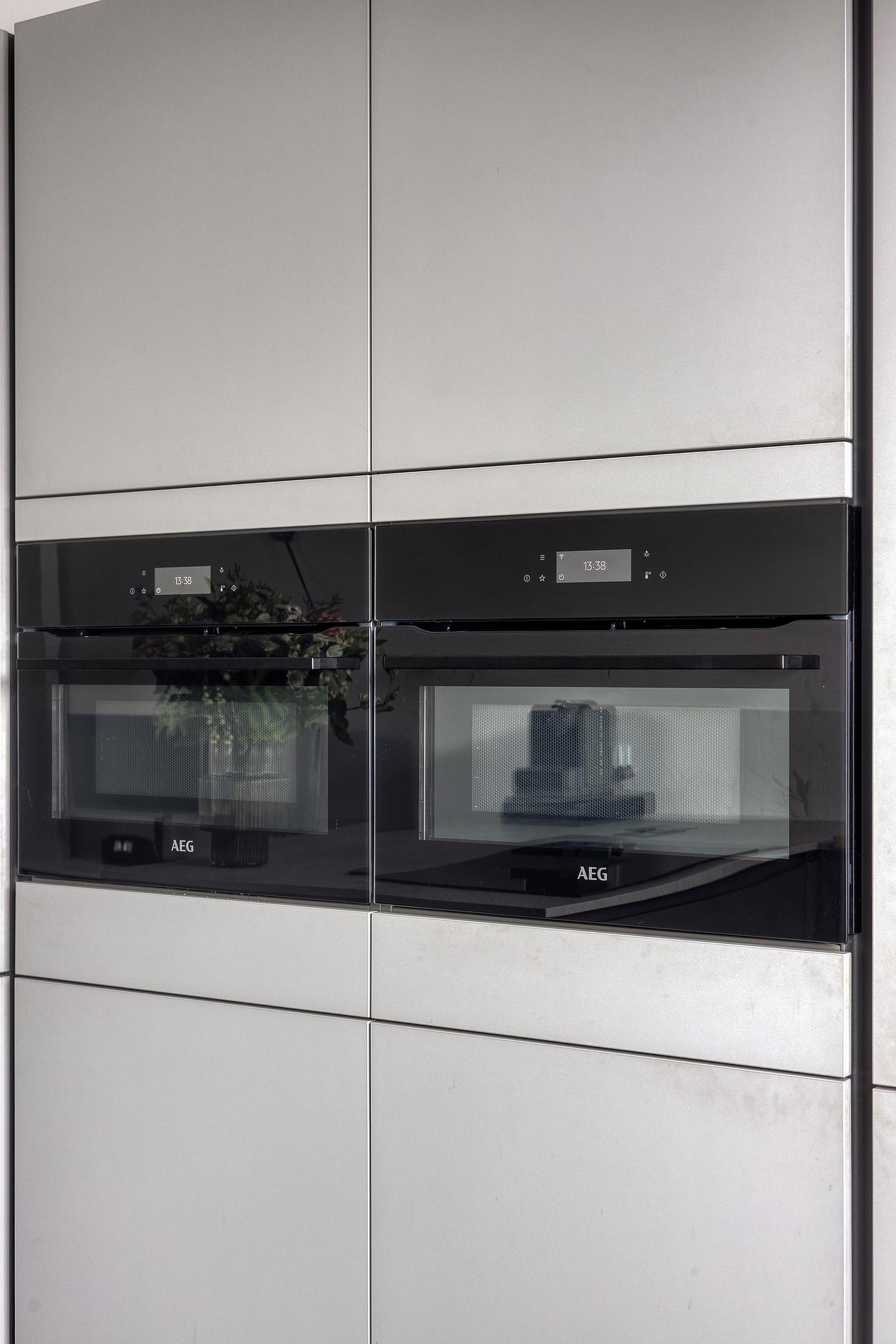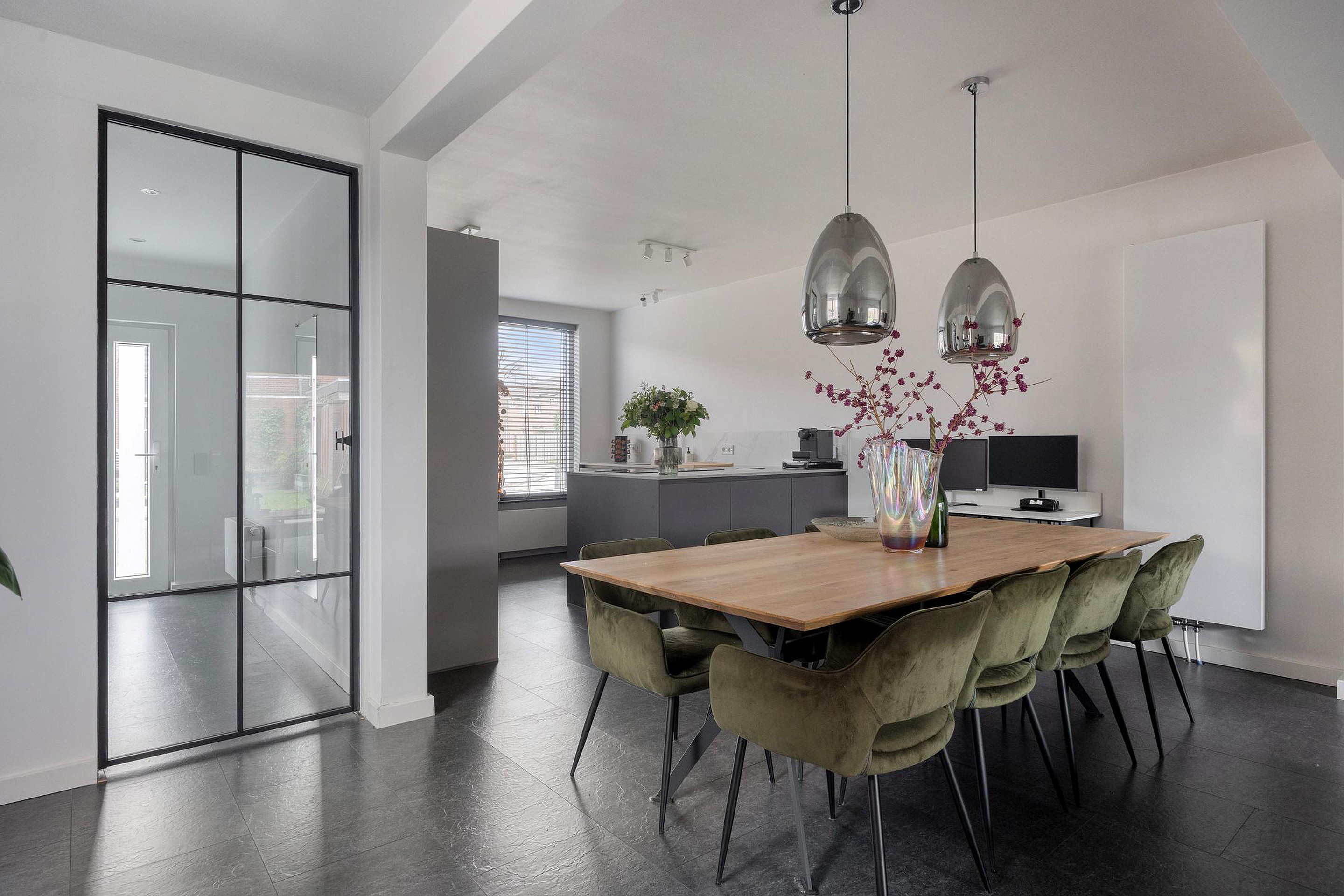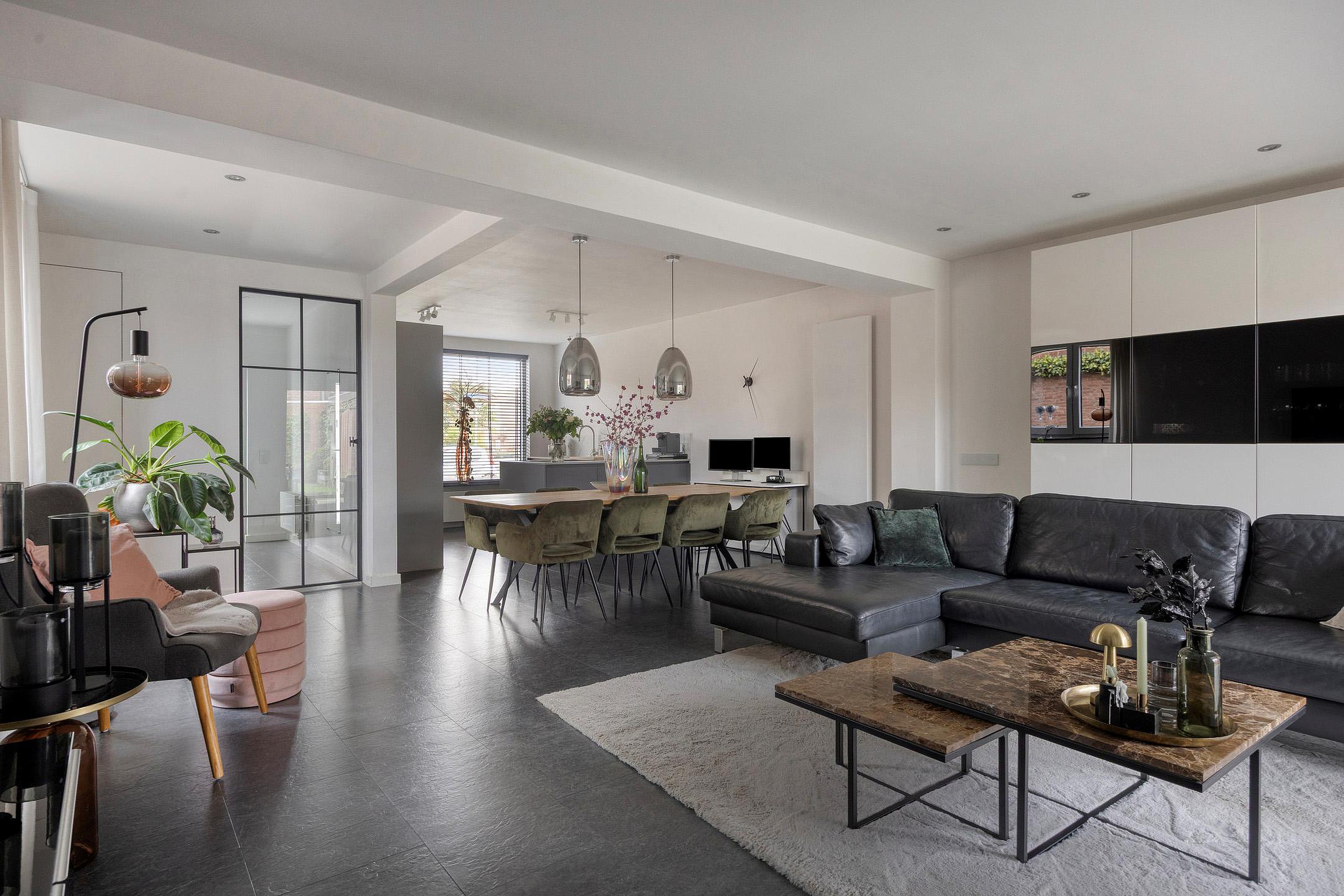 Fraaie hal met pvc vloer, garderobe, meterkast (voorzien van 3-fase), toegang naar de living, trap naar eerste verdieping en het geheel betegelde gastentoilet voorzien van verwarming. Bij binnenkomst in de royale living ,middels de stalen deur, valt direct de lichte en sfeervolle leefruimte op, waar wonen en eten naadloos in elkaar overlopen. De stijlvolle, moderne keuken is uitgevoerd in een praktische wandopstelling met onderkasten en loopt door in een L-vormig keukenblok. Dit zorgt niet alleen voor een ruimtelijk gevoel, maar ook voor een efficiënte en comfortabele werkruimte. Het L-gedeelte is voorzien van een rvs spoelbak, vaatwasser en een 4-pits inductiekookplaat met geïntegreerde afzuiging. Het robuuste betonlook werkblad geeft de keuken een stoere, eigentijdse uitstraling en is tegelijkertijd onderhoudsvriendelijk. Aan de overzijde bevindt zich een royale kastenwand met een hoge koelkast, oven en combimagnetron. Alle inbouwapparatuur is van het hoogwaardige merk AEG, wat garant staat voor kwaliteit, gebruiksgemak en duurzaamheid. Aangrenzend aan de living is de bijkeuken, hier bevinden zich de aansluitingen voor het witgoed en de Remeha Avanta cv-ketel. Zowel vanuit de bijkeuken als de living is de achtertuin bereikbaar.