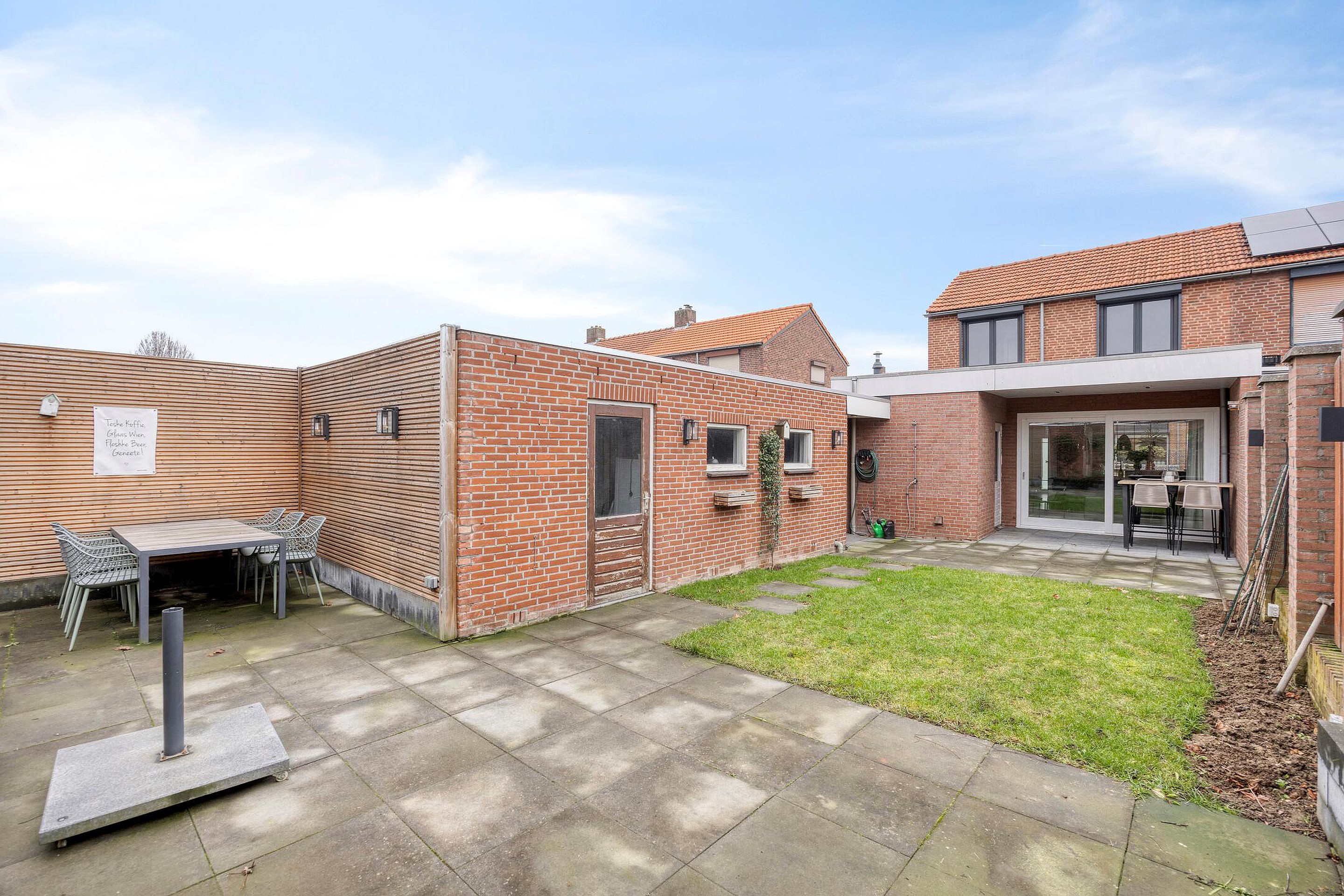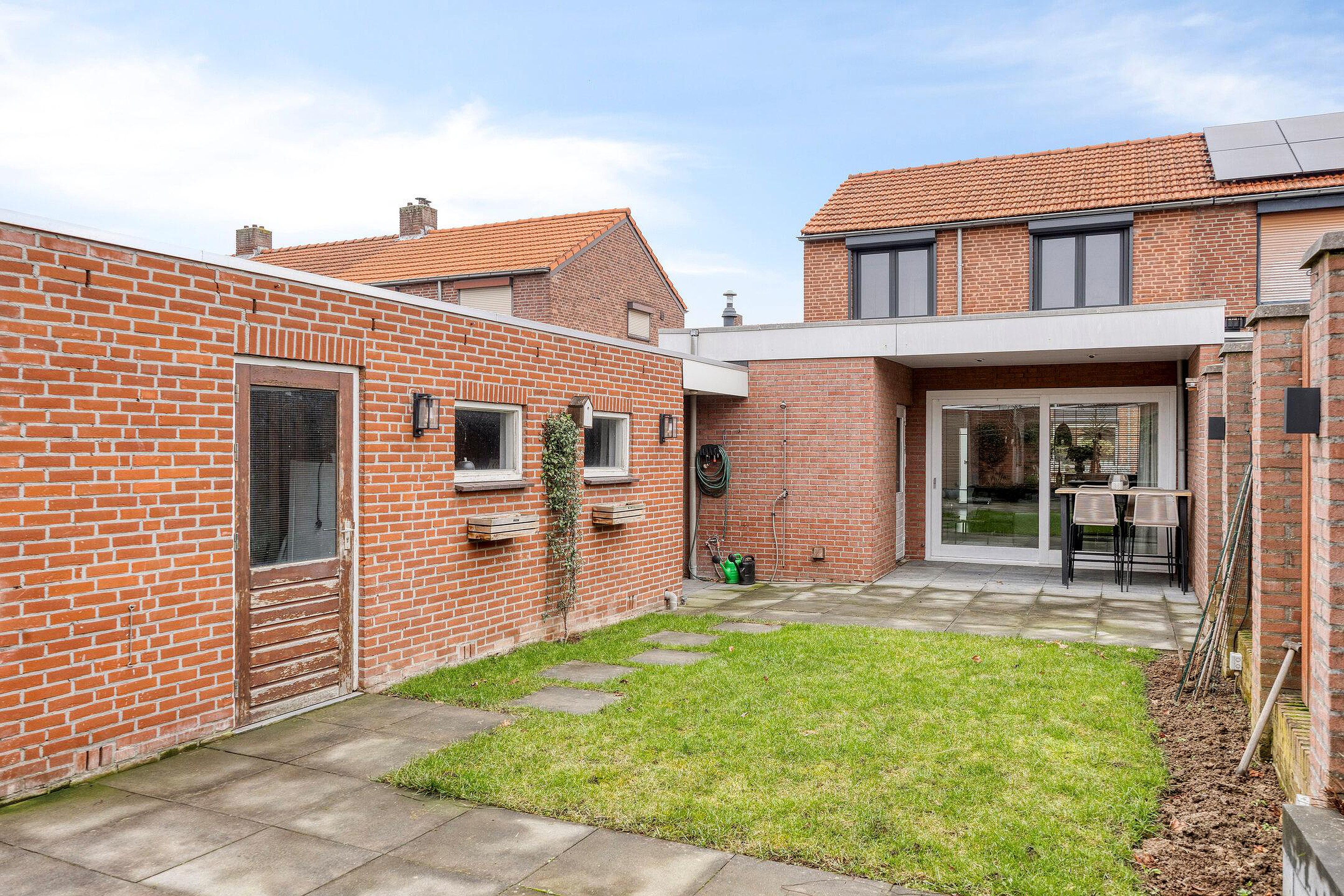 Voortuin, deels betegeld met looppad naar voordeur en borders met siergrassen, bloemen en boompjes. De achtertuin (ca.12 meter diep) is gunstig gelegen op het zuidoosten en is deels betegeld en deels voorzien van een gazon, dit zorgt voor groen en onderhoudsgemak. Dankzij de slimme indeling beschikt de tuin over meerdere zitplekken, zodat je op elk moment van de dag kunt kiezen voor zon of schaduw. Via een praktische doorgang naar de oprit en de achterliggende garage is de tuin ook uitstekend bereikbaar.