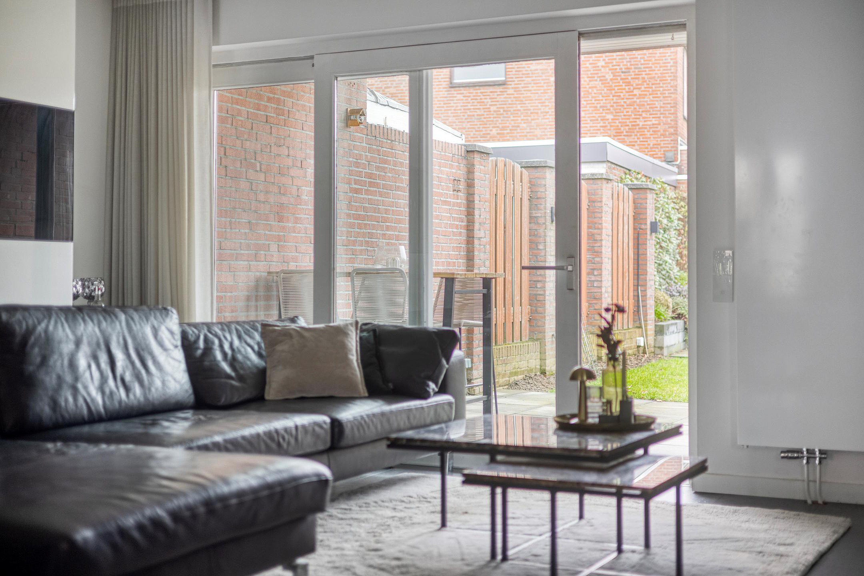 - Grotendeels kunststofkozijnen met HR++ beglazing, Meranti houten schuifpui met dubbele beglazing;