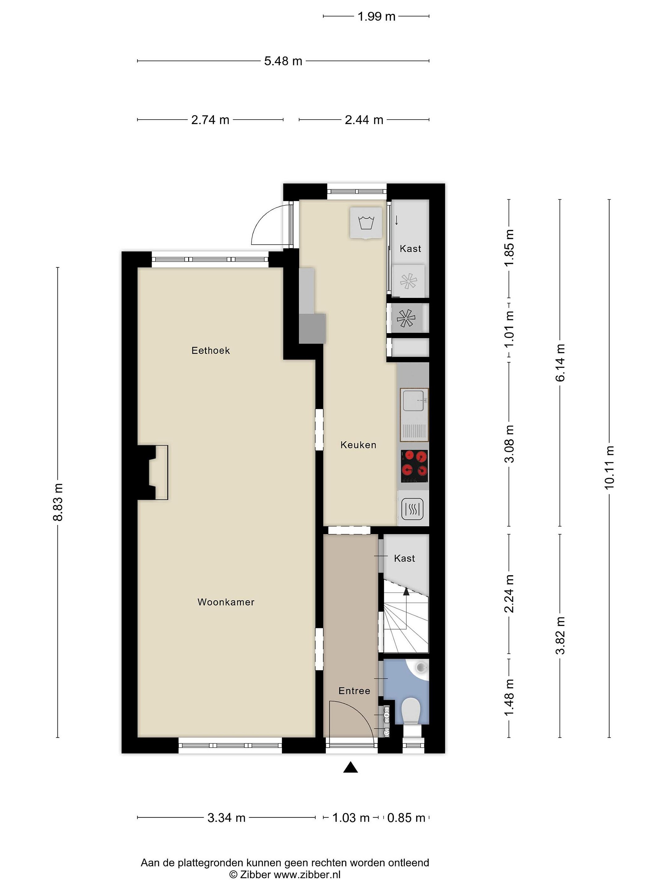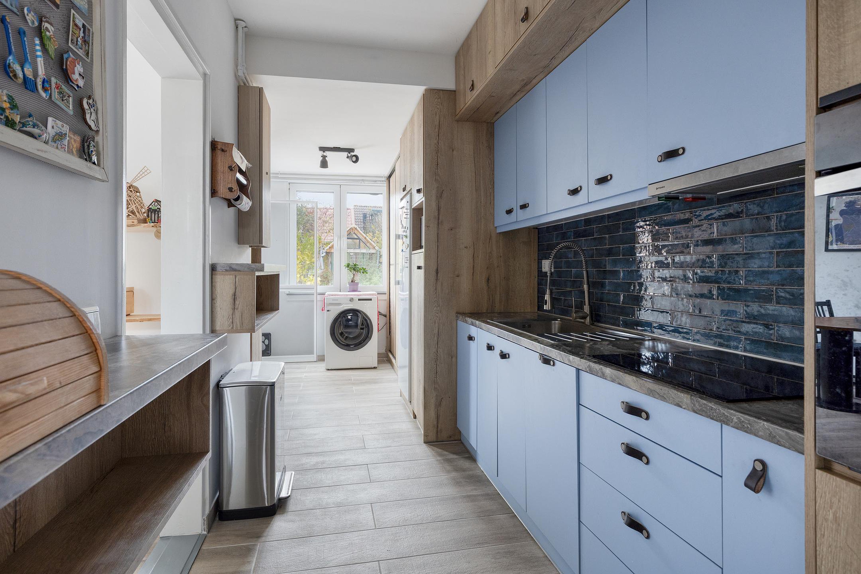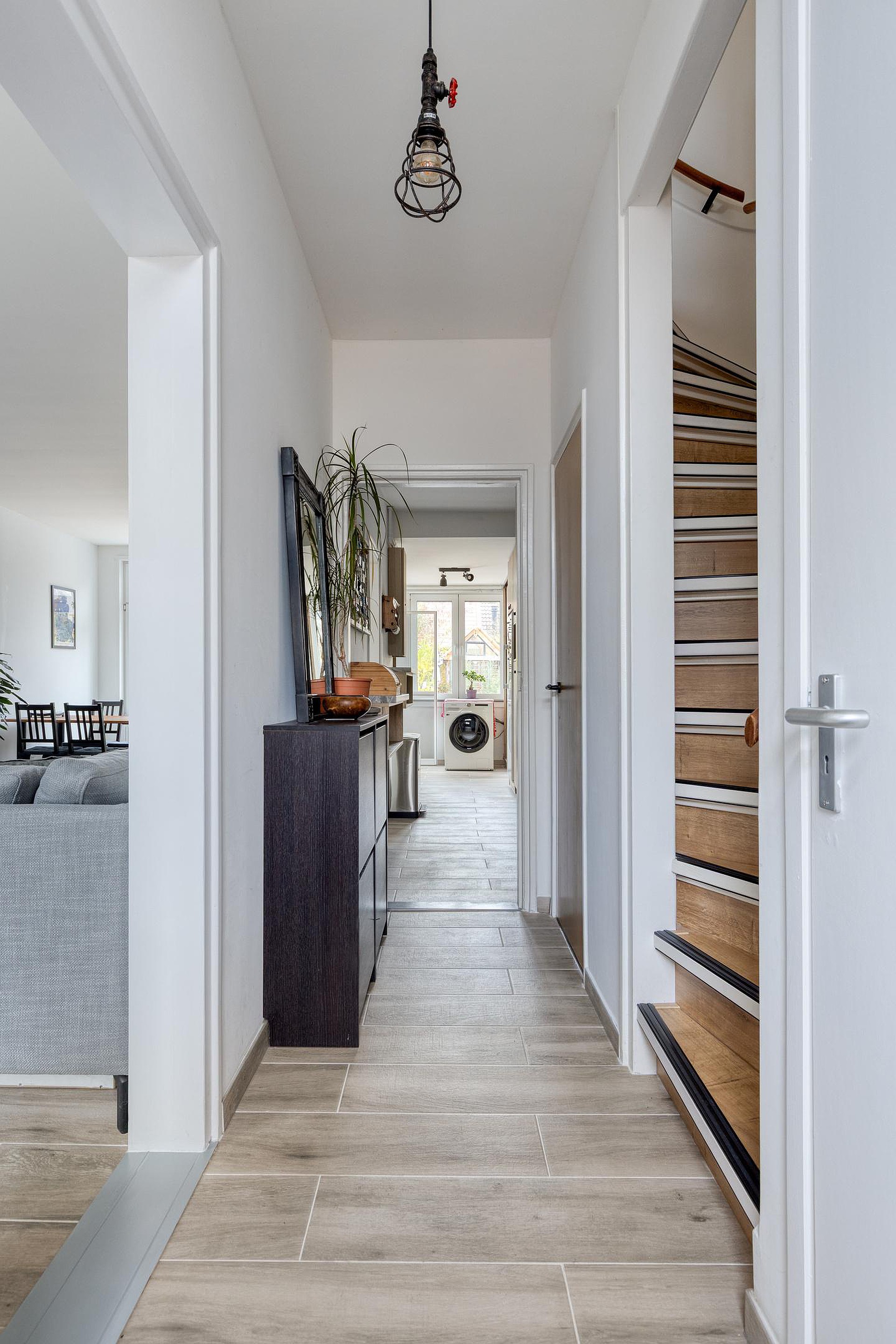 Je komt binnen in de hal met toilet en trapopgang. De woonkamer is licht en ruim opgezet, met voldoende plek voor een fijne zithoek en een eettafel. De keuken kijkt uit over de tuinen heeft ruimte voor witgoed en extra opslag; ideaal in het dagelijks gebruik.