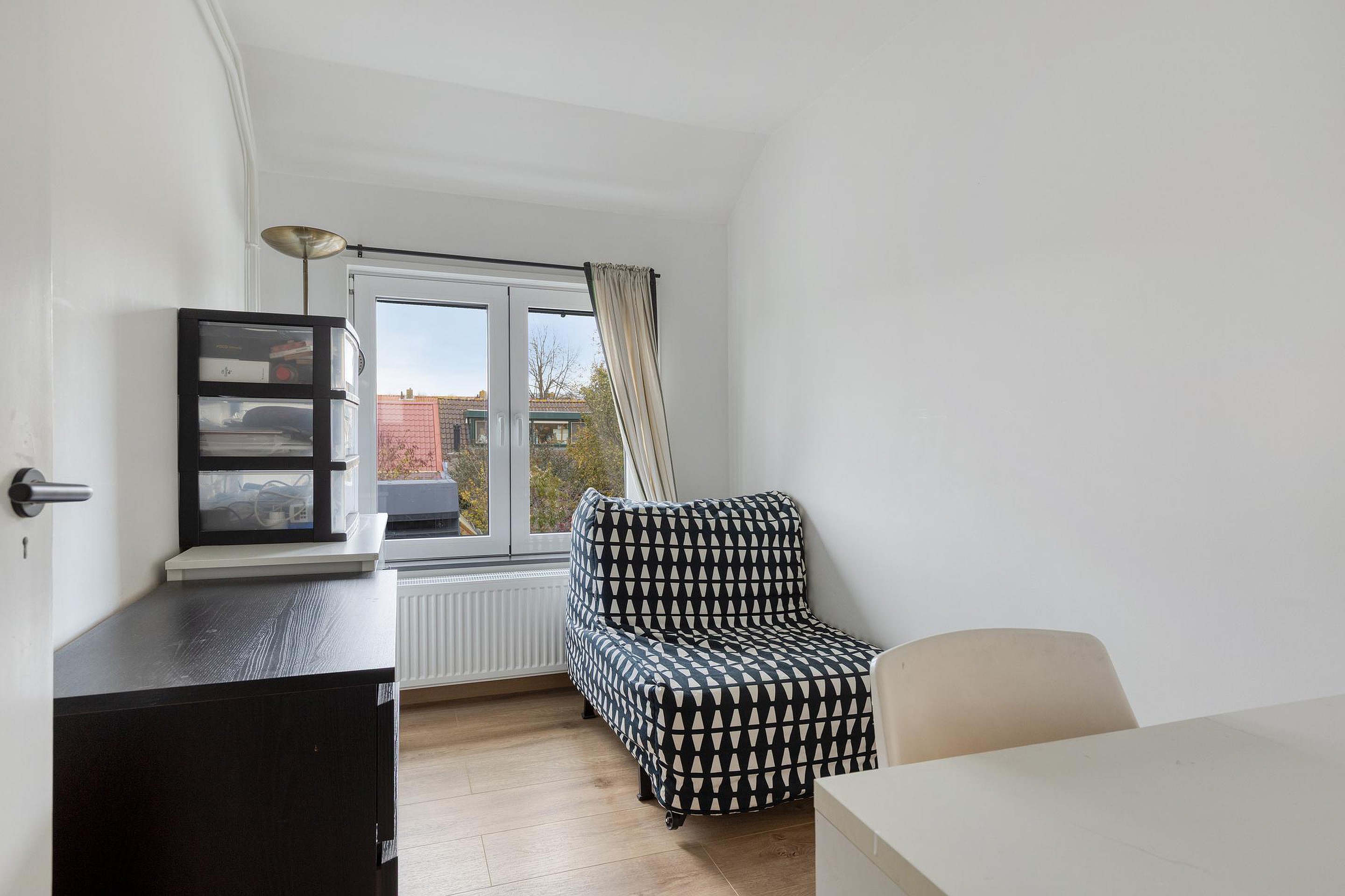 Op de eerste verdieping bevinden zich drie slaapkamers, allen met een prettige lichtinval en nette afwerking. De badkamer is recent vernieuwd en uitgevoerd met moderne materialen, een ruime inloopdouche, een stijlvol wastafelmeubel en een tweede toilet. Een fijne, luxe ruimte om je dag te beginnen of ontspannen af te sluiten.