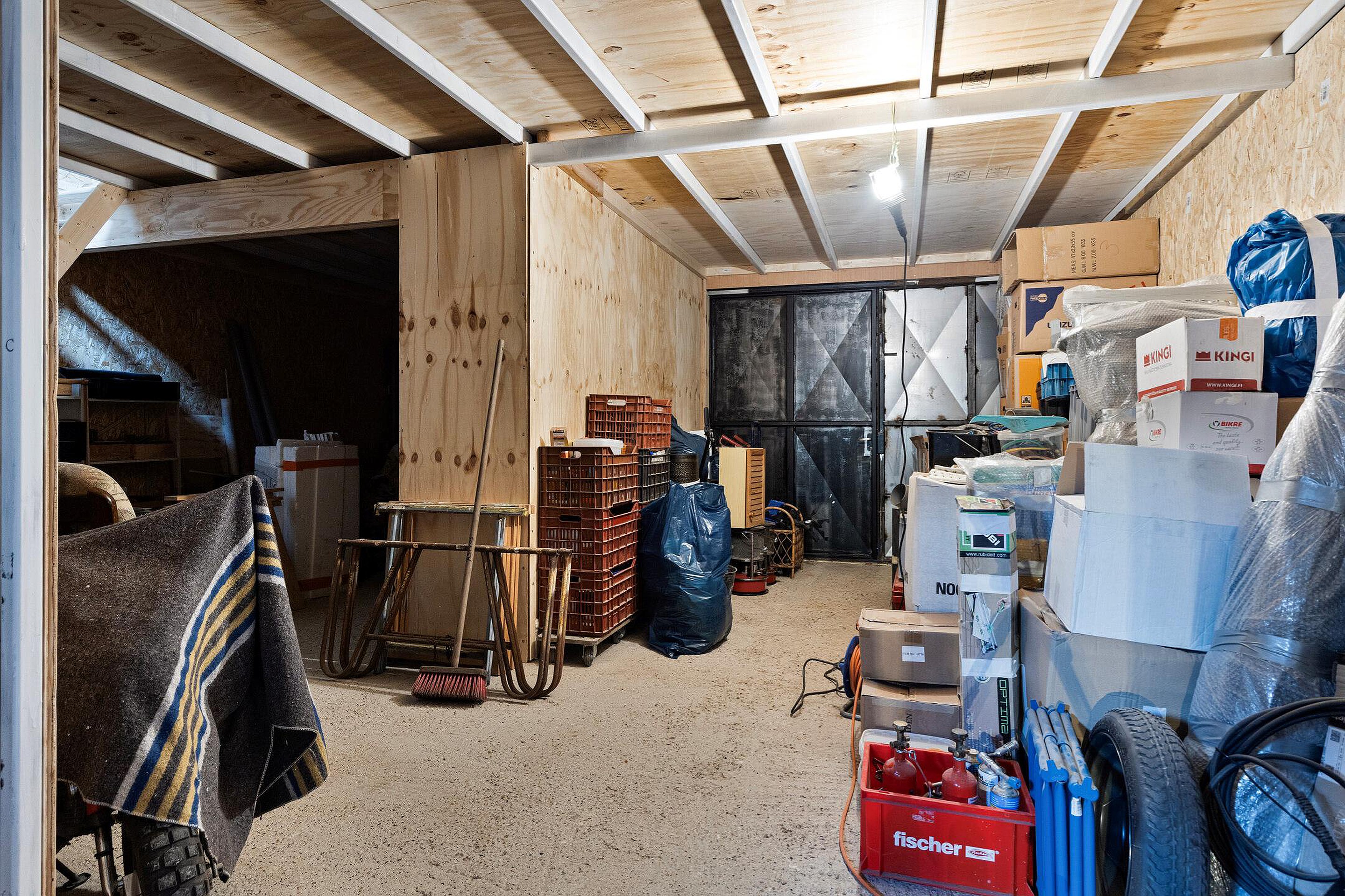 De grote schuur/garage achterop het perceel wordt casco geleverd en de mogelijkheden zijn eindig. De begane grond is perfect voor opslag, hobby’s of als werkruimte. Schuur heeft een ruime verdieping met dakkapel. Daarnaast kun je meerdere auto’s op eigen terrein parkeren binnen en buiten. Een luxe die je niet vaak ziet in een woonwijk.