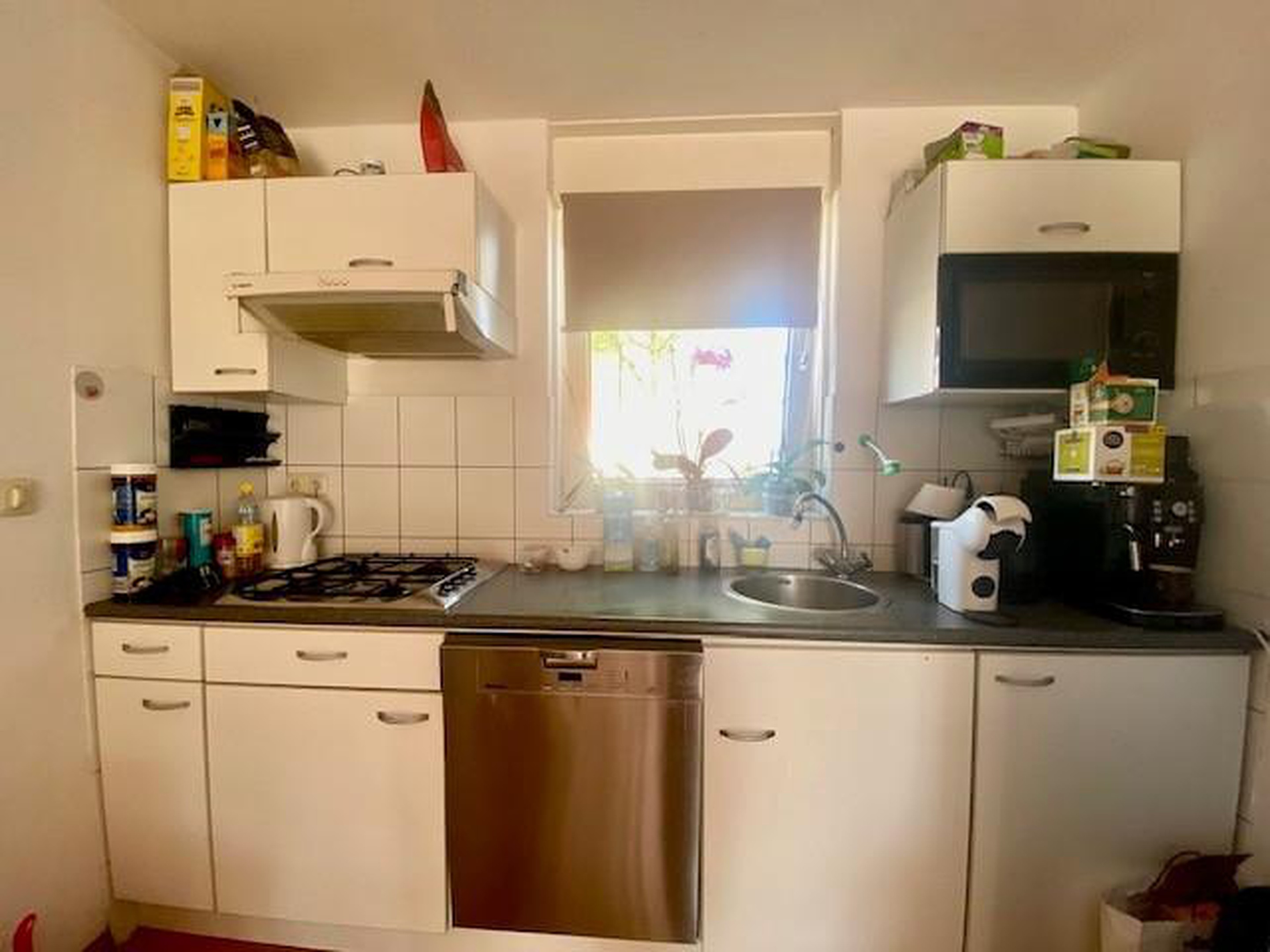 Keuken met o.a. vaatwasser, koelkast, magnetron en kookplaat