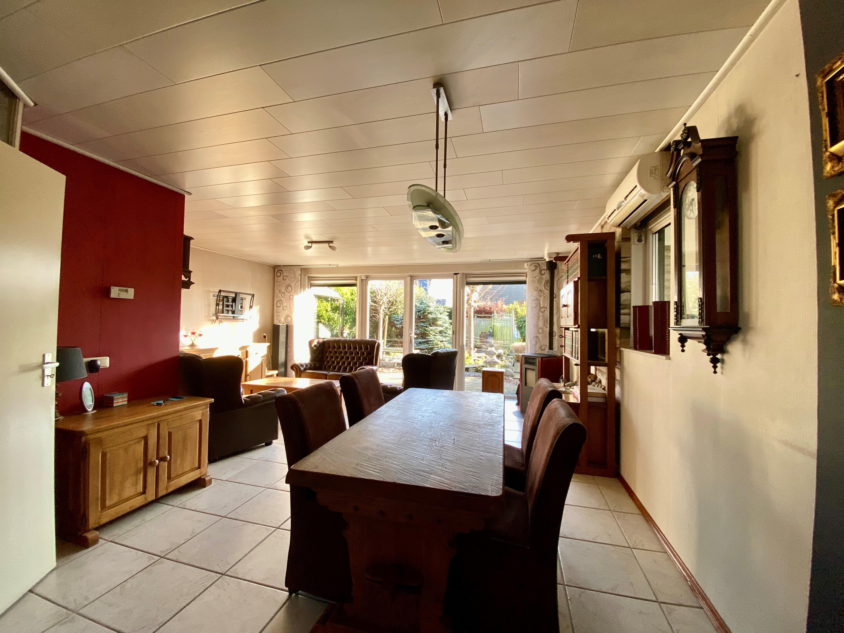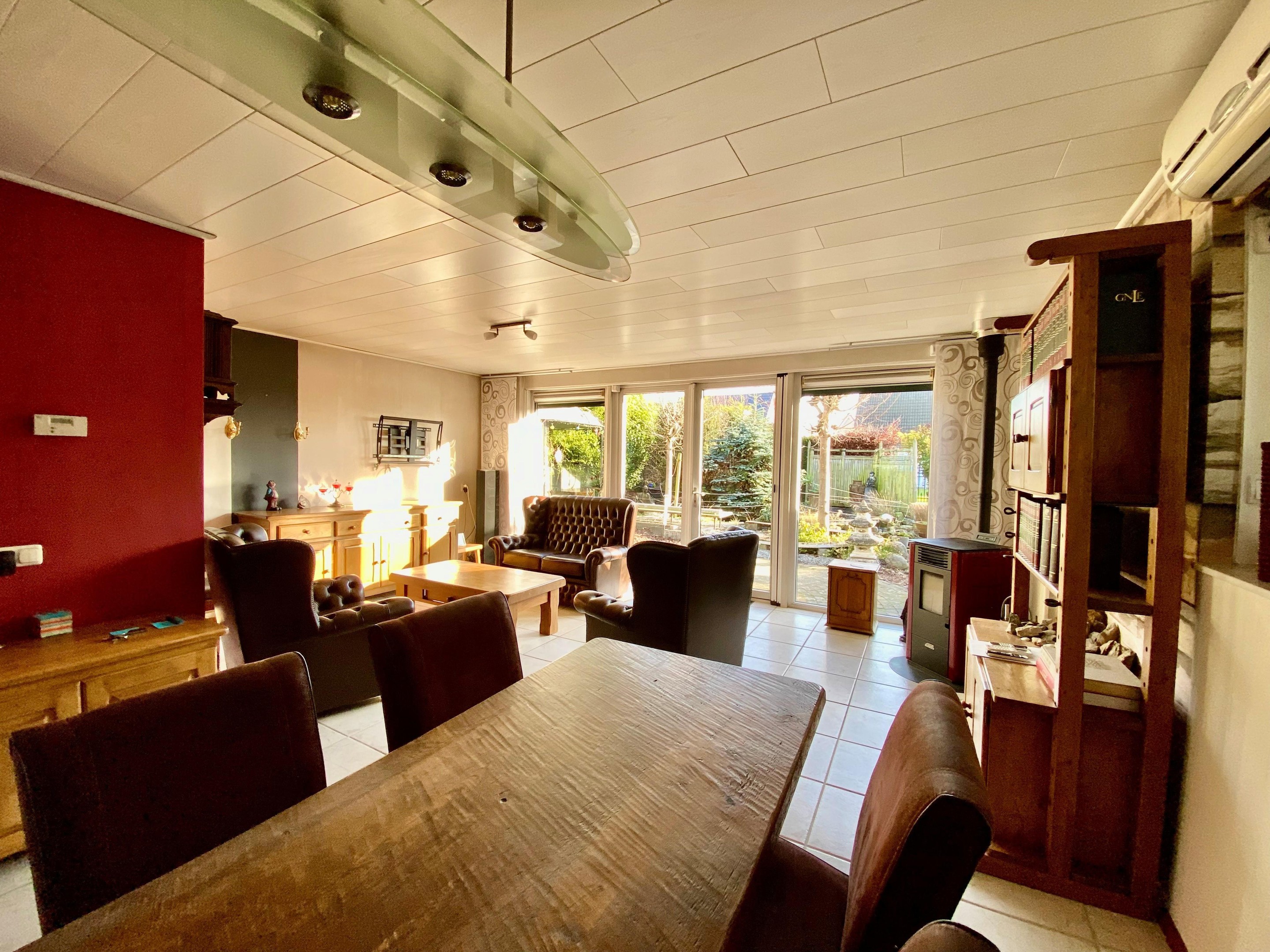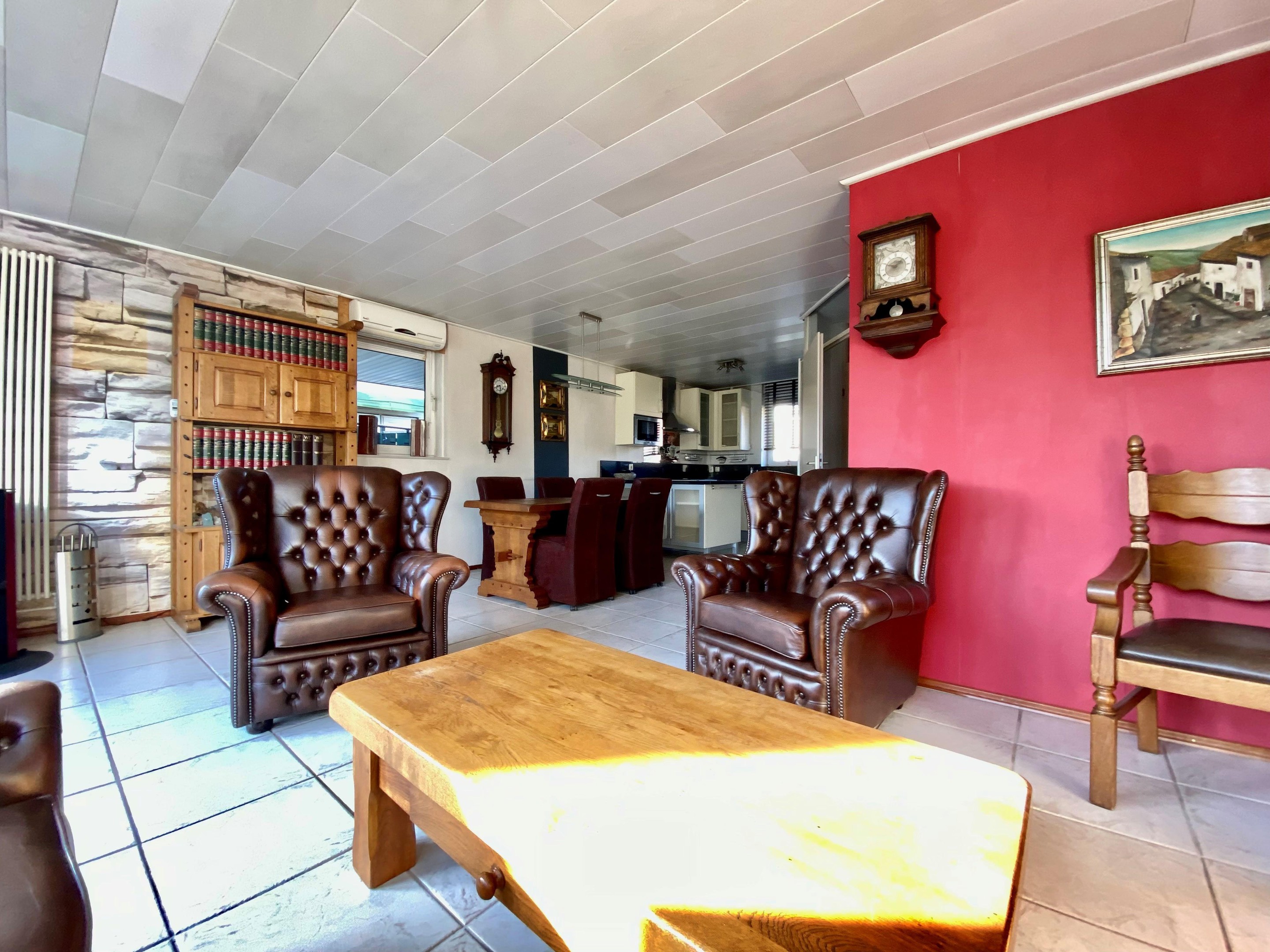 De ruime L-vormige woonkamer beschikt over een fraaie plavuizenvloer en geniet van veel natuurlijke lichtinval. Via de openslaande tuindeuren heeft u direct toegang tot het terras en de tuin.
