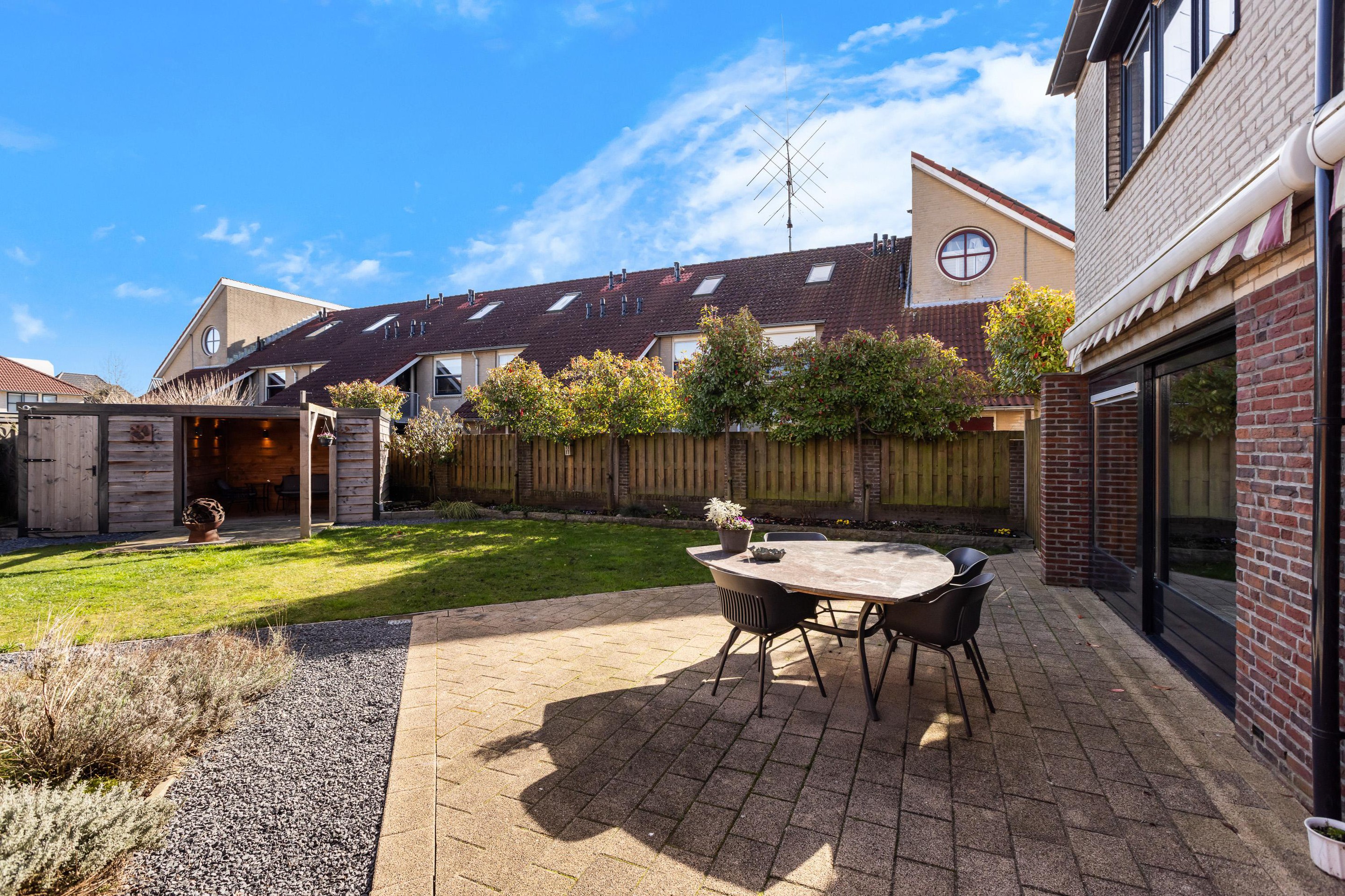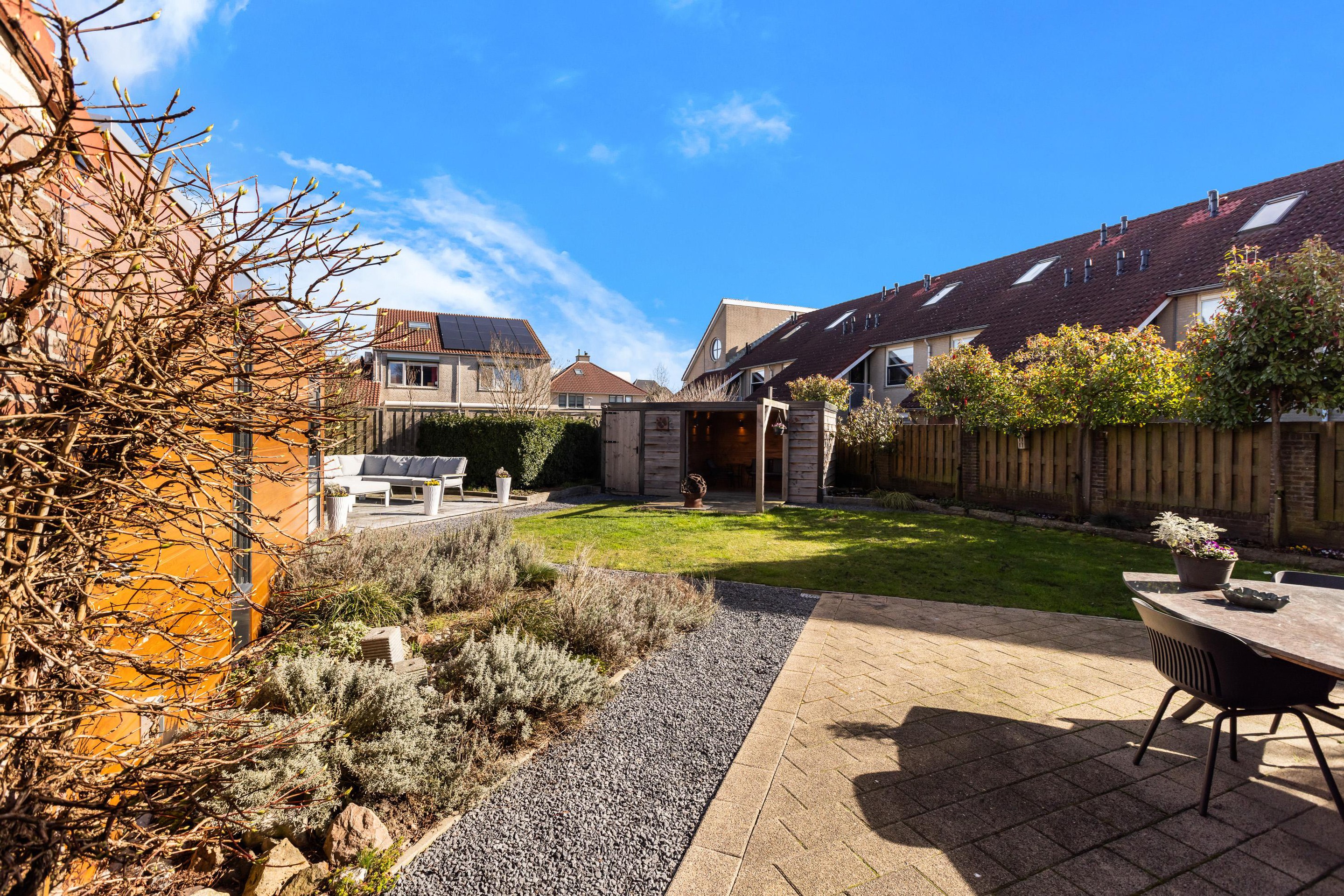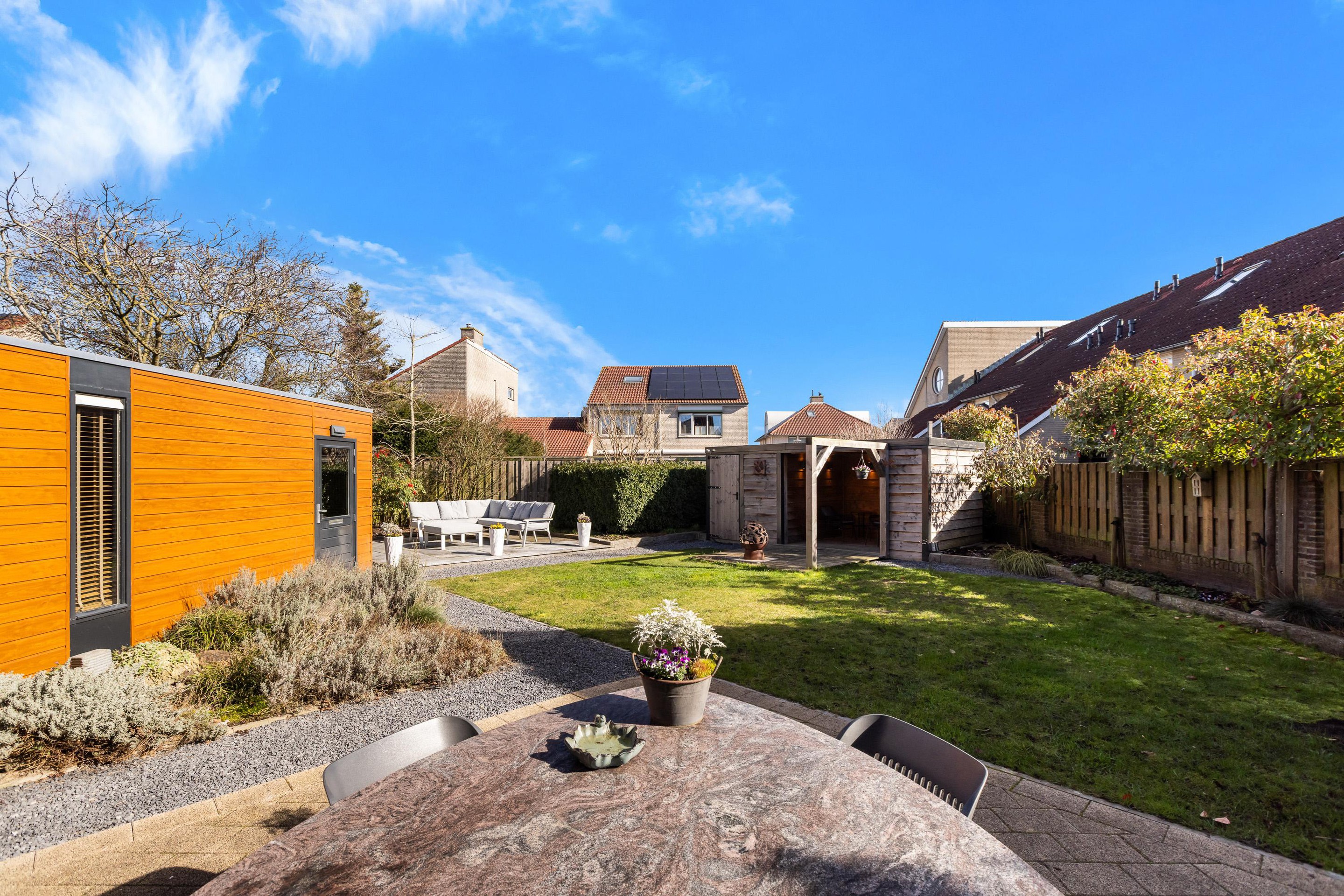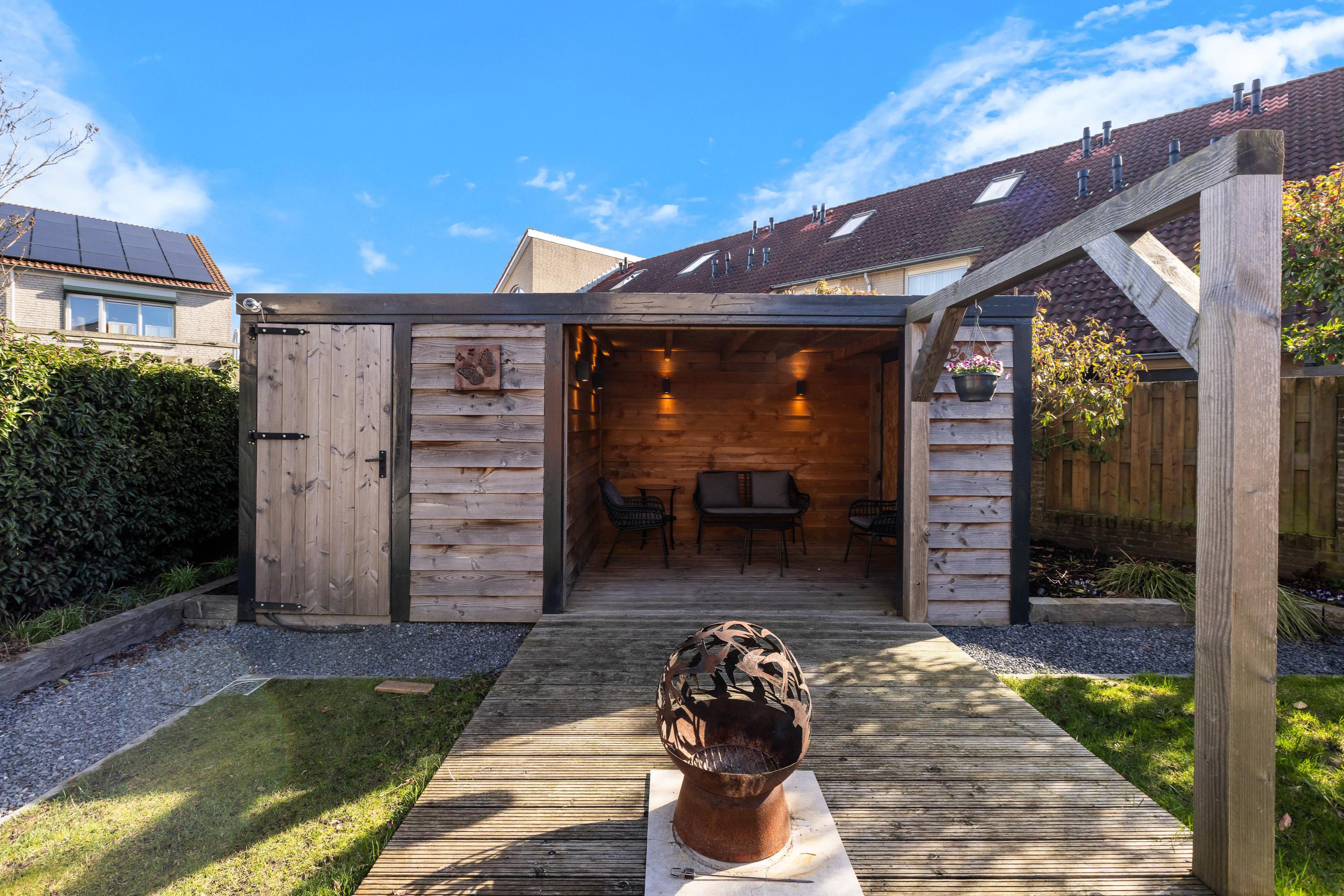 Daarnaast is er een sfeervolle overkapping, waardoor je al vroeg in het voorjaar en tot laat in het najaar comfortabel buiten kunt zitten. Achterin de tuin bevindt zich een houten fietsenberging en op eigen terrein is parkeergelegenheid aanwezig.