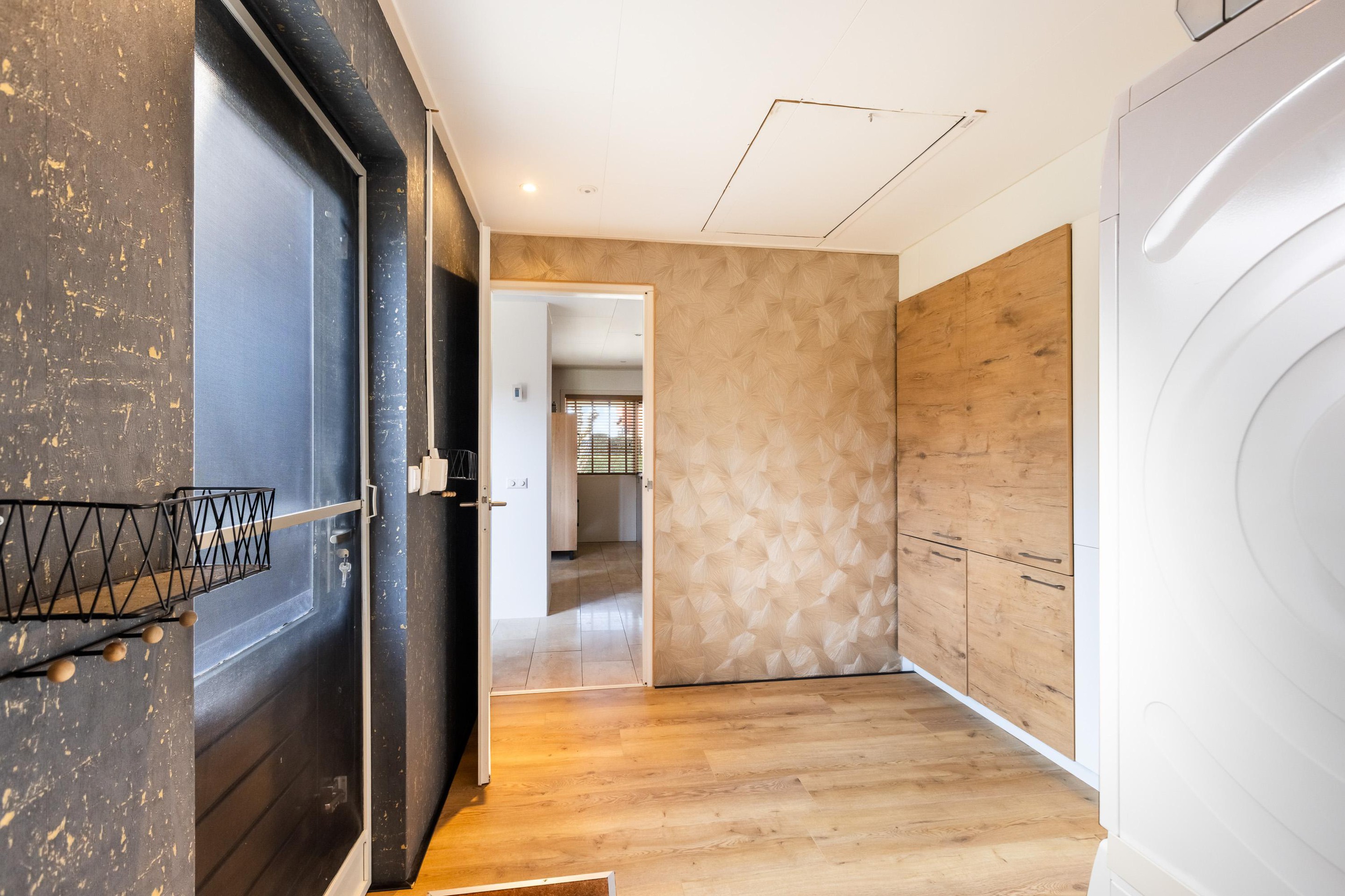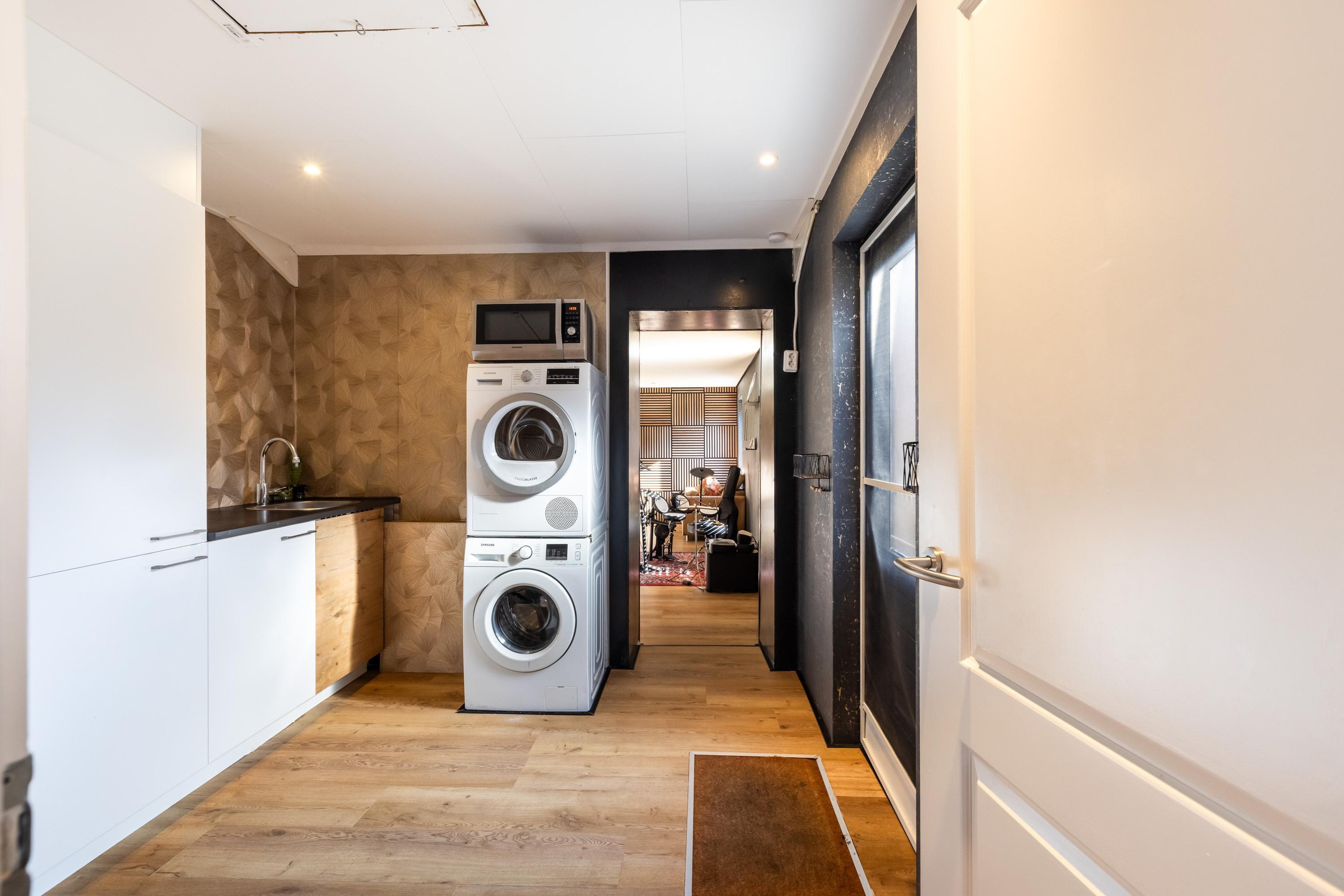 Via de entree kom je in de hal met meterkast, toiletruimte en de trapopgang naar de eerste verdieping. De voormalige garage is omgebouwd tot een praktische bijkeuken, voorzien van aansluitingen voor wasapparatuur en volop bergruimte. Dankzij de royale lengte van circa 8,40 meter is deze ruimte multifunctioneel te gebruiken, bijvoorbeeld als werkruimte, hobbykamer of zelfs als slaapkamer op de begane grond.
