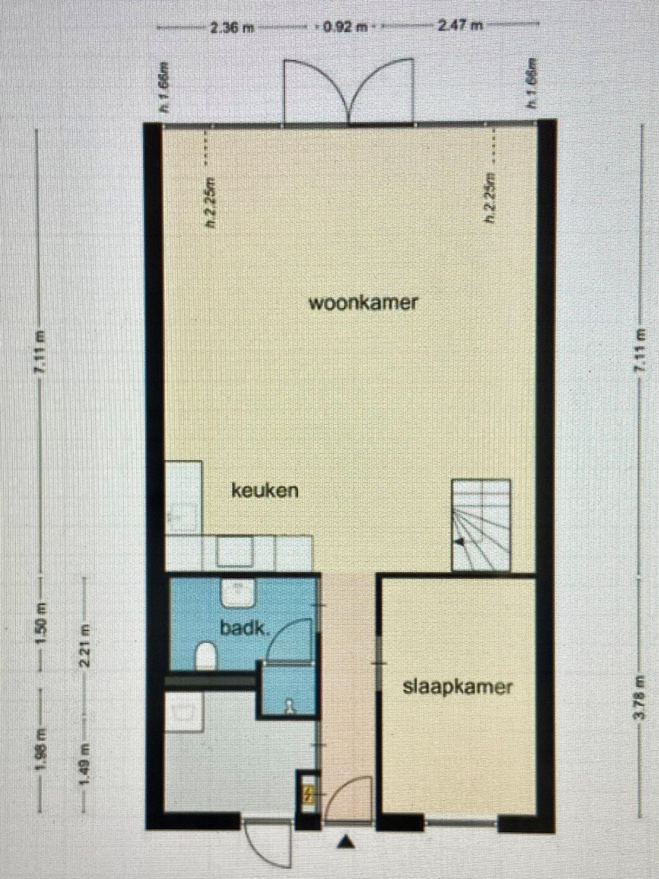 - Slaapkamer (ca. 3,80 m x 2,45 m) en badkamer op de begane grond – ideaal voor gelijkvloers gebruik