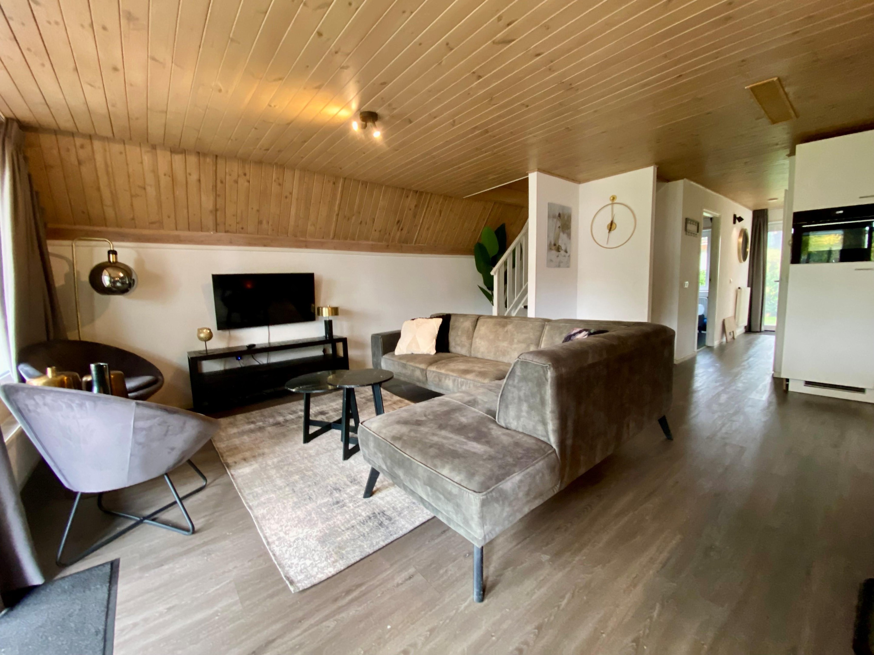 - Ruime woonkamer (ca. 6,00 m x 5,90 m) met veel lichtinval en een lichte laminaatvloer