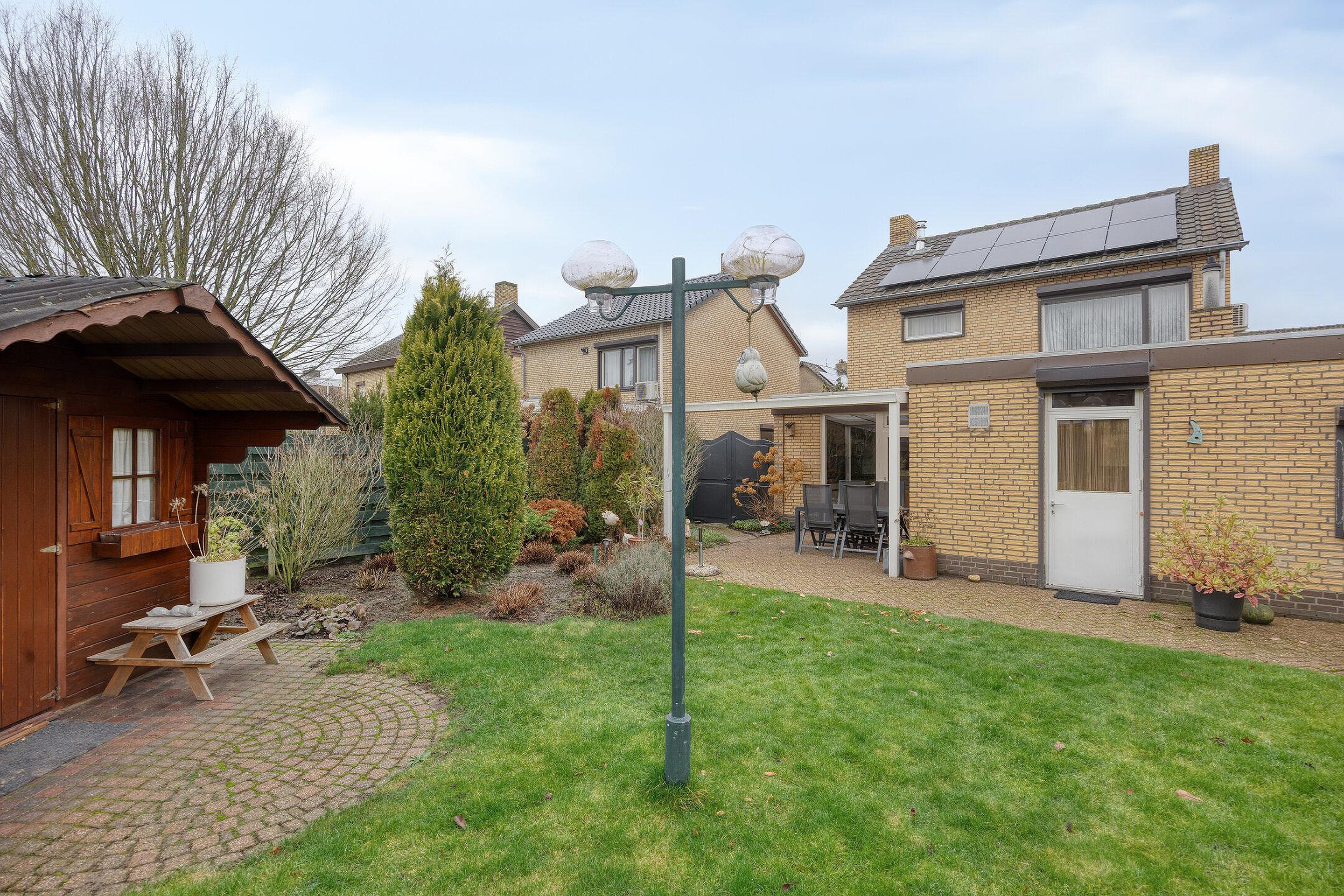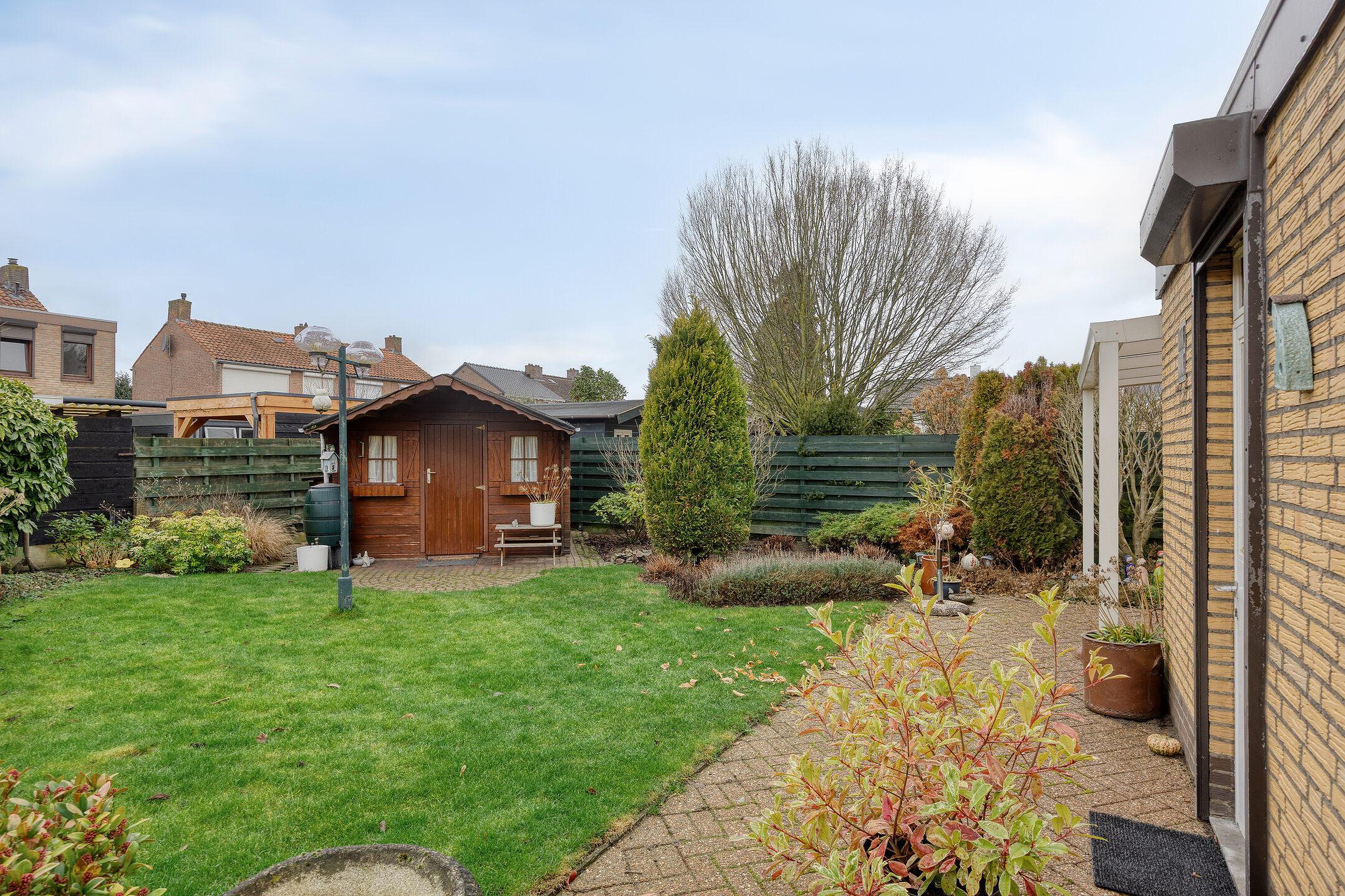 De woning wordt omringd door een fraai en verzorgd aangelegde voor- en achtertuin met gazon en diverse beplanting.