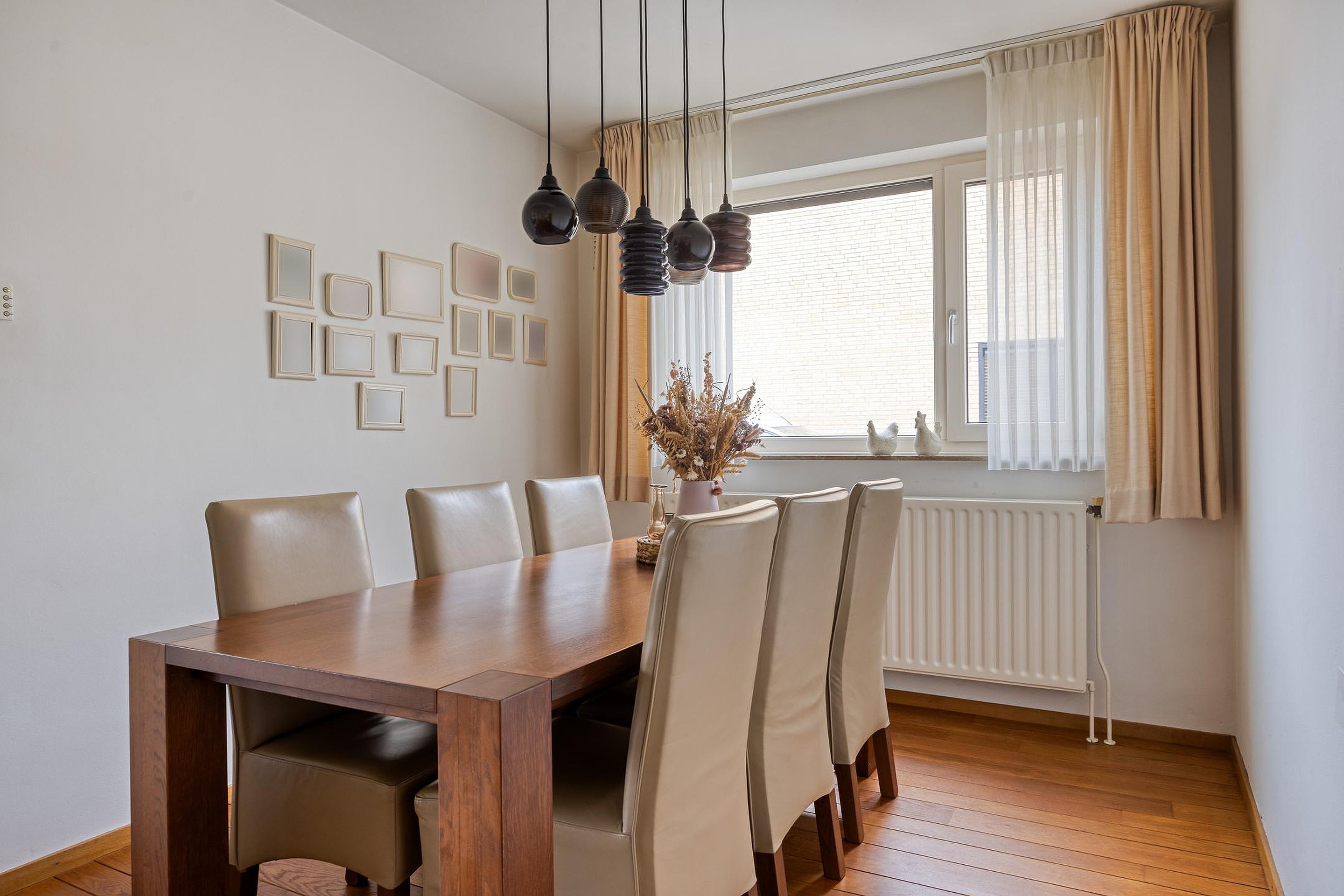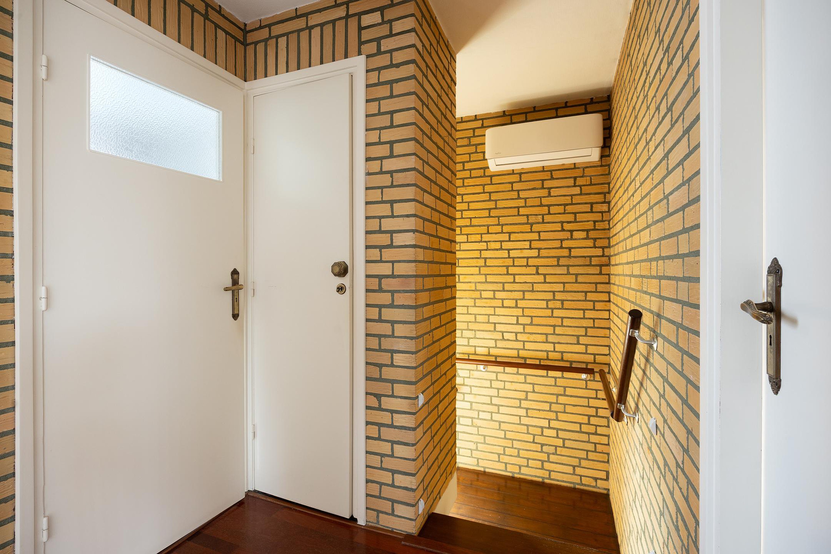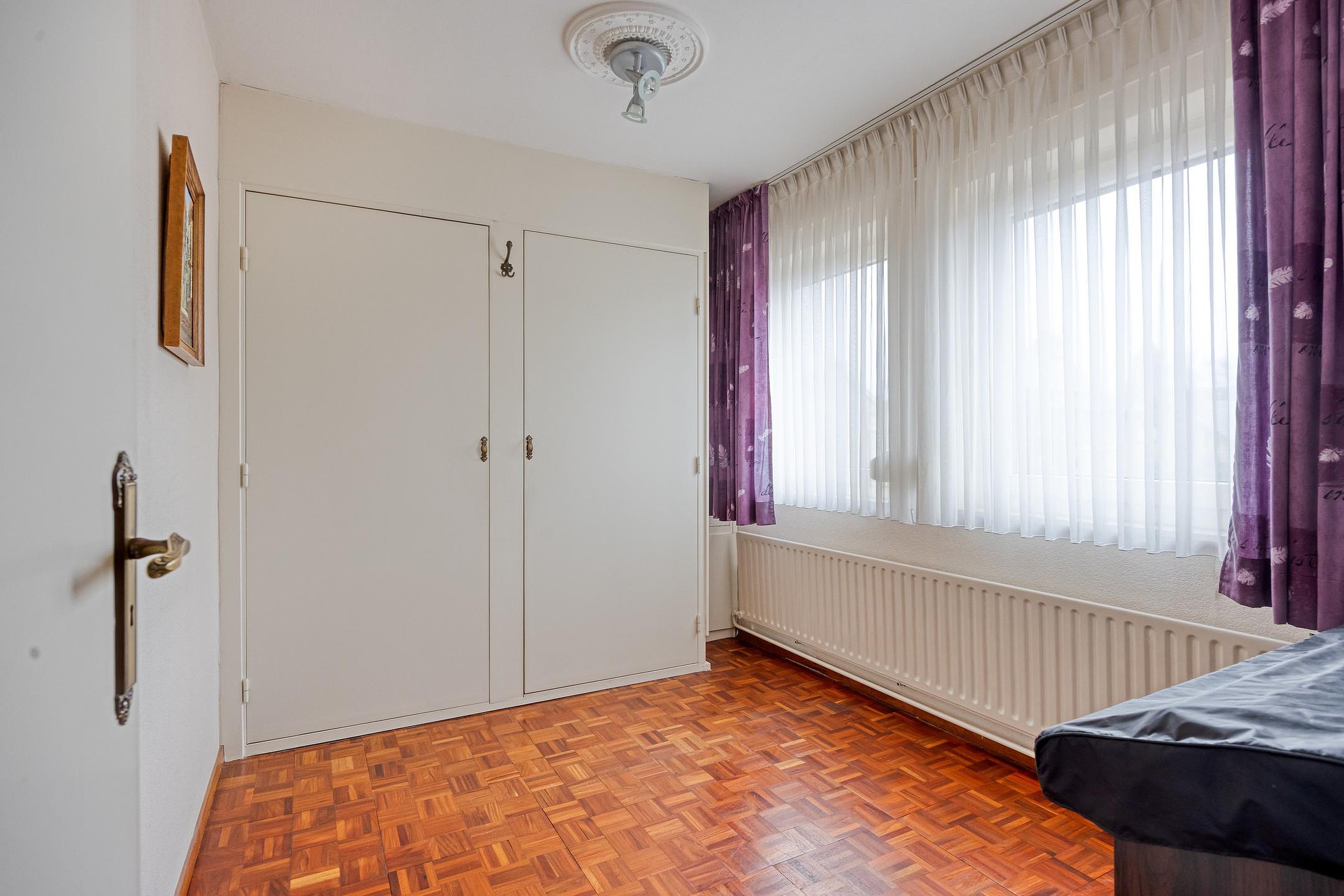 De overloop met parketvloer geeft toegang tot drie verzorgde en lichte slaapkamers, afgewerkt met parket- of laminaatvloeren. Twee slaapkamers beschikken over handige inbouwkasten.