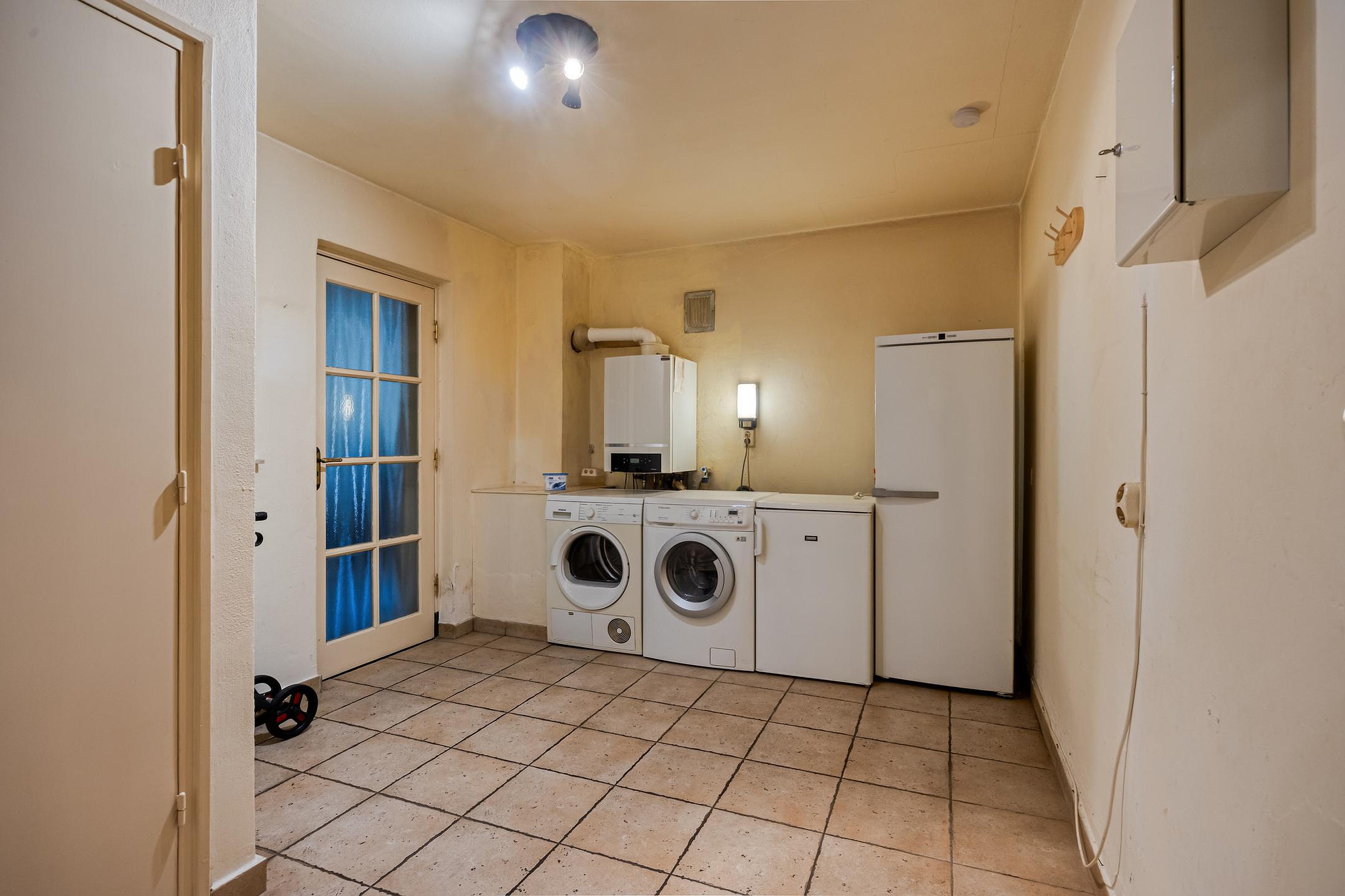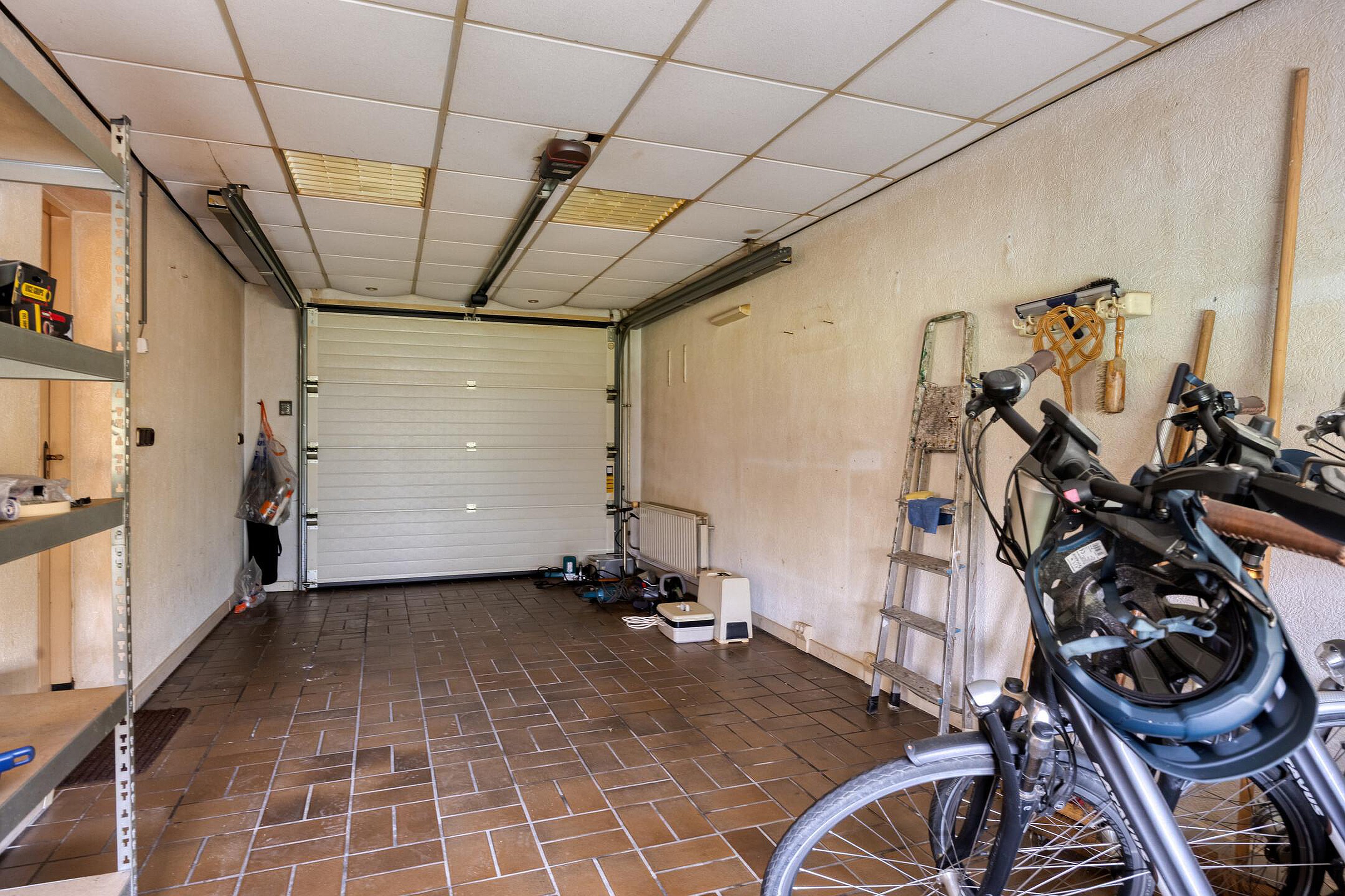 Via de bijkeuken met witgoedaansluitingen bereikt u de inpandige garage met elektrische poort. De garage staat bovendien in verbinding met een praktische berging.