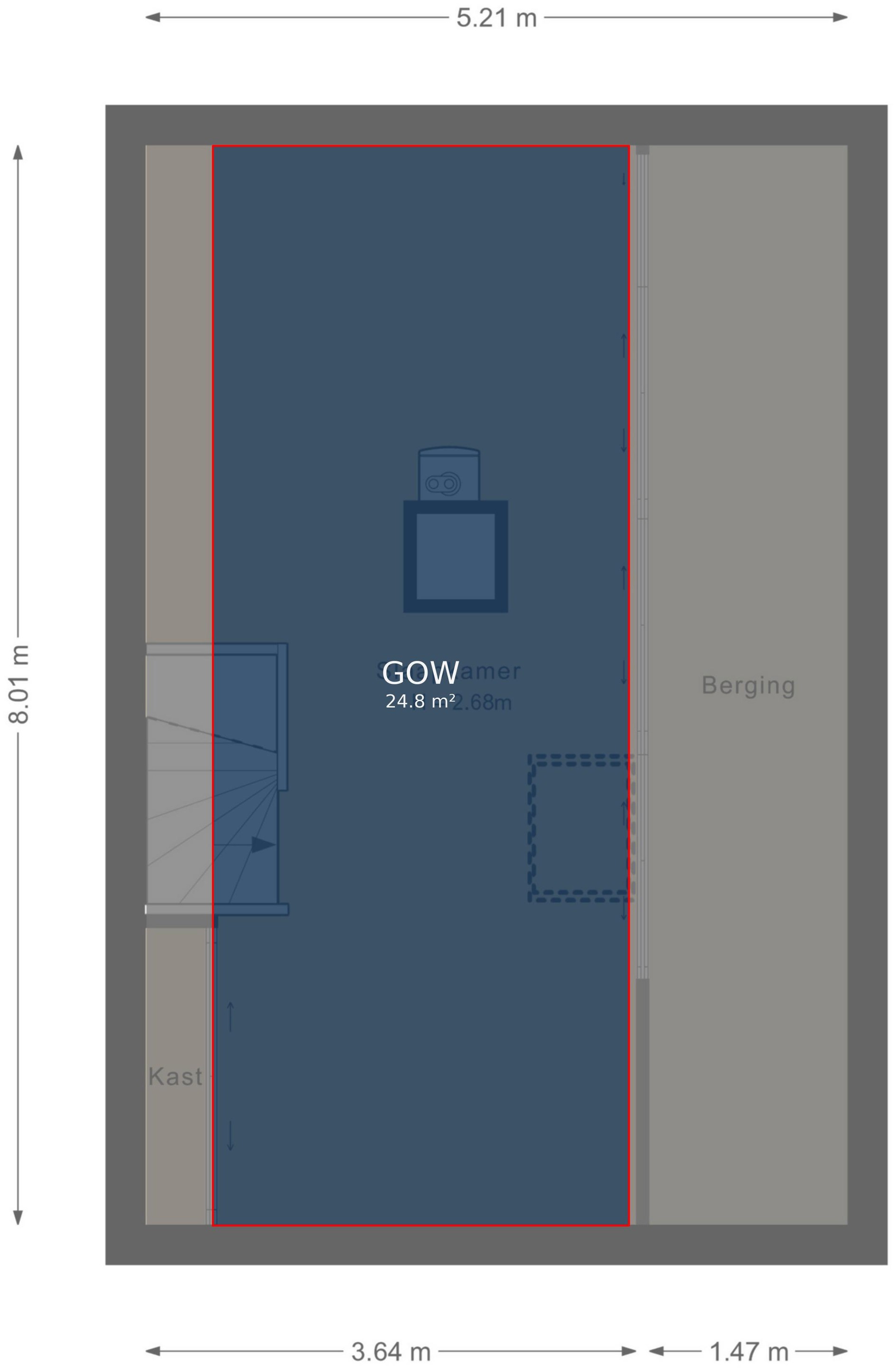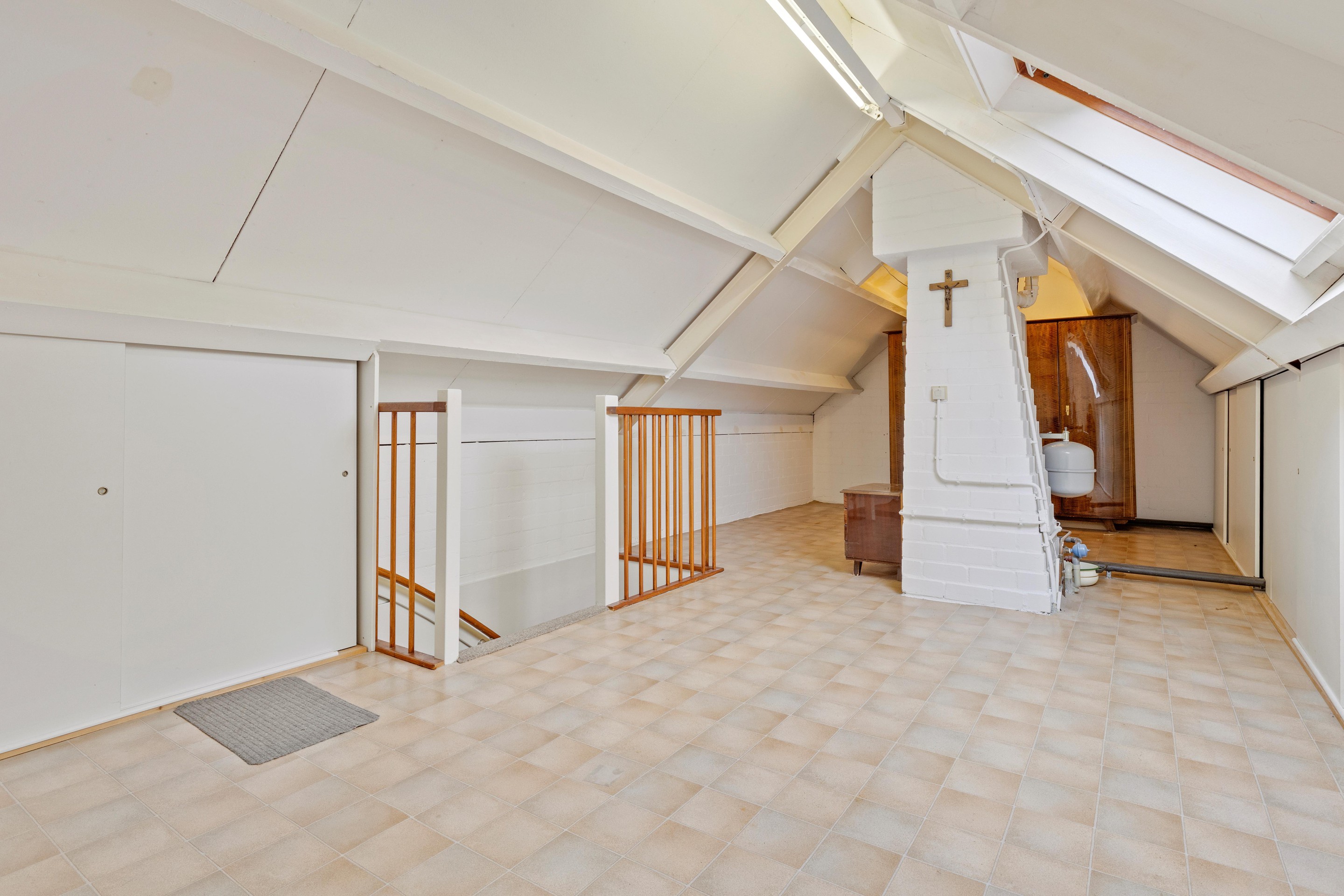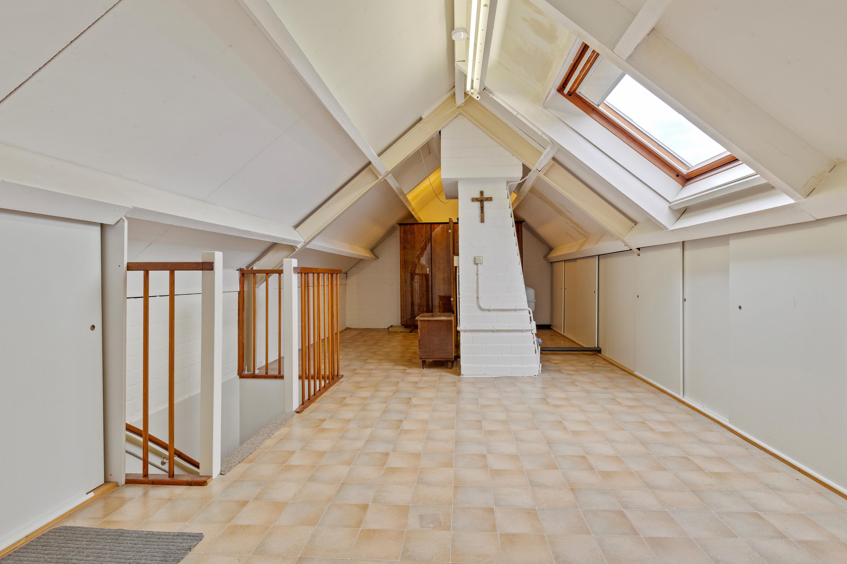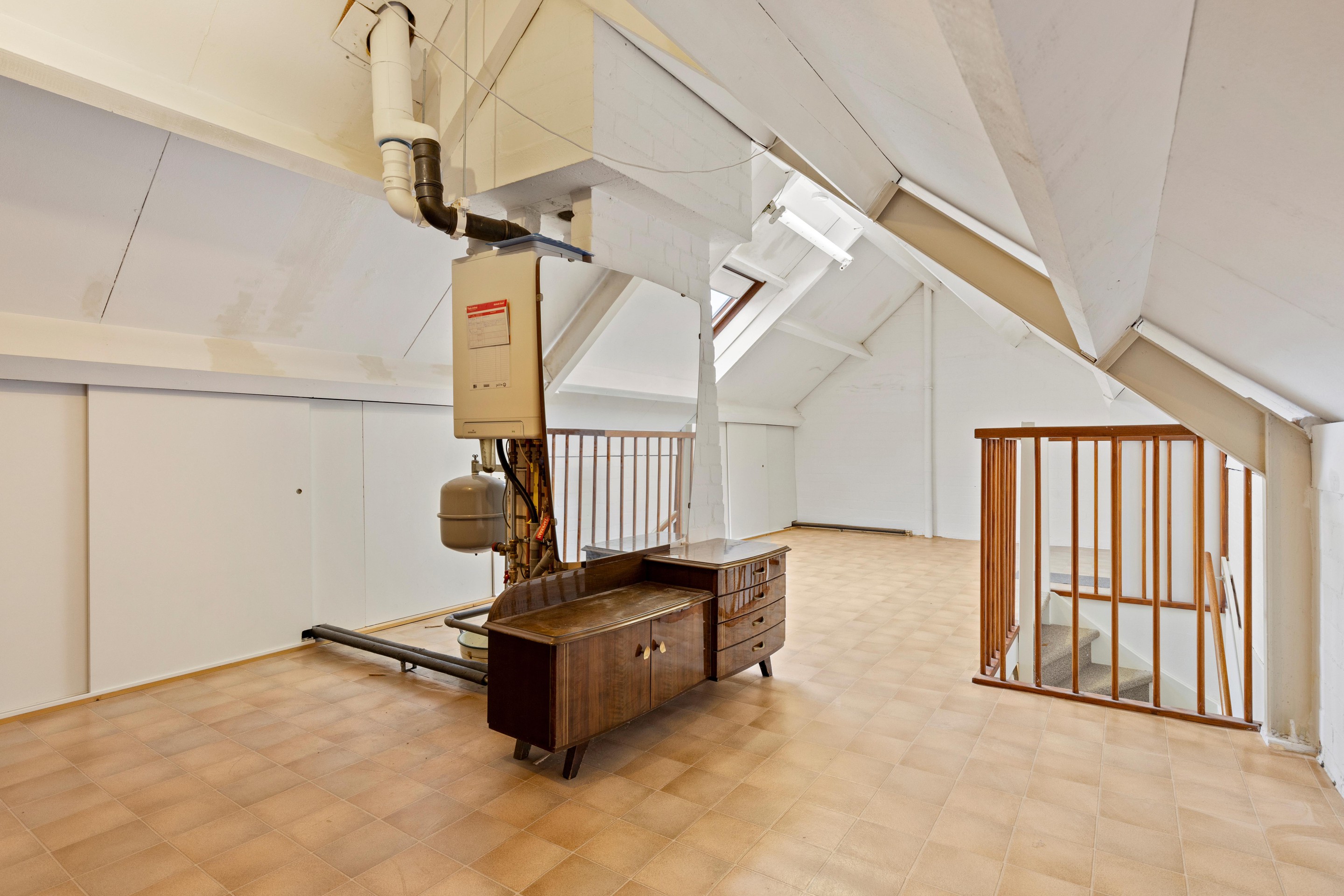 Een vaste trap geeft toegang tot open zolderruimte. Hier bevindt zich de verdekt opgestelde CV-opstelling. Achter de knieschotten zit veel bergruimte. Een groot dakvenster zorgt voor veel lichtinval. Op zolder kan een 2e slaapkamer gerealiseerd worden. Op de vloer ligt Novilon. Het vloeroppervlakte van de zolder is bijna 42m2.