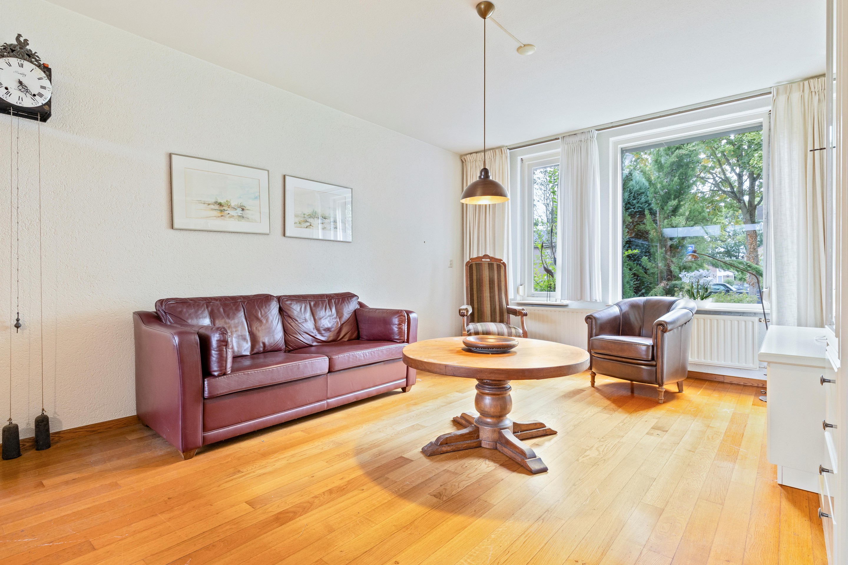 Via de oprit bereikt men aan de zijkant de entree van de woning. De ruime ontvangsthal (ca. 8m2) met garderobe geeft toegang tot de deels betegelde toiletruimte met staand closet, fontein en buitenraam, de meterkast met vernieuwde elektra, de trapopgang naar de verdieping en de toegangsdeur naar de woonkamer. De doorzon woonkamer van ca. 40m2, heeft aan de voorzijde een ruime zithoek met zich op de voortuin. Aan de achterzijde geeft een loopdeur toegang tot de tuin. Hier bevindt zich in de huidige opstelling het eetgedeelte echter kan het ook andersom ingericht worden zodat er vanuit het zitgedeelte tuinzicht is. Vanuit de woonkamer bereikt men de afgesloten leefkeuken (ca. 8m2) voorzien van een keukenblok in hoekopstelling. Aan inbouwapparatuur heeft de keuken een 4 pits gasfornuis, afzuigkap, oven, koelkast en dubbele spoelbak. De keuken verkeert in keurige staat. De kastjes zijn van massief hout en kunnen gerenoveerd worden. Er is voldoende werk- en opbergruimte aanwezig in de huidige opstelling. Een groot venster geeft zicht op de tuin.