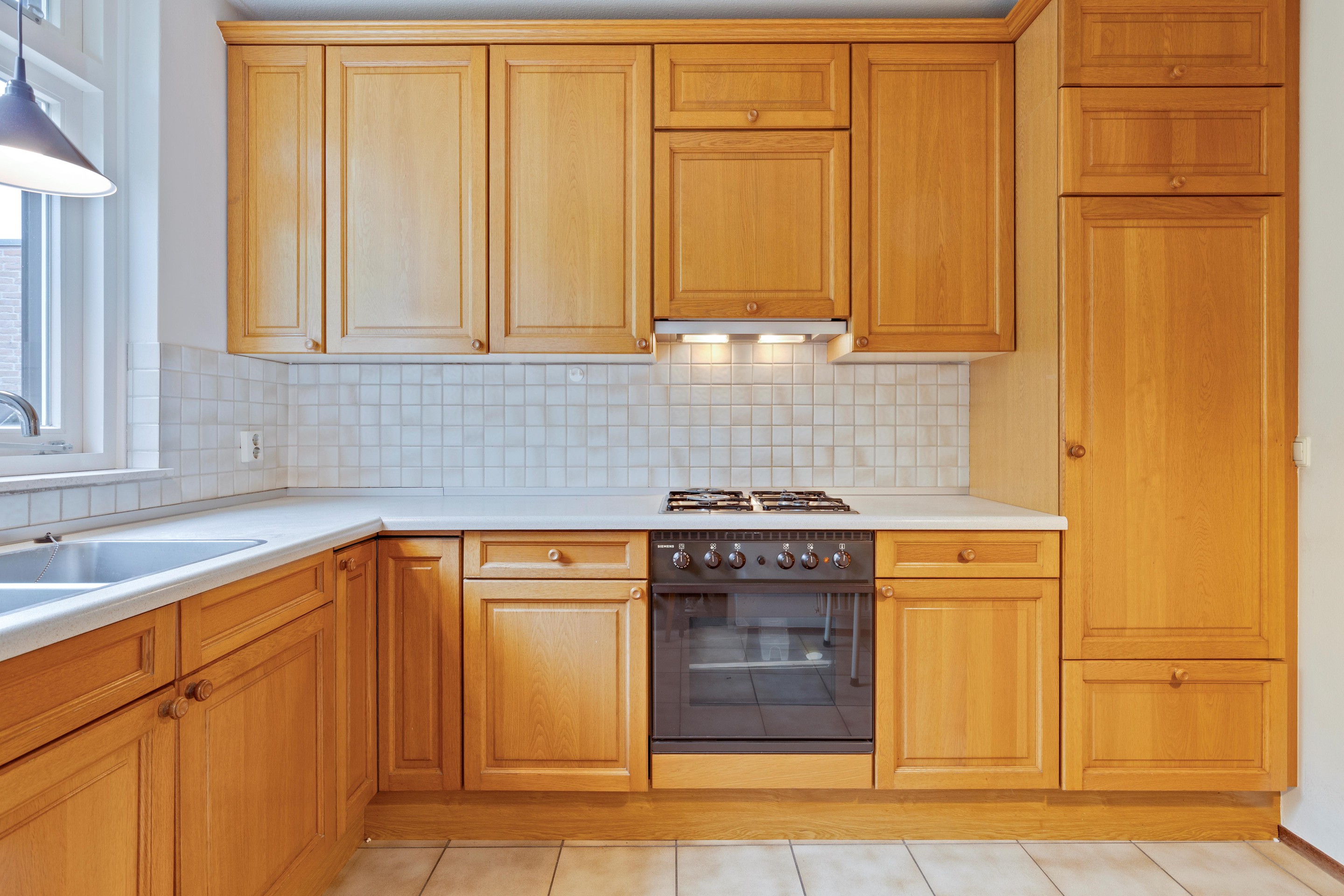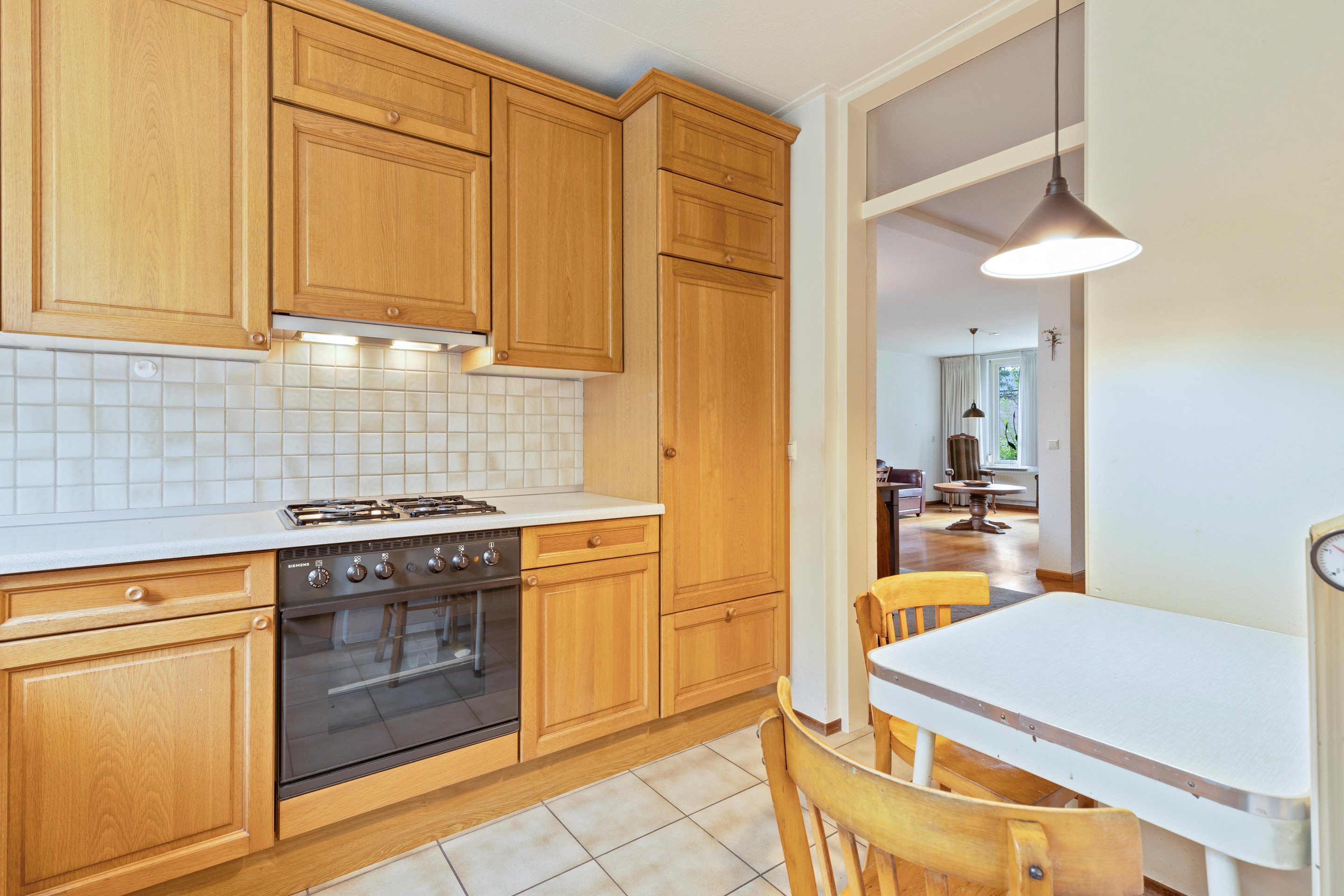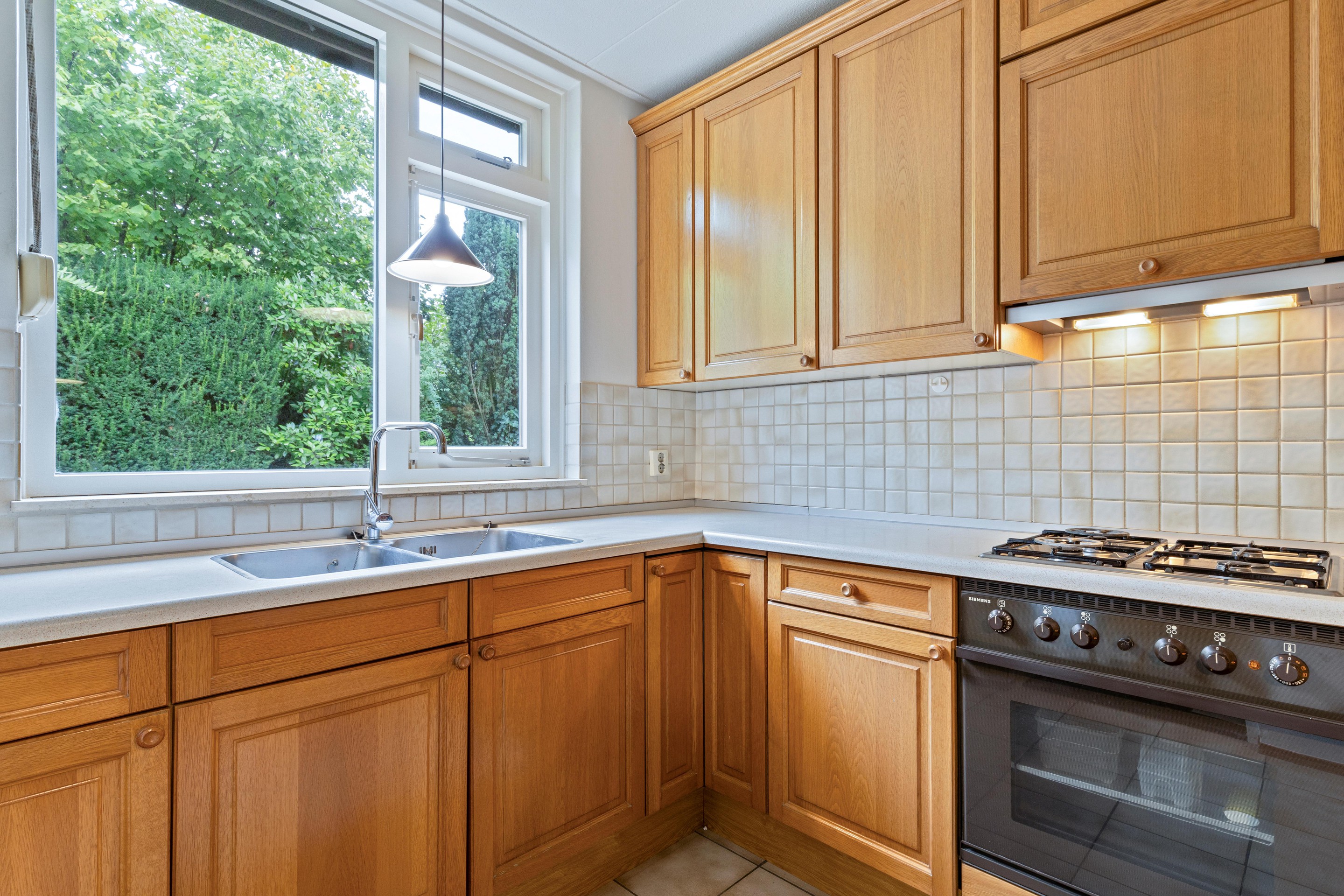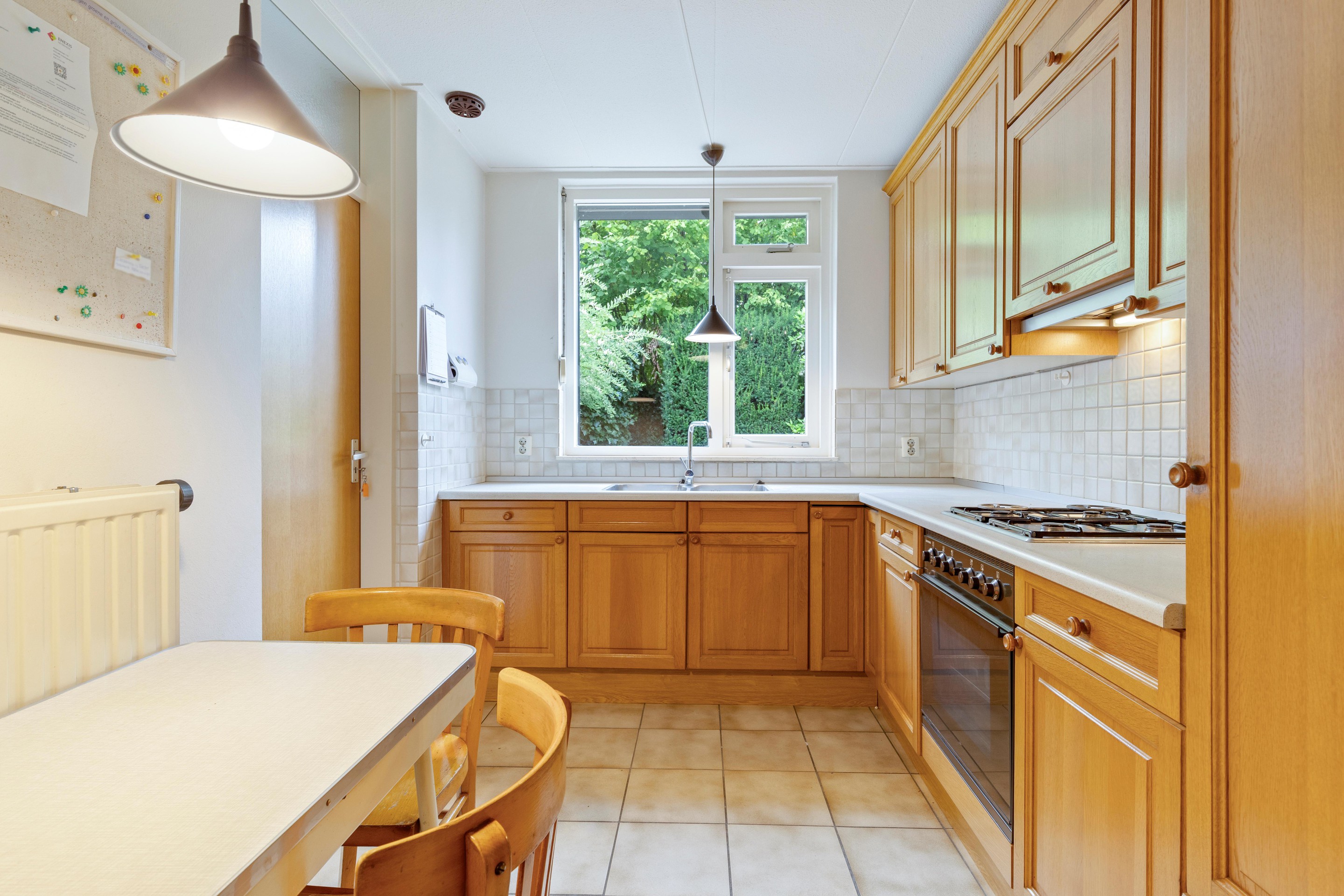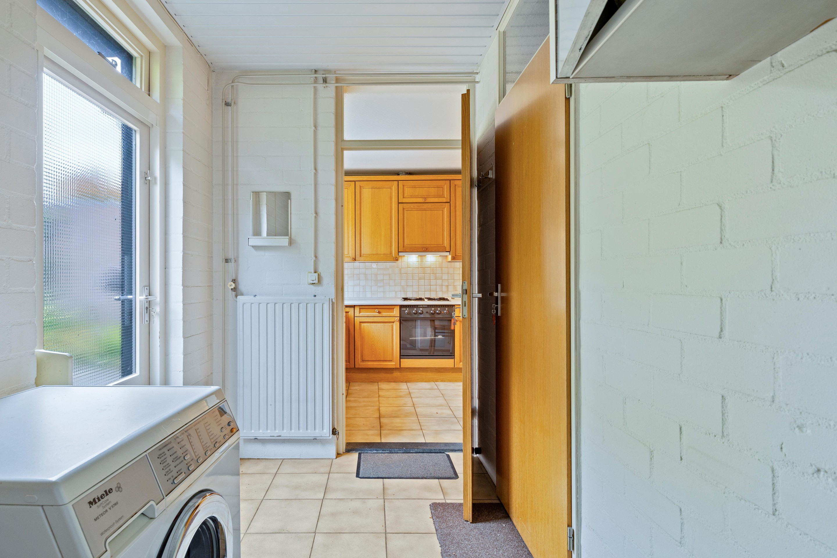De keuken geeft toegang tot de afgesloten bijkeuken (ruim 5m2) met aansluitingen voor de wasmachine-en droger en eventueel extra witgoed. Via de bijkeuken is er toegang tot de inpandige garage en de tuin.