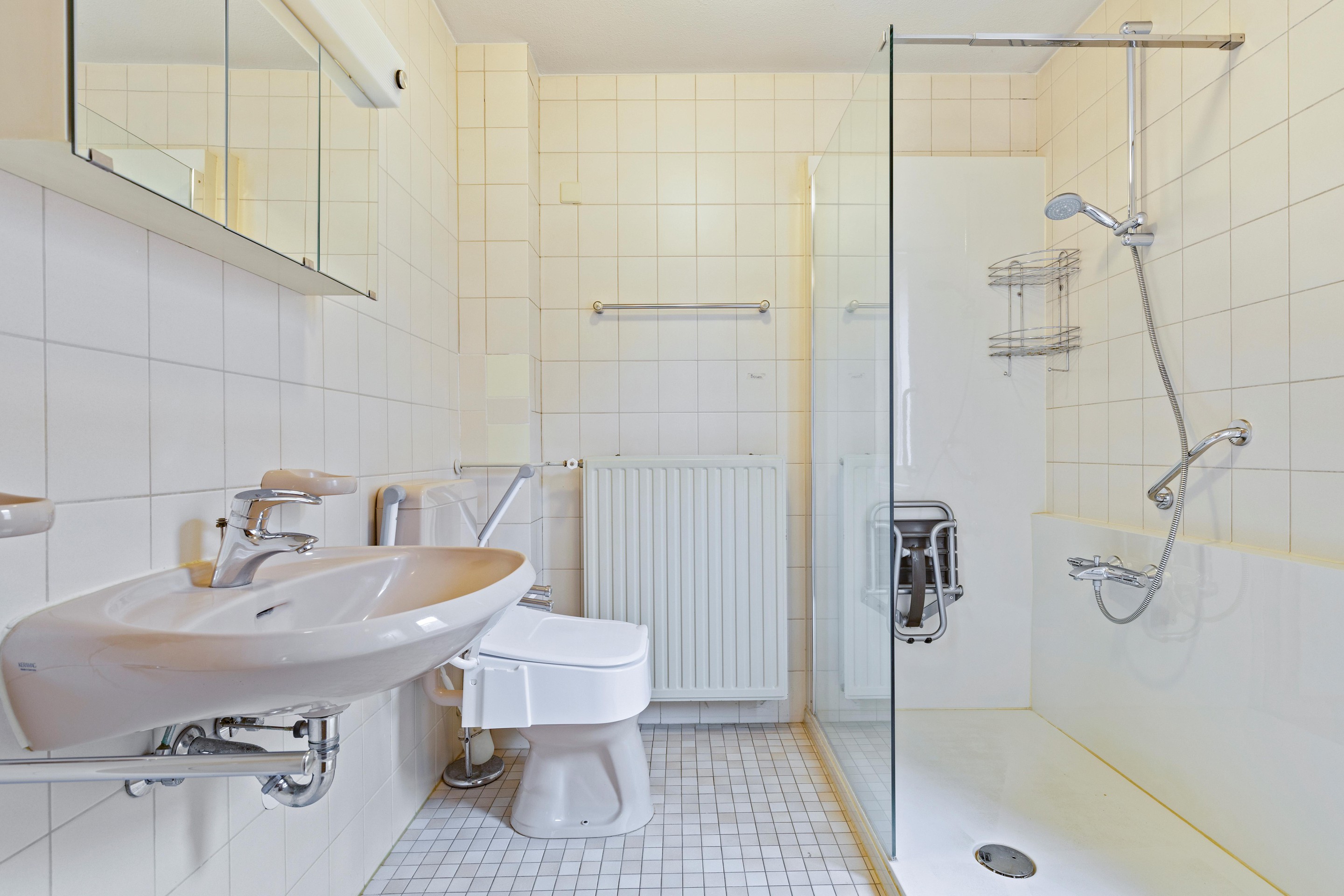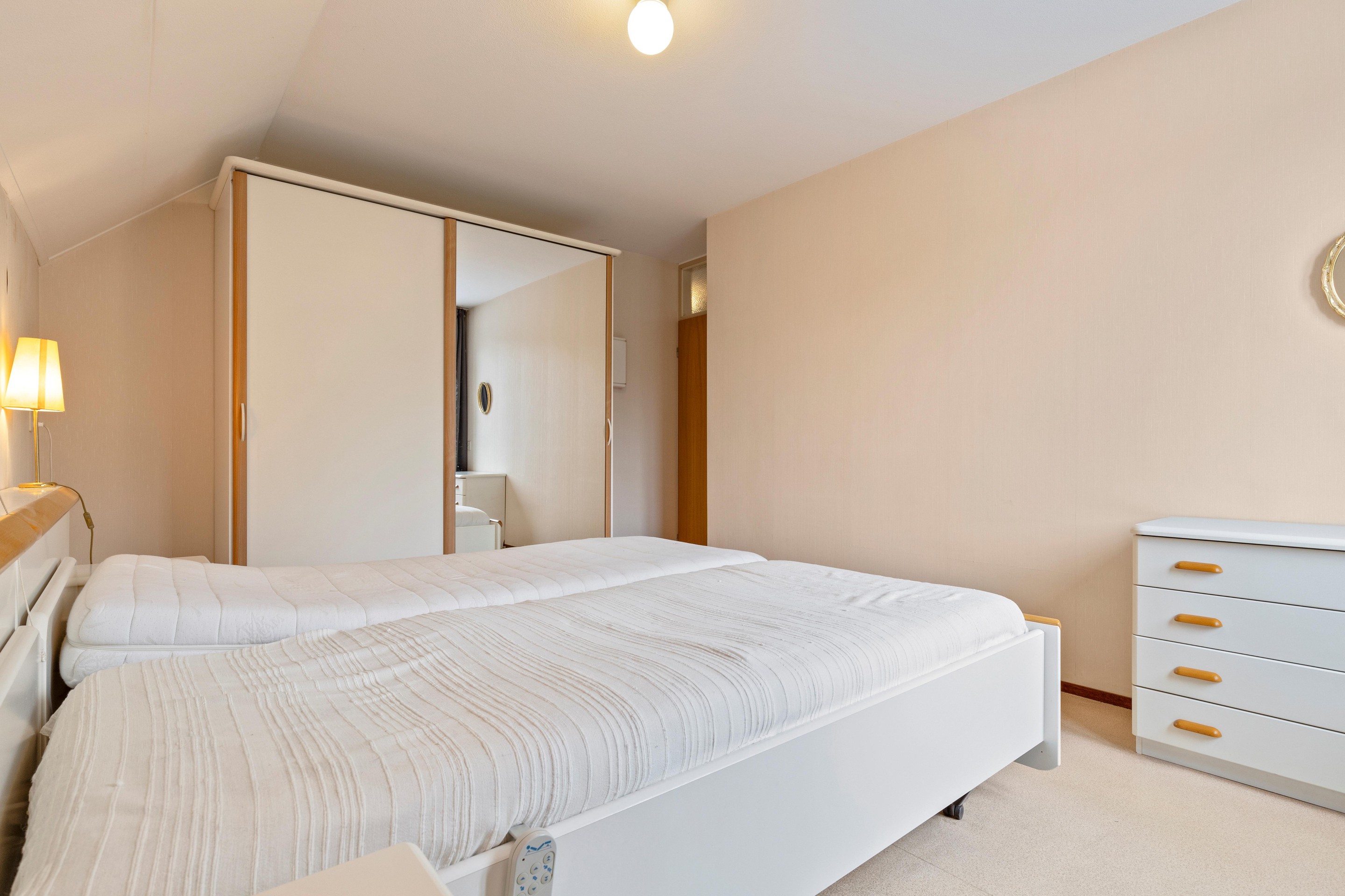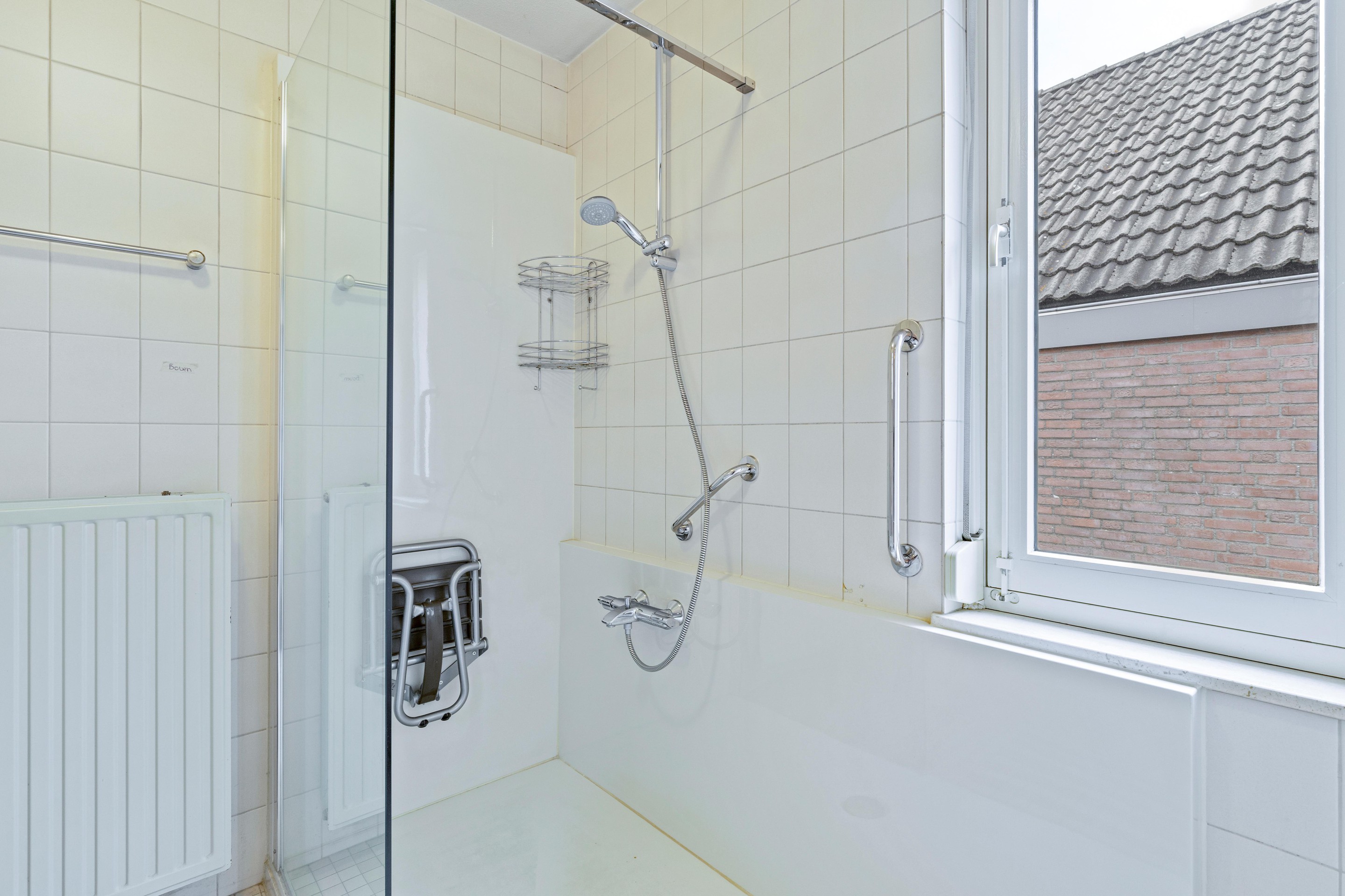 De slaapkamers hebben alleen een prettig formaat en zijn aan de buitenkant voorzien van rolluiken. De geheel betegelde badkamer (ca. 5m2) heeft een gerenoveerde inloopdouche, een wastafel, staand closet, radiator en buitenraam. Op de vloeren ligt o.a. tapijt en Novilon.