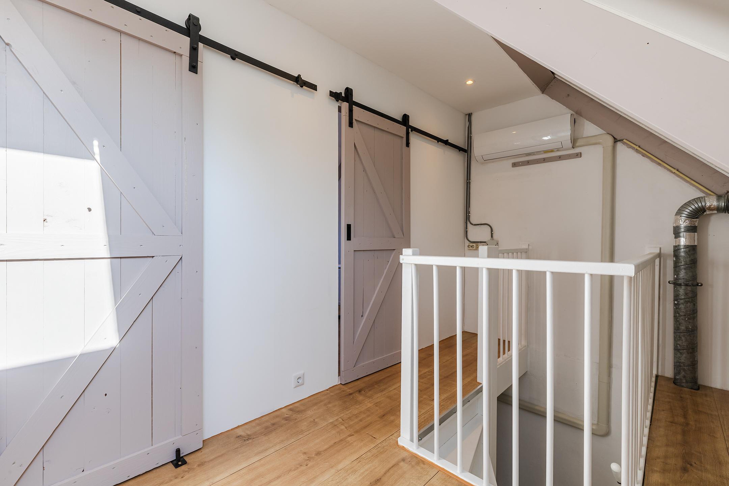 Middels een vaste trap is de voorzolder te bereiken. De voorzolder biedt veel opbergruimte en heeft een vaste kastenwand. In deze kastenwand zijn de witgoedaansluitingen weggewerkt. Daarnaast is hier de combi CV-ketel (Remeha 2019), de elektrische boiler t.b.v. het warmwater en de omvormer van de zonnepanelen gesitueerd. Vanuit de voorzolder is er toegang tot de 4e en 5e slaapkamer. Beide slaapkamers hebben ruimtebesparende schuifdeuren en zijn voorzien van een inbouwkast. De kamers zijn ca. 6,5m2 en 7,5m2 groot. De gehele verdieping is voorzien van een laminaatvloer en airconditioning.