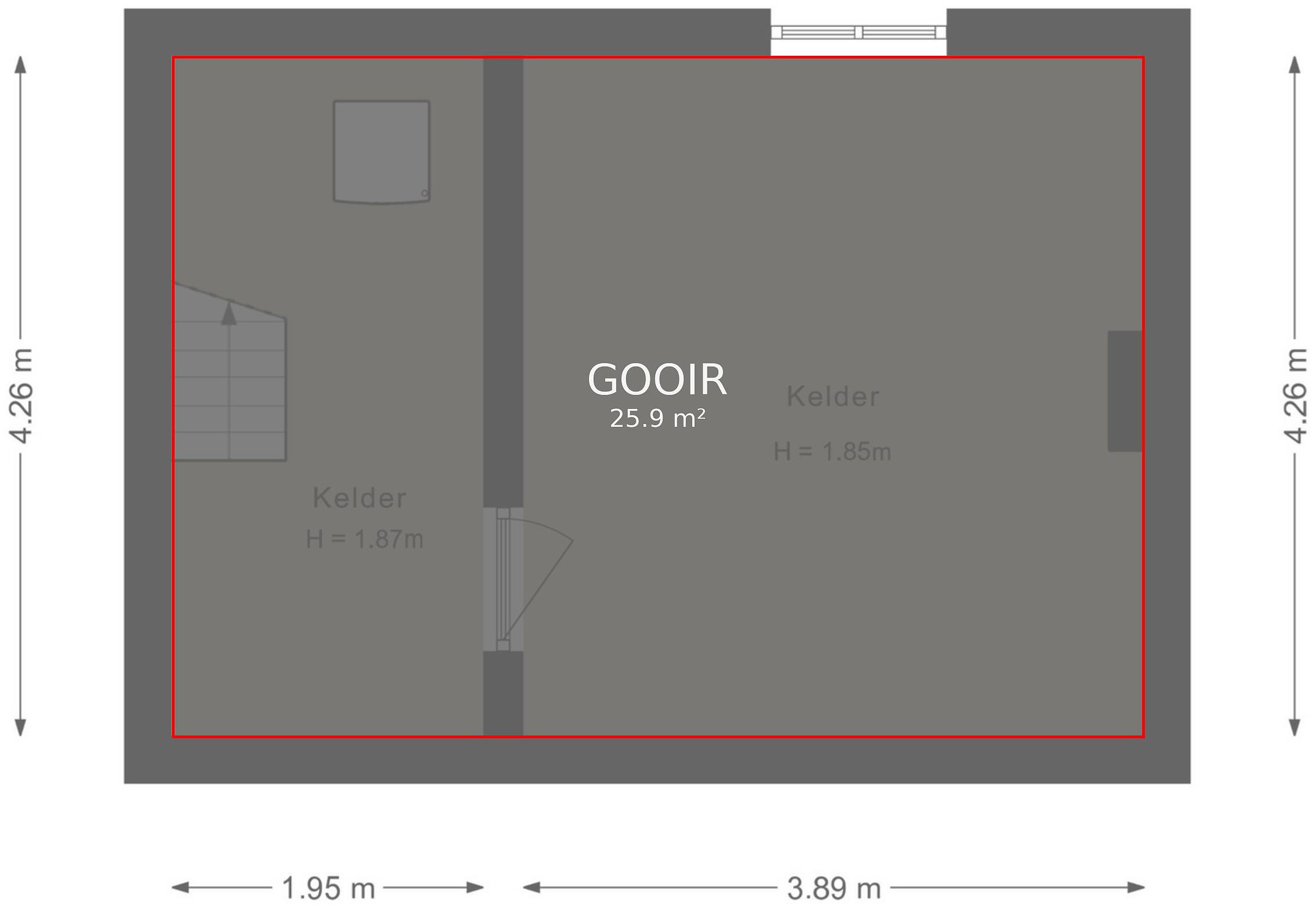 De kelder bestaat uit twee compartimenten, te weten een opslagruimte (ca. 16,5m2) met ventilatievenster en een provisieruimte (ca. 8m2) met opstelplaats voor extra witgoed.