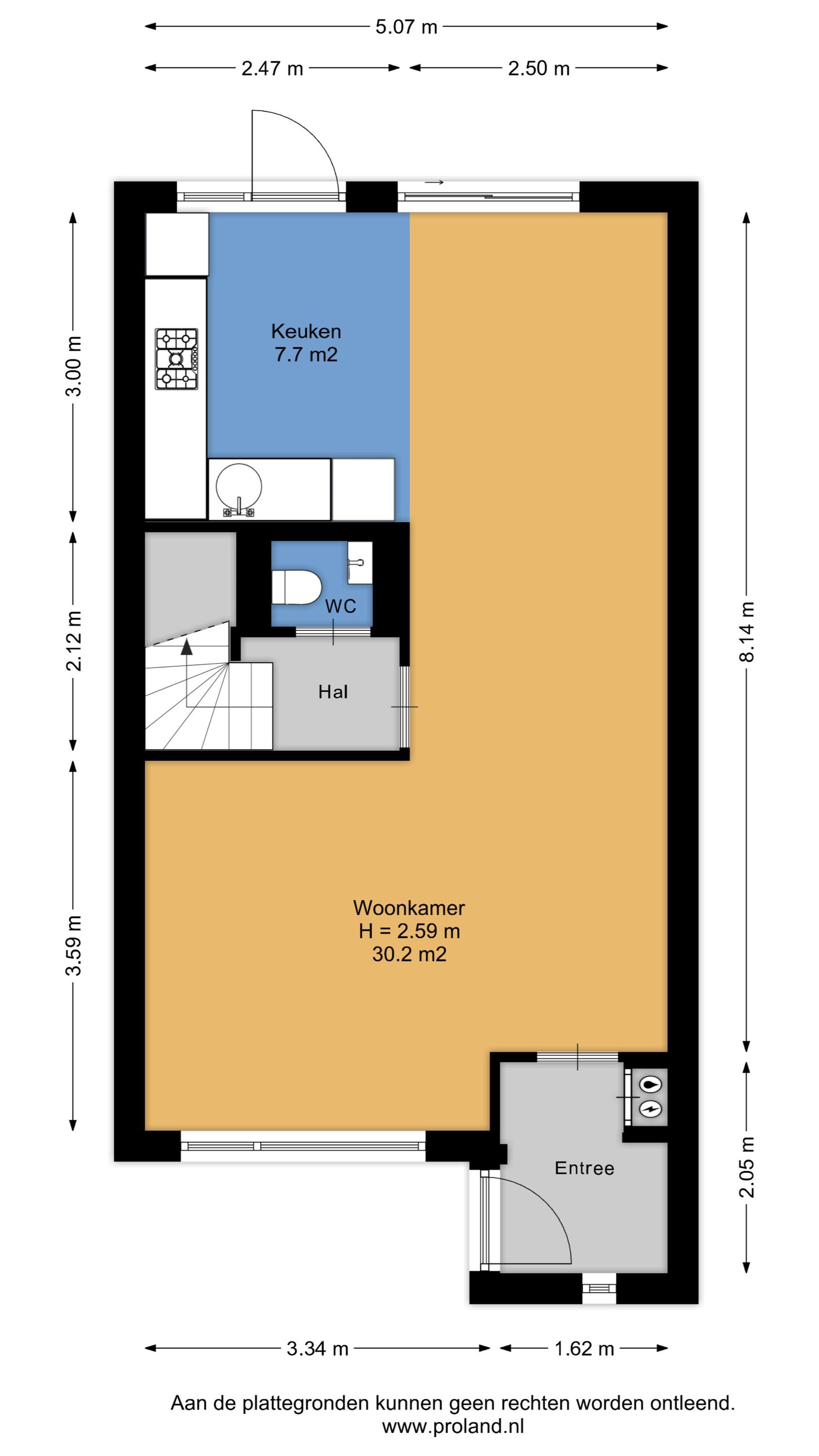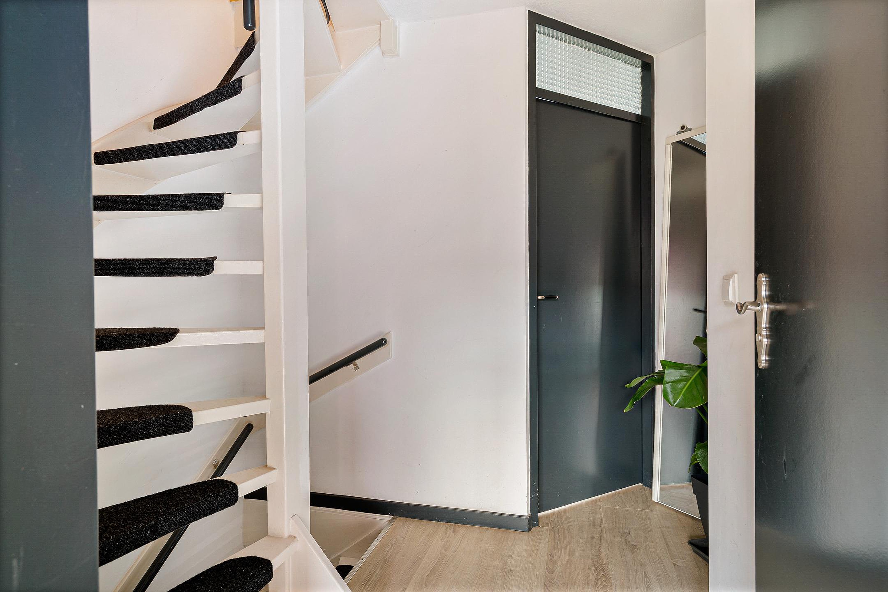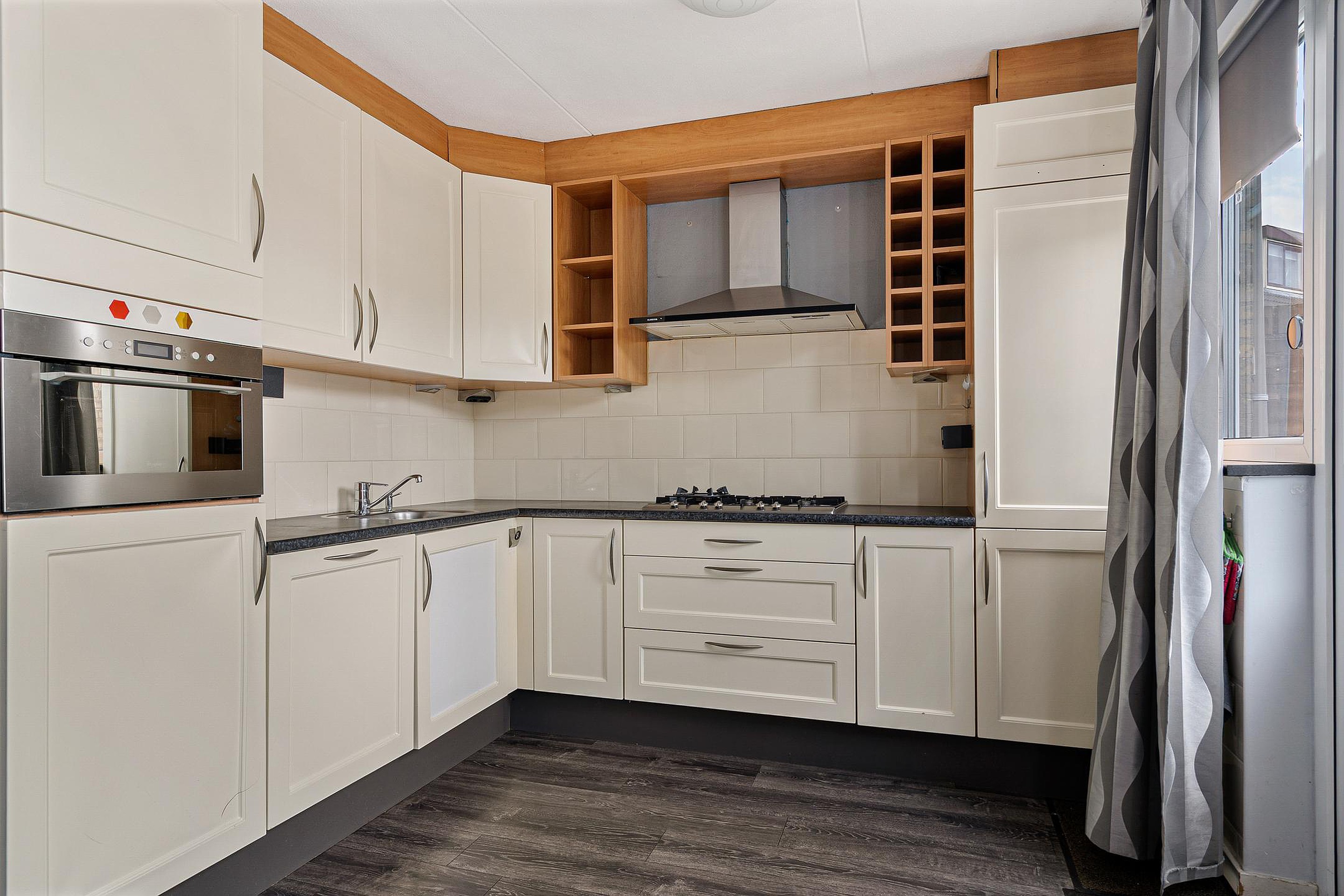 Entree, hal met meterkast voorzien van aardlekschakelaar, diverse groepen. Royale woonkamer met laminaat vloer. Tussenhal met toiletruimte en trapopgang naar de 1e etage. De lichte, open keuken is uitgevoerd in hoekopstelling met boven- en onderkasten voor voldoende bergruimte. De keuken is voorzien van de volgende inbouwapparatuur: gaskookplaat, afzuigkap, koelkast met vriesvak, combi-magnetron en vaatwasser.