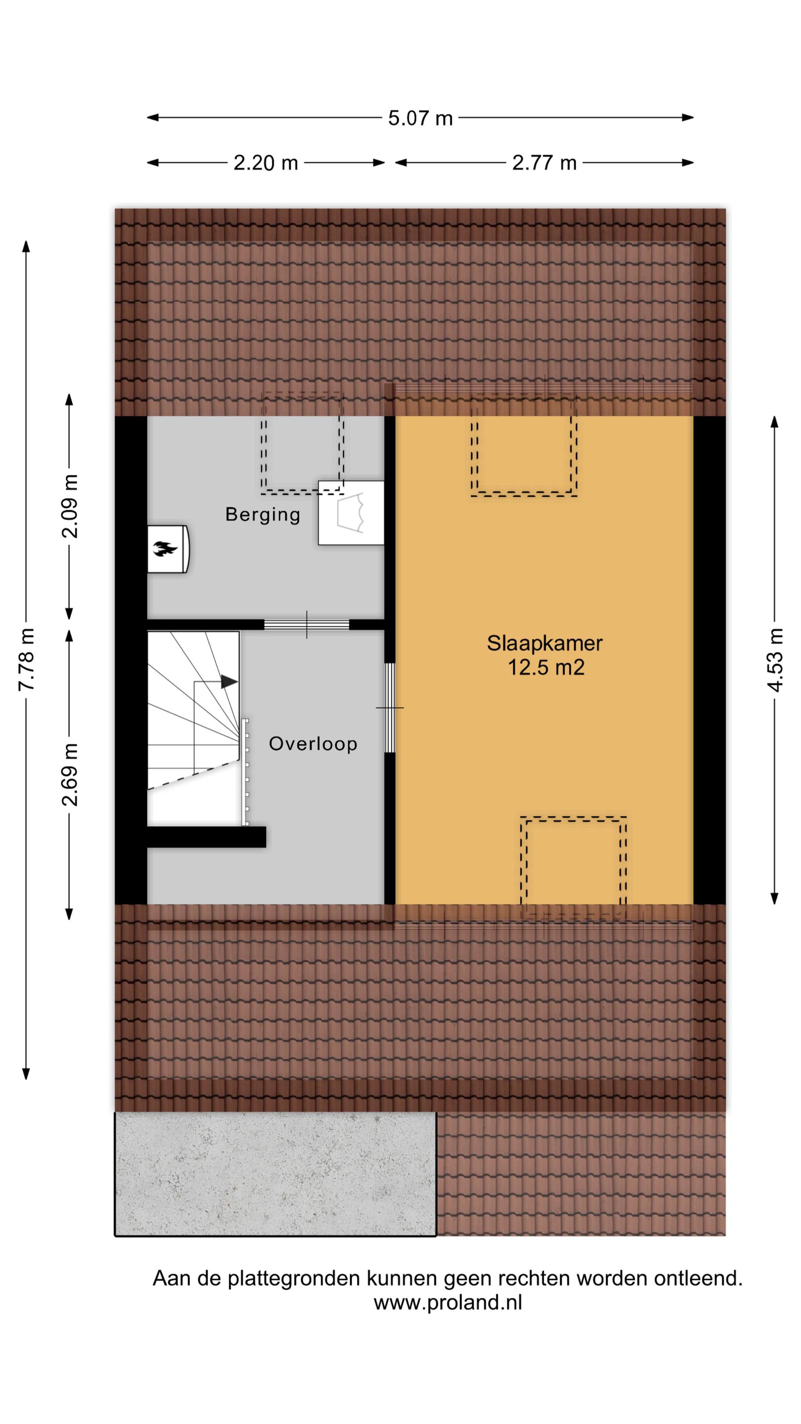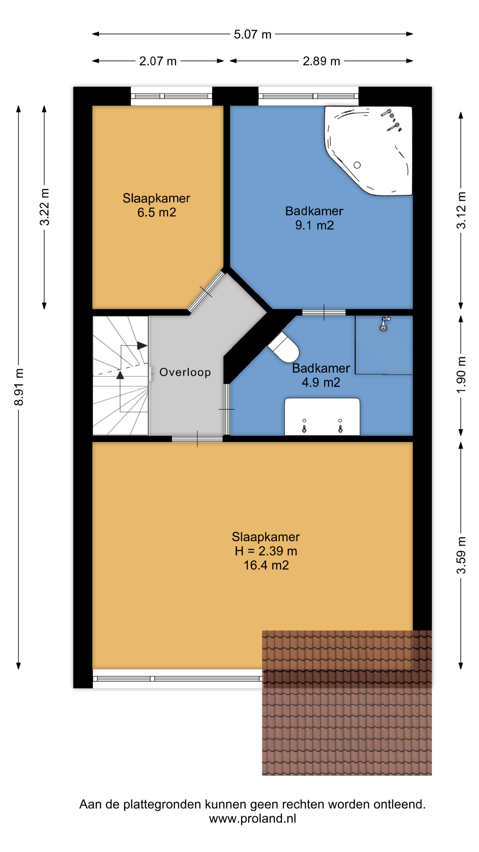 Overloop naar 2 ruime slaapkamers en de badkamer. De slaapkamer aan de voorzijde van de woning is voorzien van dakkapel.
