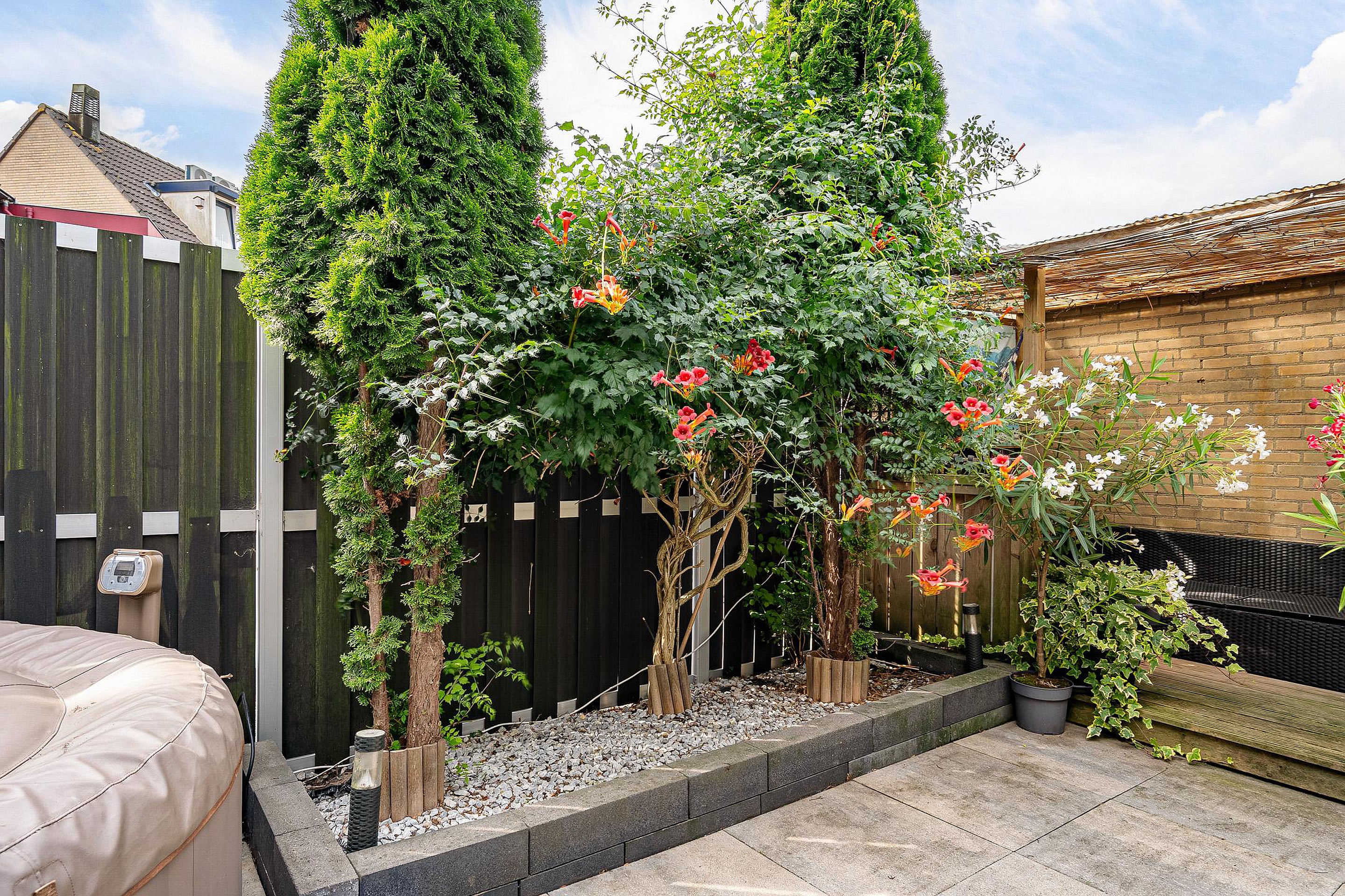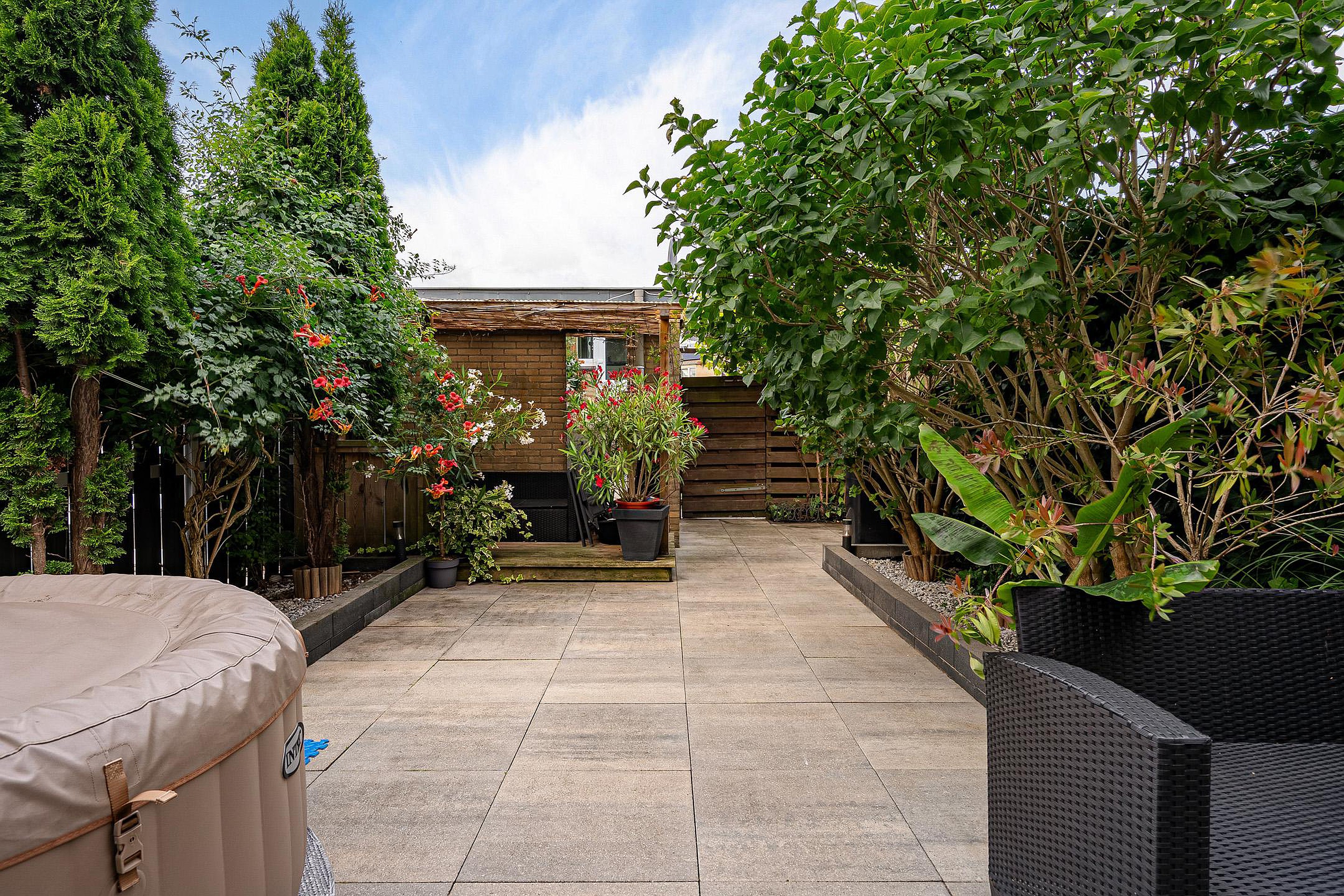 - De keurig verzorgde achtertuin is gelegen op het westen.