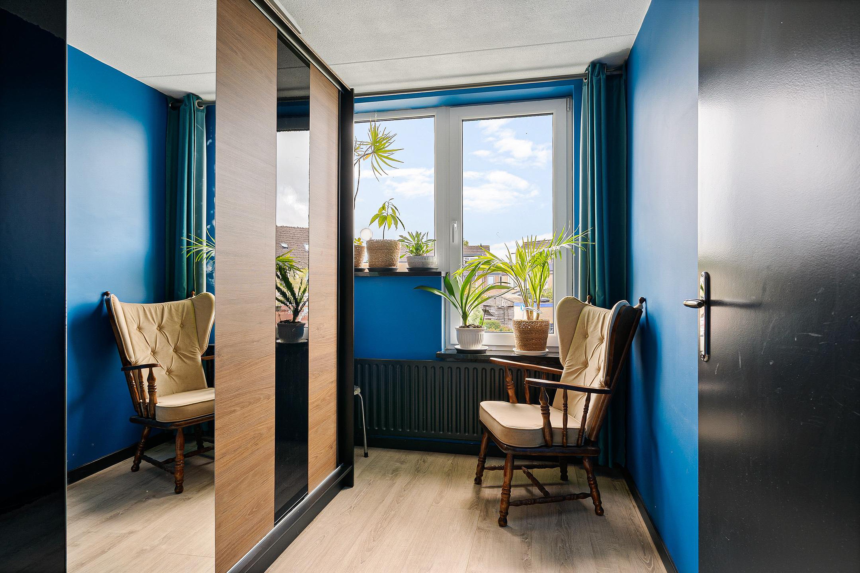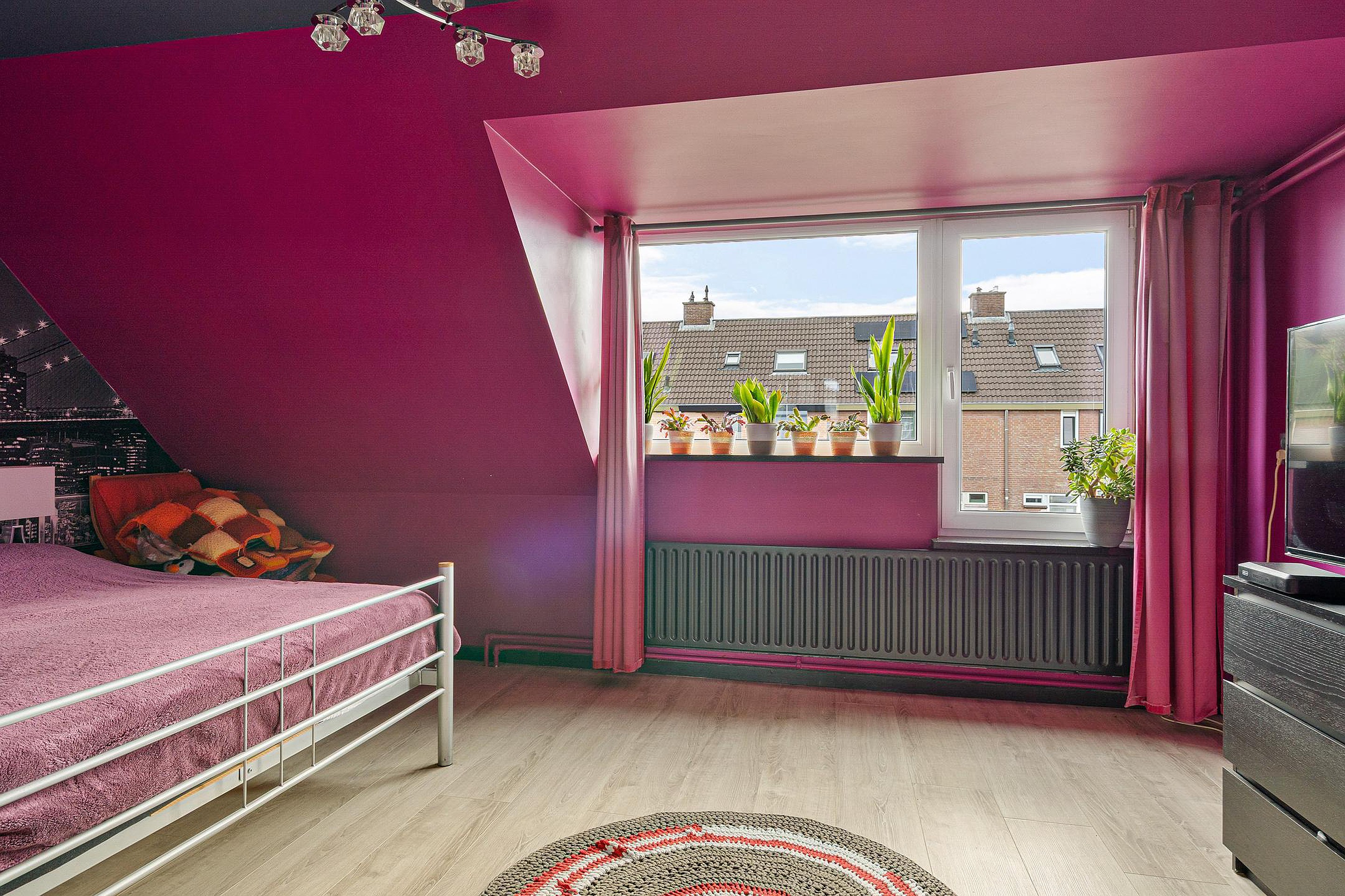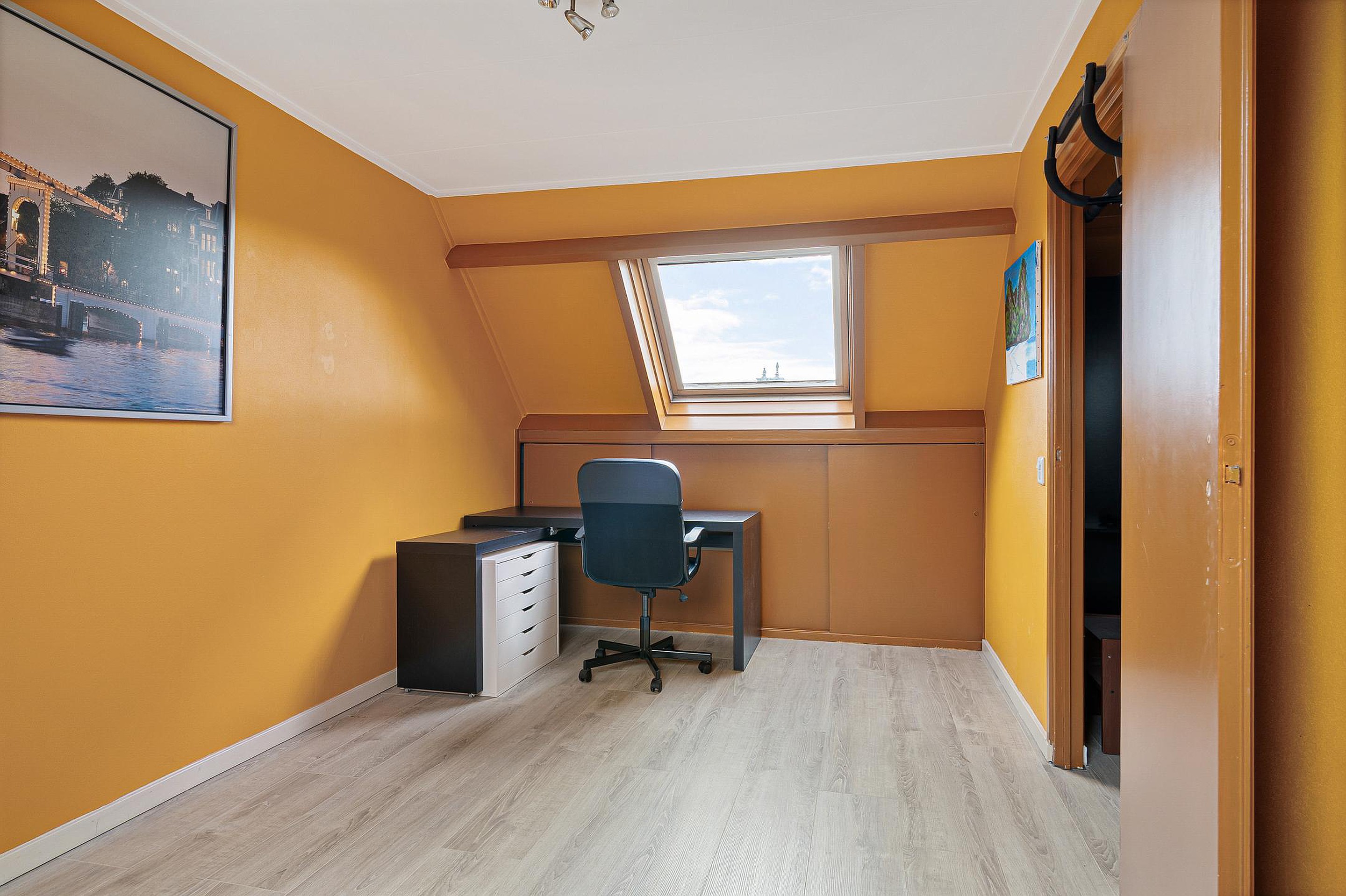 Royale derde slaapkamer voorzien van 2 veluxramen en bergruimte onder de knieschotten.