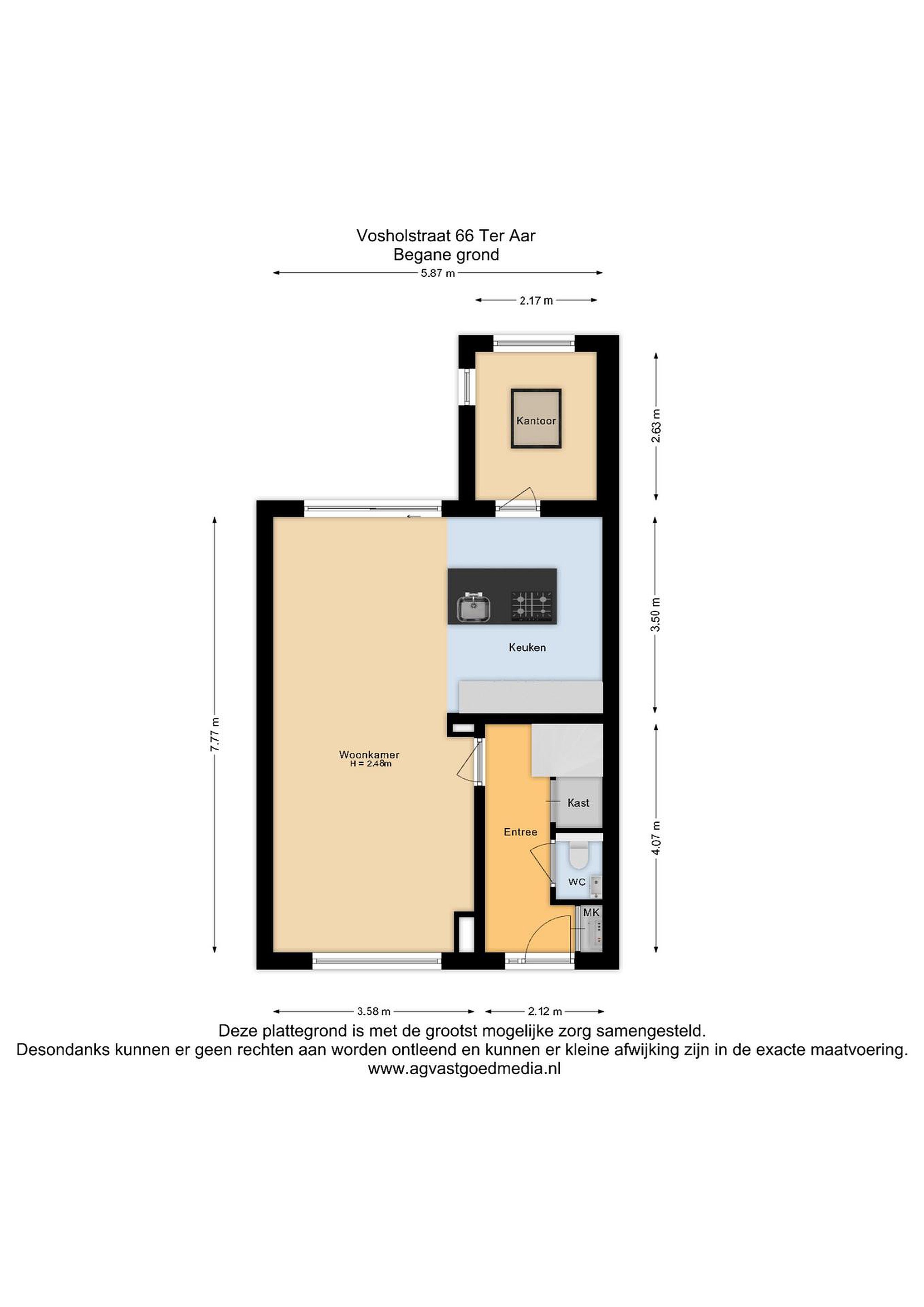 + Praktische bijkeuken welke nu als werkkamer in gebruik is.