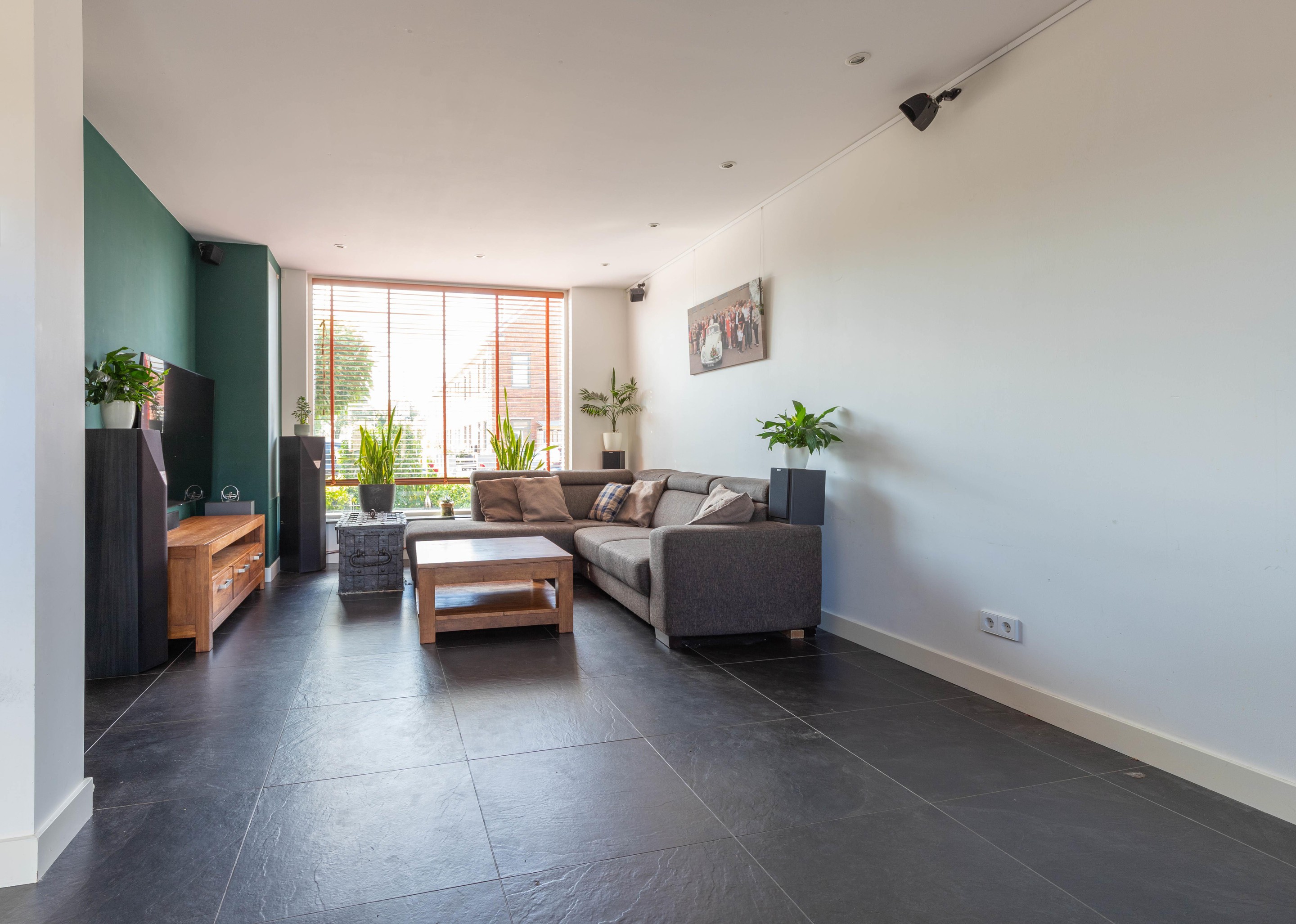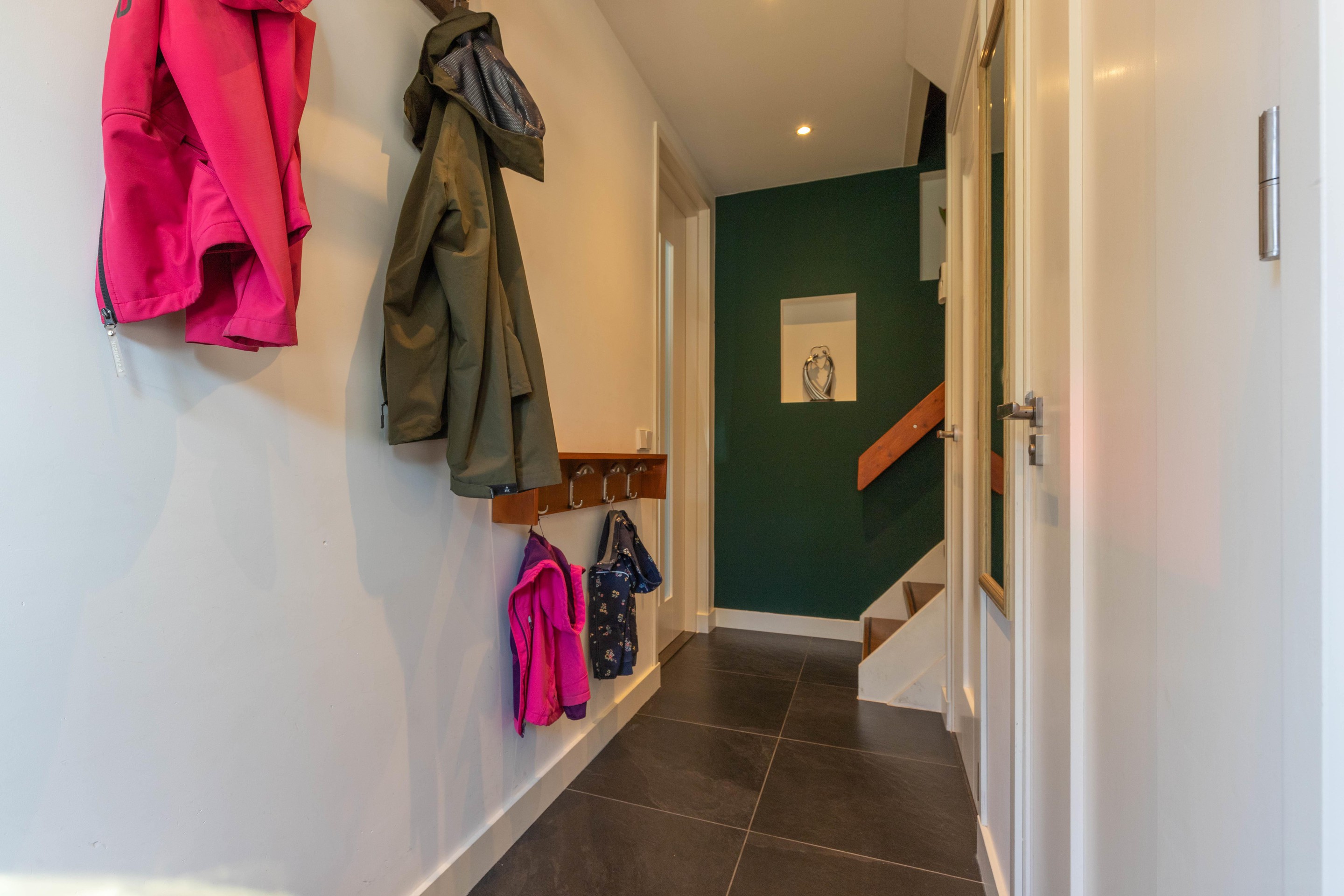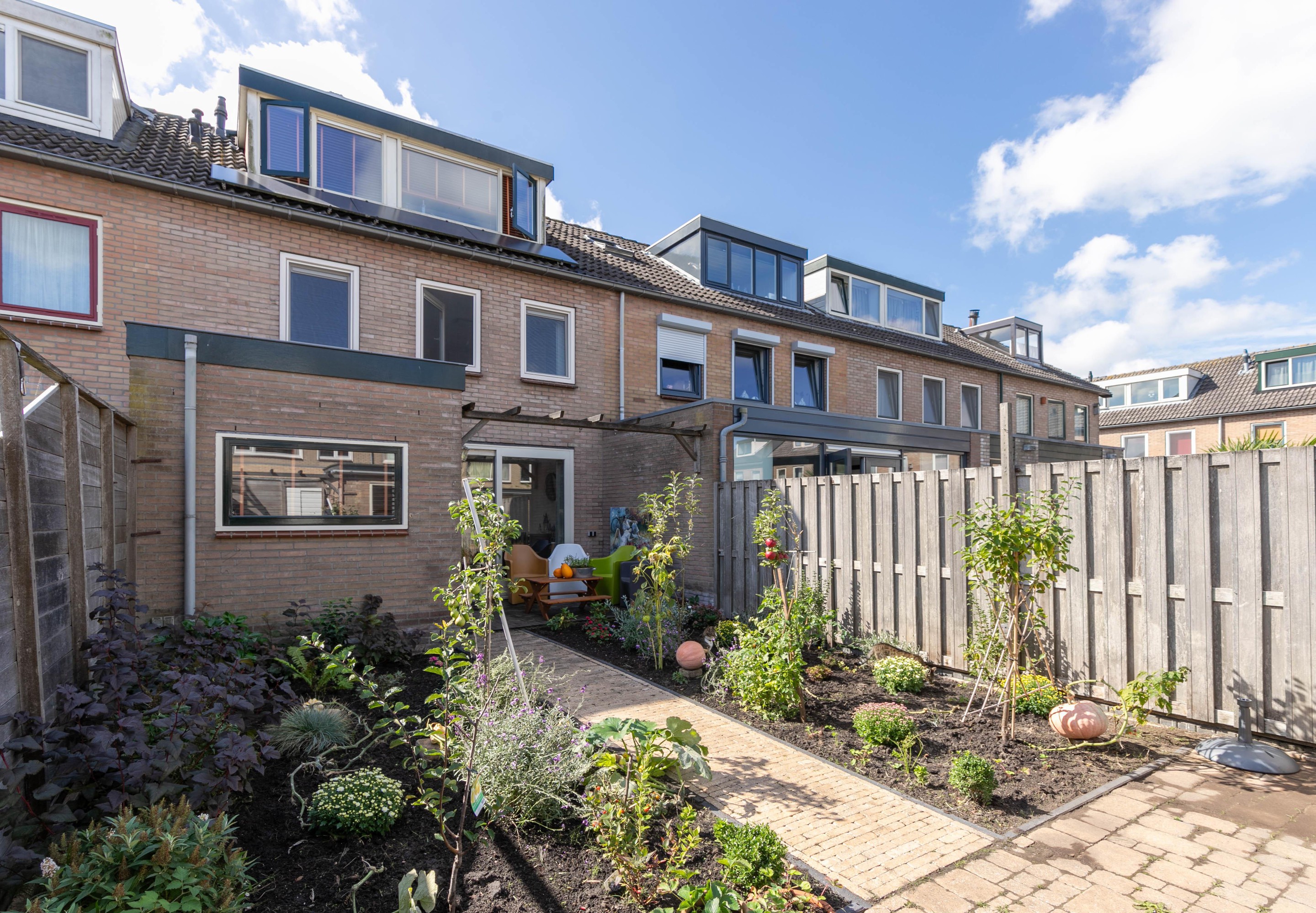 Aan de achterzijde van de woning is er via de schuifpui toegang tot de tuin, deze is ook te bereiken via de bijkeuken/kantoorruimte.